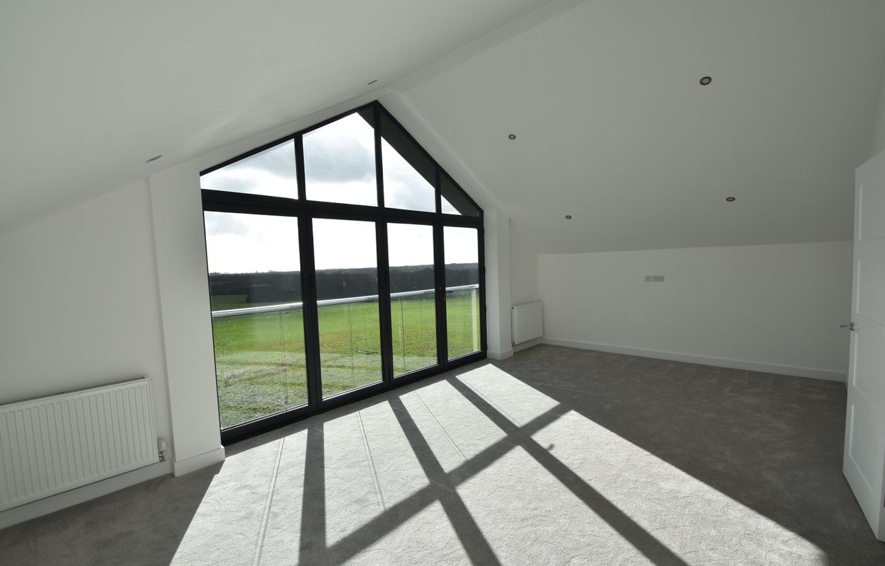 The second floor features the master bedroom with bi-folding doors overlooking the fields and an en-suite bathroom and dressing room. The second floor also features a further bedroom.