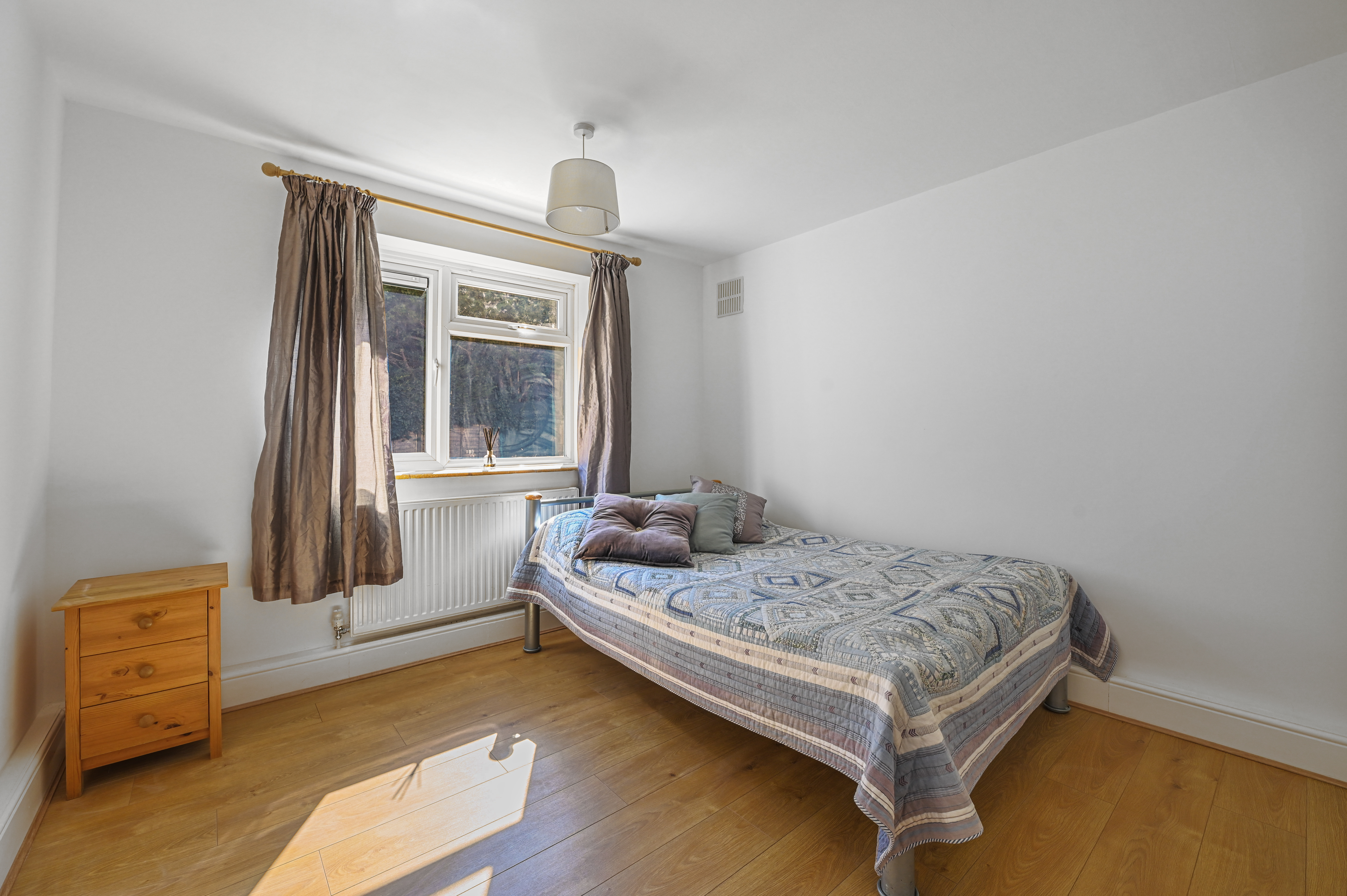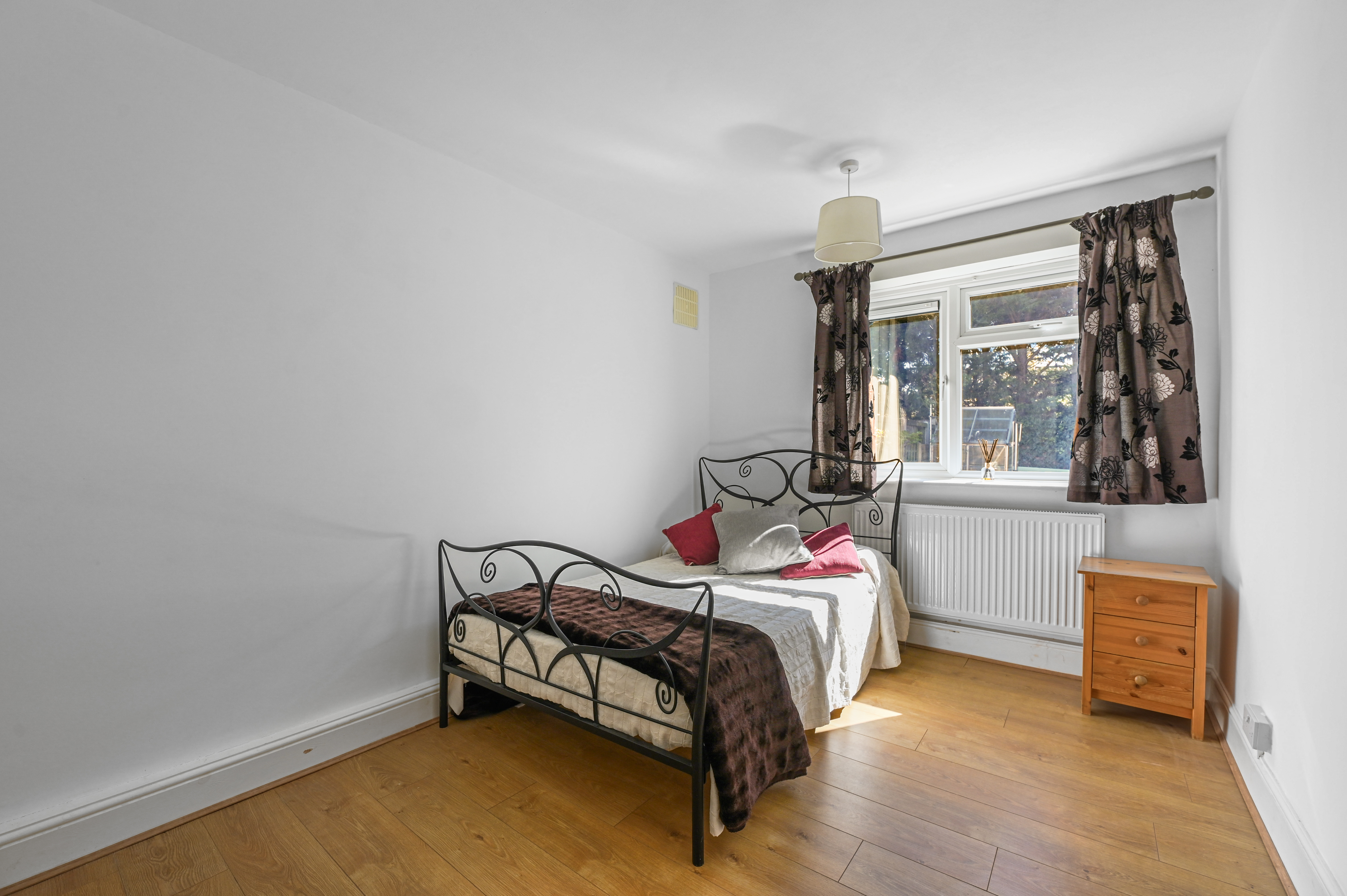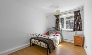 Both bedrooms are well-sized doubles, finished with neutral décor and wood laminate flooring, each enjoying views over the garden.