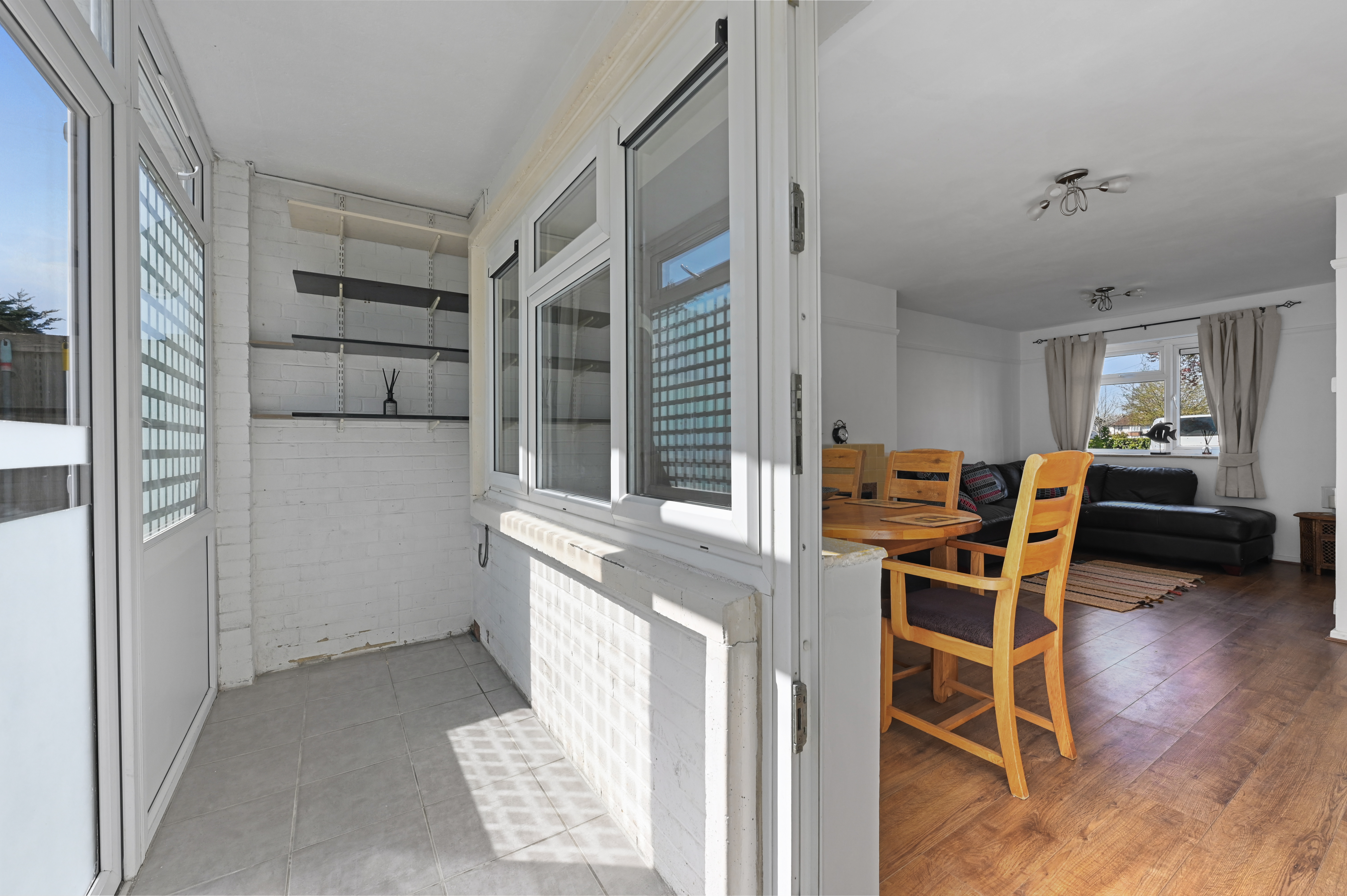 The entrance hall provides access to both bedrooms, family bathroom and reception room. There is also an additional area for storage.