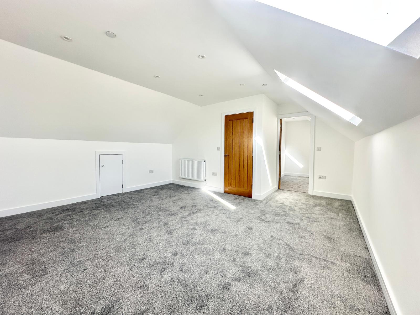 The master suite can be found on the top floor of the house, providing an impressively sized bedroom with Velux windows, flooding the area with natural light. The bedroom provides access to the dressing room which then flows seamlessly into the large en-suite shower room.