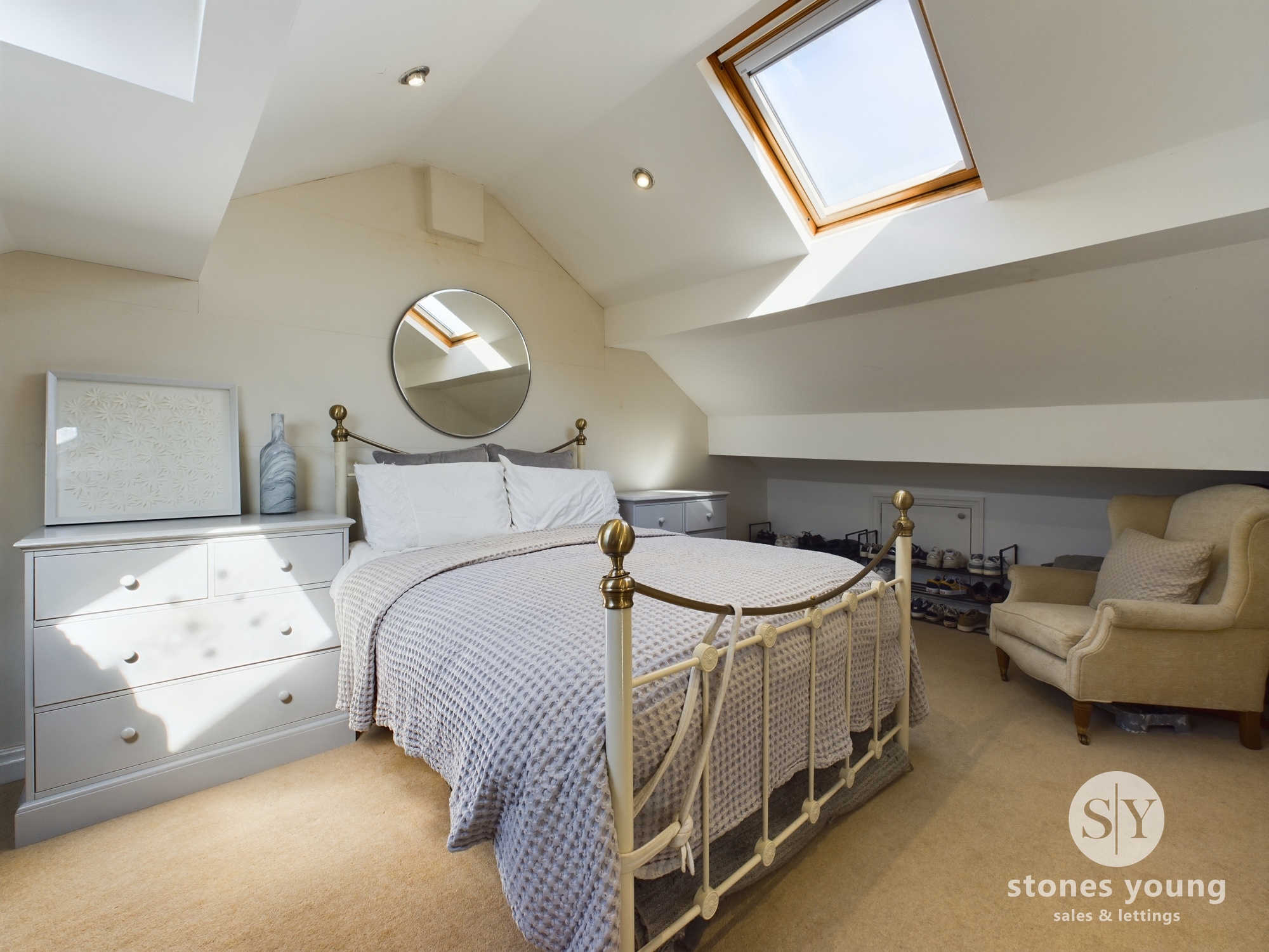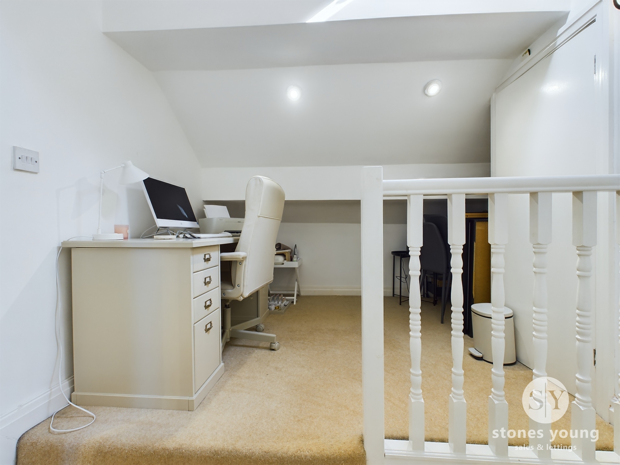 Carpet flooring, under eaves storage, panel radiator, double glazed velux windows