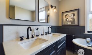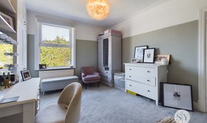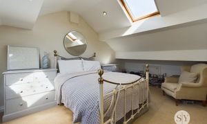 The first floor is laid out with two double bedrooms and a single bedroom acting as the for. The master bedroom has been dressed minimally with the second bedroom sat adjacent and being utilised as a dressing room. With fitted wardrobes, two dressing tables and plenty of space for further furniture, it boasts plenty of space to be a large double room. Completing the first floor is the recently installed four piece bathroom, complete with walk in shower, roll top bath and high quality couples sinks with quartz surface surround. The attic room hosts a generous landing space with access to the third double bedroom. The generous space allows for versatility up here, with an office currently occupying the space, while having potential for storage or a dressing area.