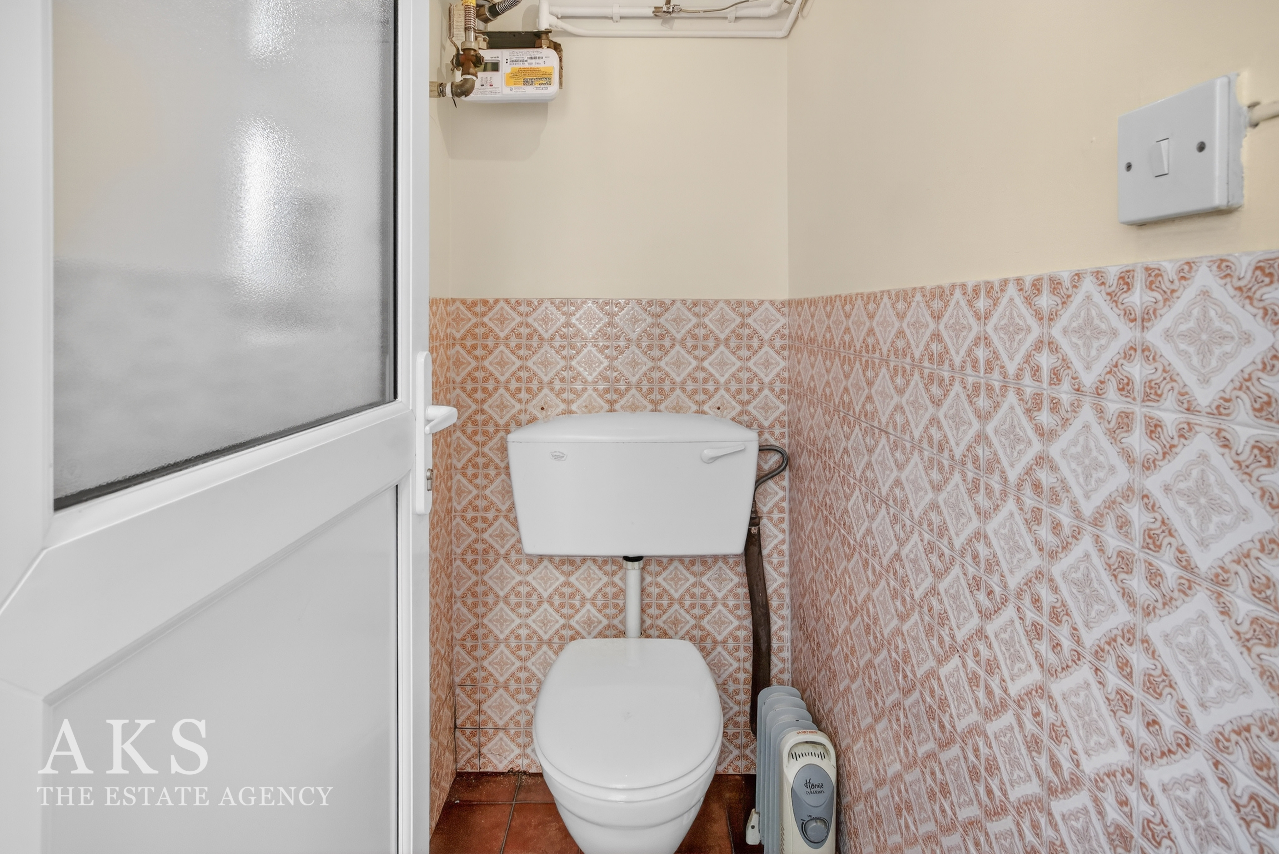 To the rear, there’s a porch area where you’ll also find the toilet. The porch is such a useful addition — it’s ideal for extra storage or as a transition space when coming in from the garden, helping to keep muddy shoes out of the main living area.