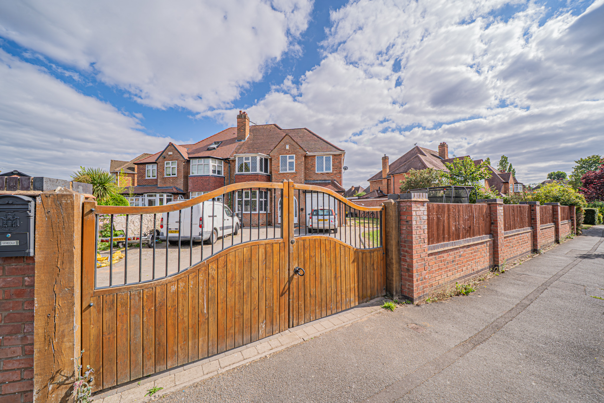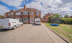 Presenting a rare opportunity to acquire this exceptional five-bedroom semi-detached family home situated on a peaceful and highly desirable road in the heart of Solihull. This property boasts an advantageous location within a good school catchment area, making it an ideal choice for families. Spanning three floors, the interior has been thoughtfully extended by its current owners to offer a versatile living space. The ground floor is accessed through a spacious entrance hallway, leading to two large reception rooms, a generously sized lounge, a large dining room, and a fitted kitchen with ample work surfaces. The first floor comprises four generously sized bedrooms served by a family bathroom, while the second floor hosts a large double bedroom with an en-suite. Moreover, the exterior of the property features a versatile outbuilding that can serve as an additional annexe, games room, or home office with its own en-suite. A large garden, wrapping around the property, offers ample space for outdoor activities, and the south-facing rear garden ensures sunlight throughout the day. The property further benefits from a secure gated entrance and a large driveway providing ample parking for residents and guests alike.