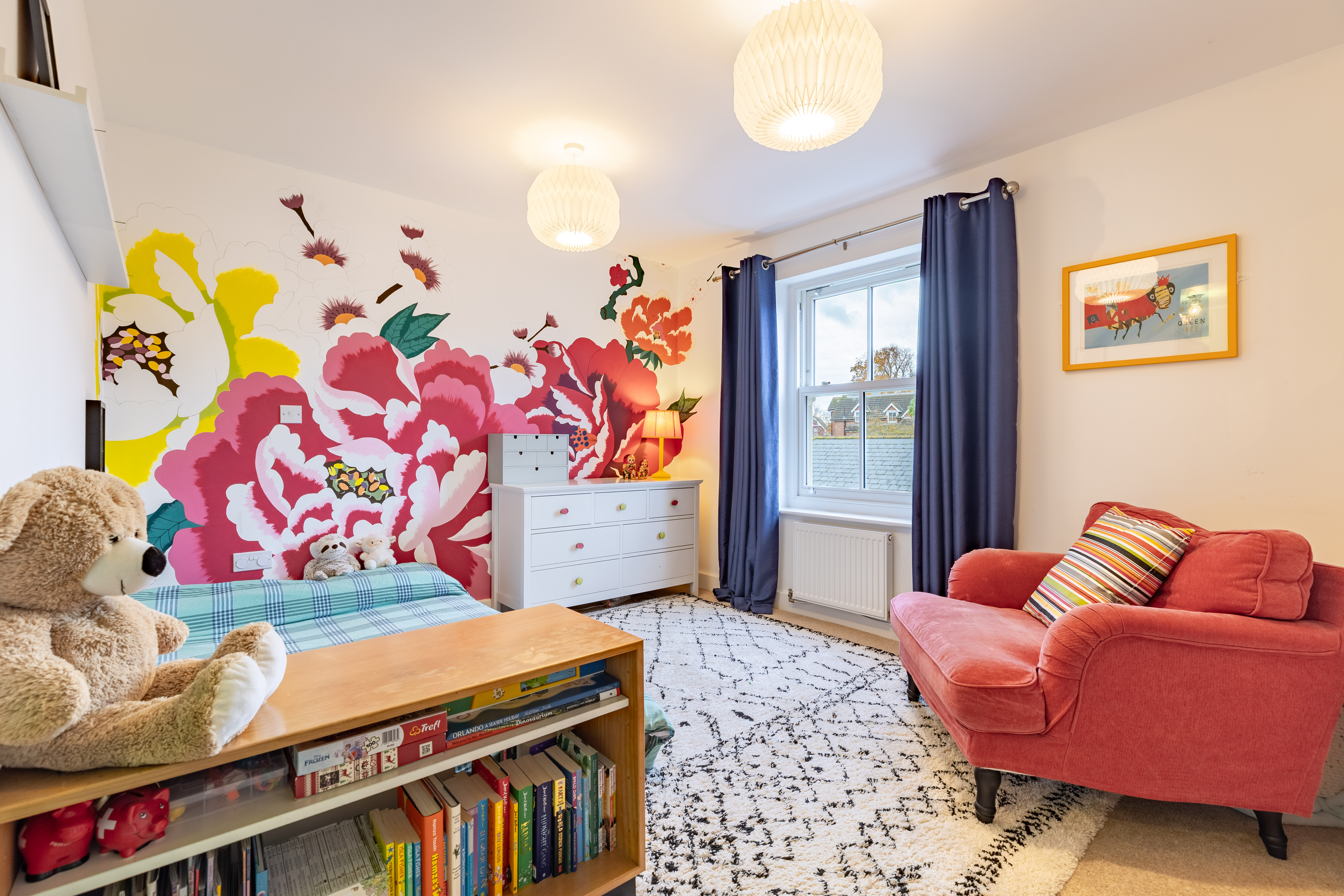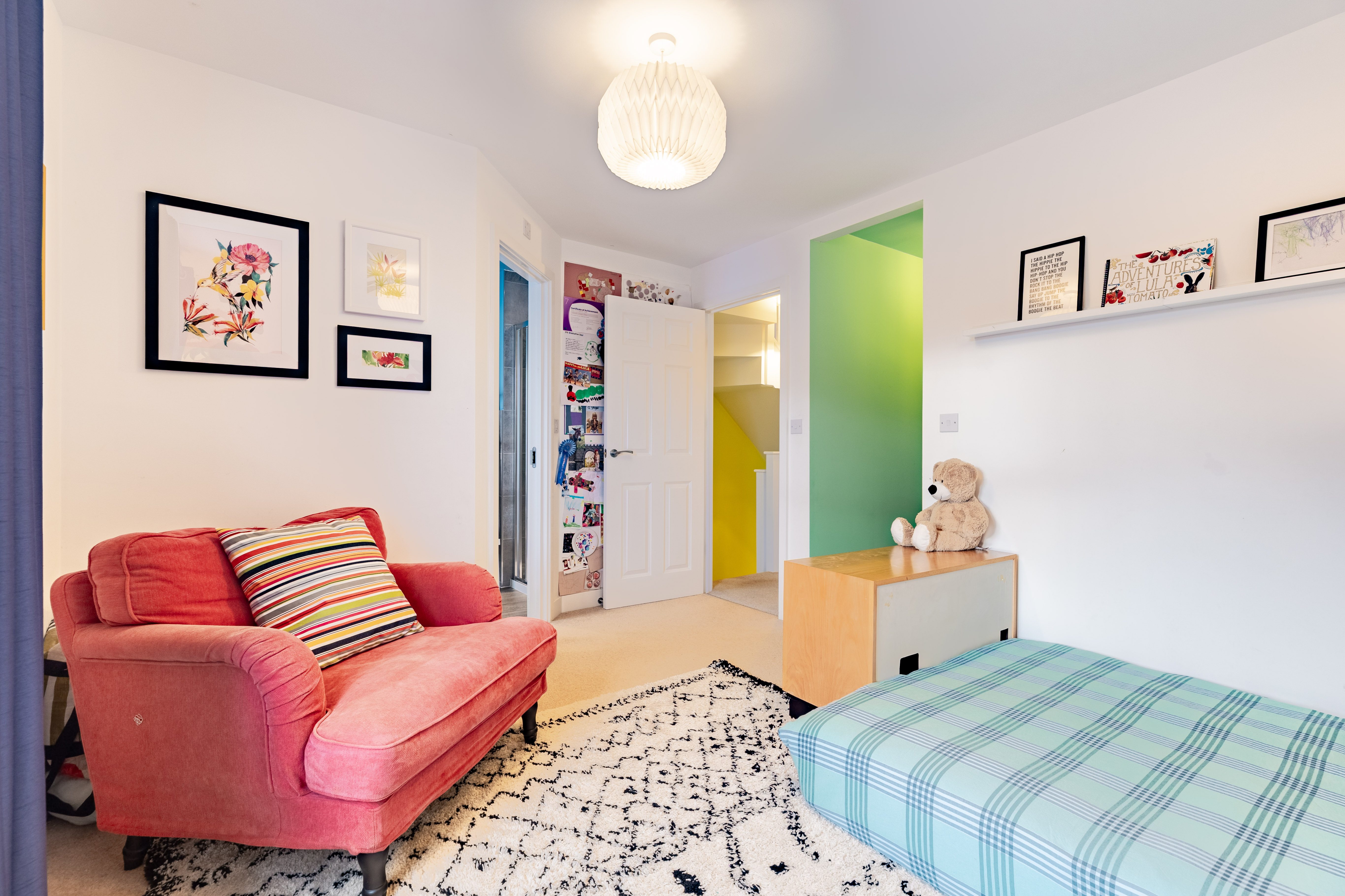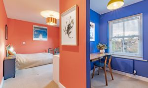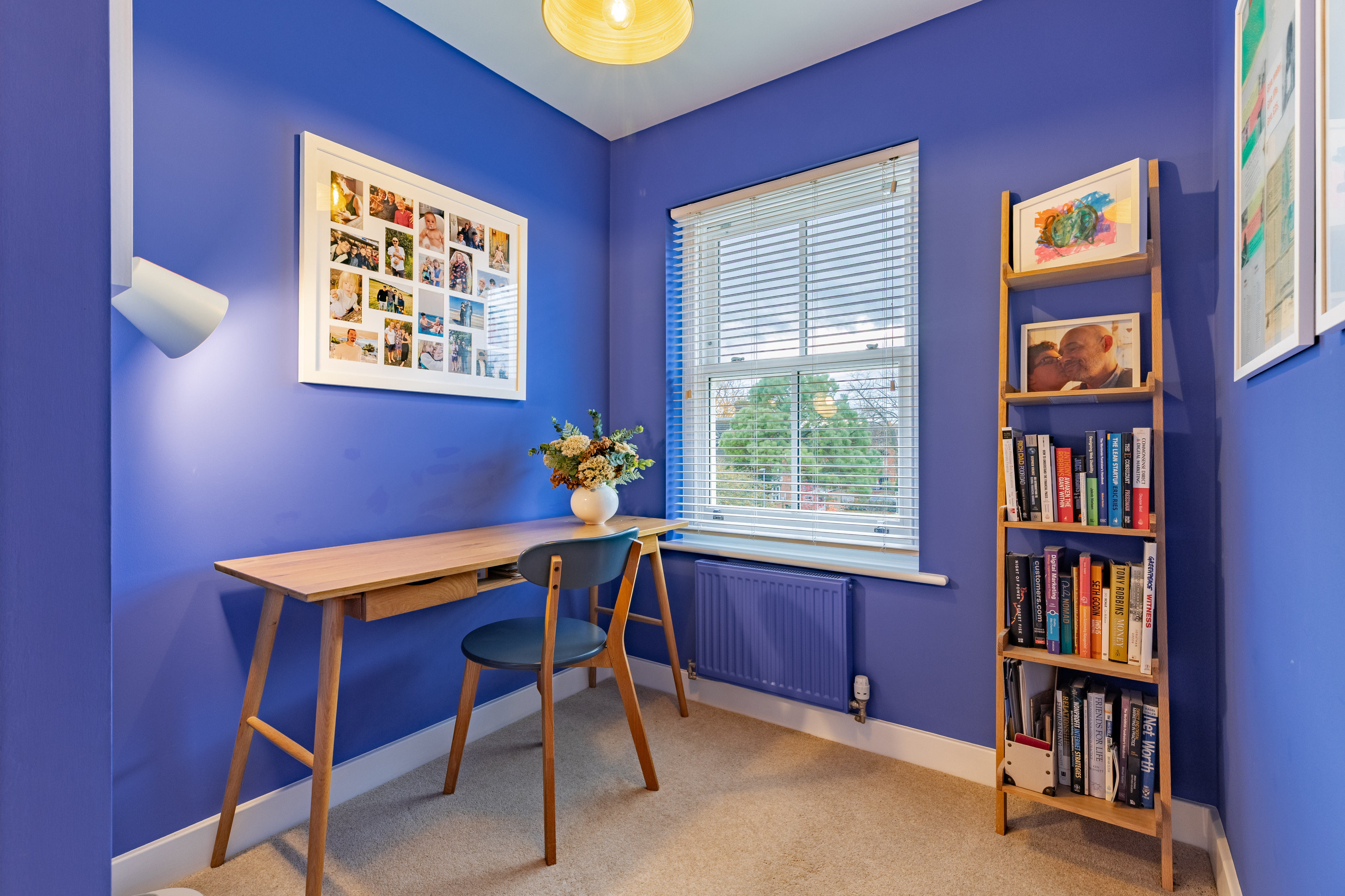 The top floor adds excellent versatility, featuring three additional bedrooms. Bedroom three is a large double with a separate area, currently used as an office space. Bedroom four is an ideal guest bedroom, comfortably fitting a double bed. And finally, bedroom five is a flexible space that can be used as a bedroom, but currently functions as a spacious home office. This level is ideal for older children, guest accommodation or dedicated working from home spaces, supported by a further family bathroom.