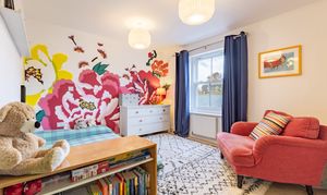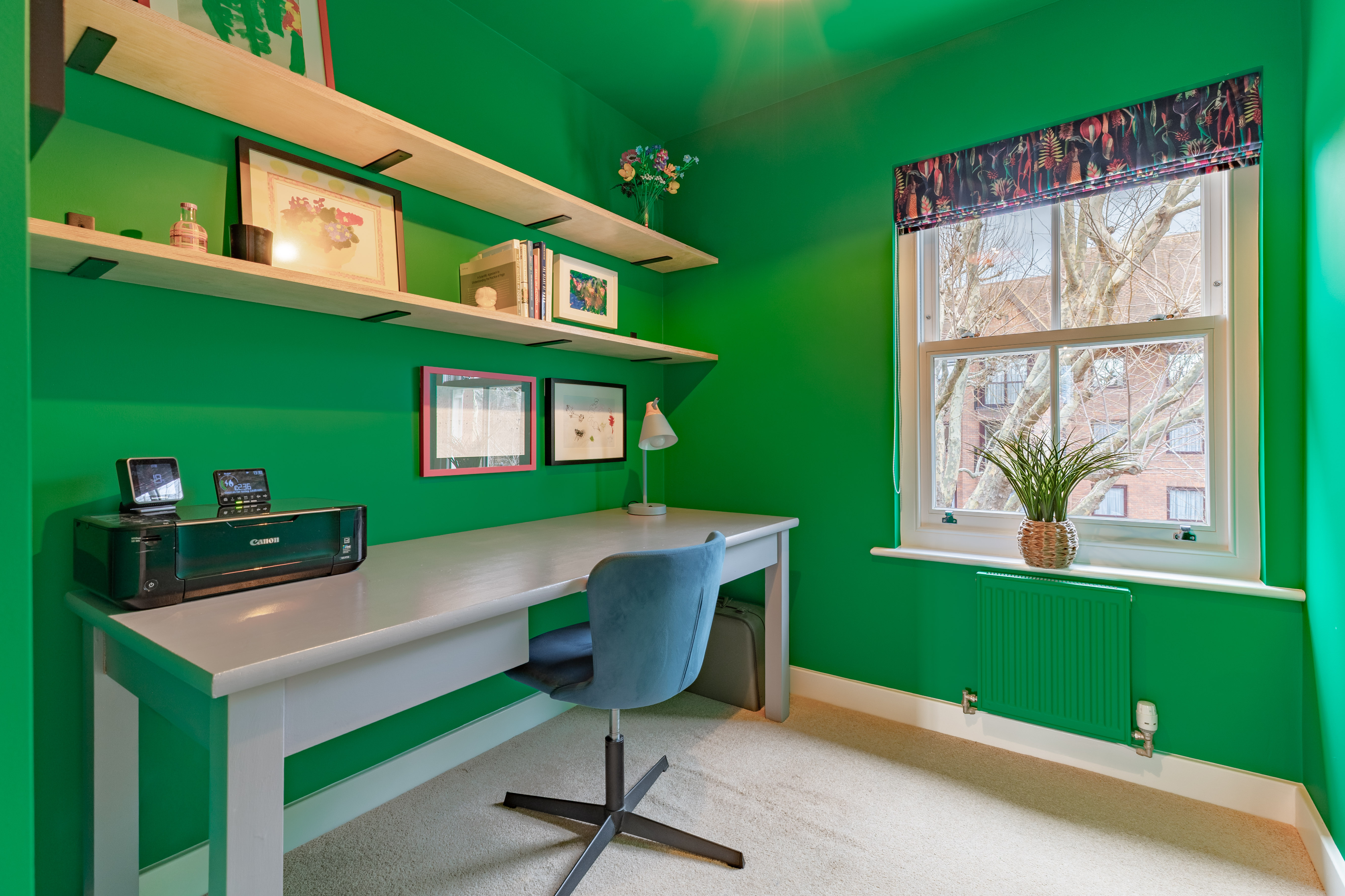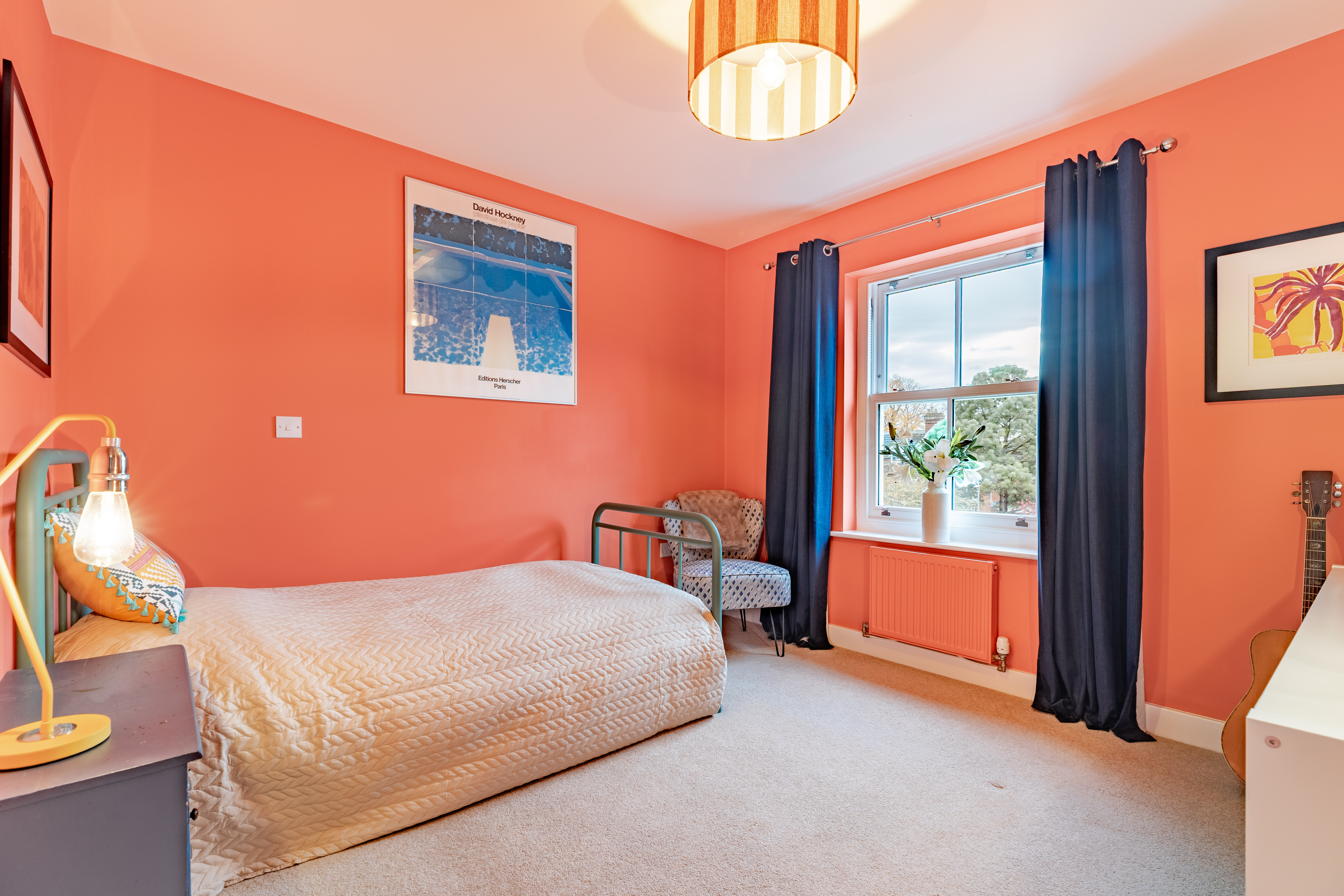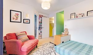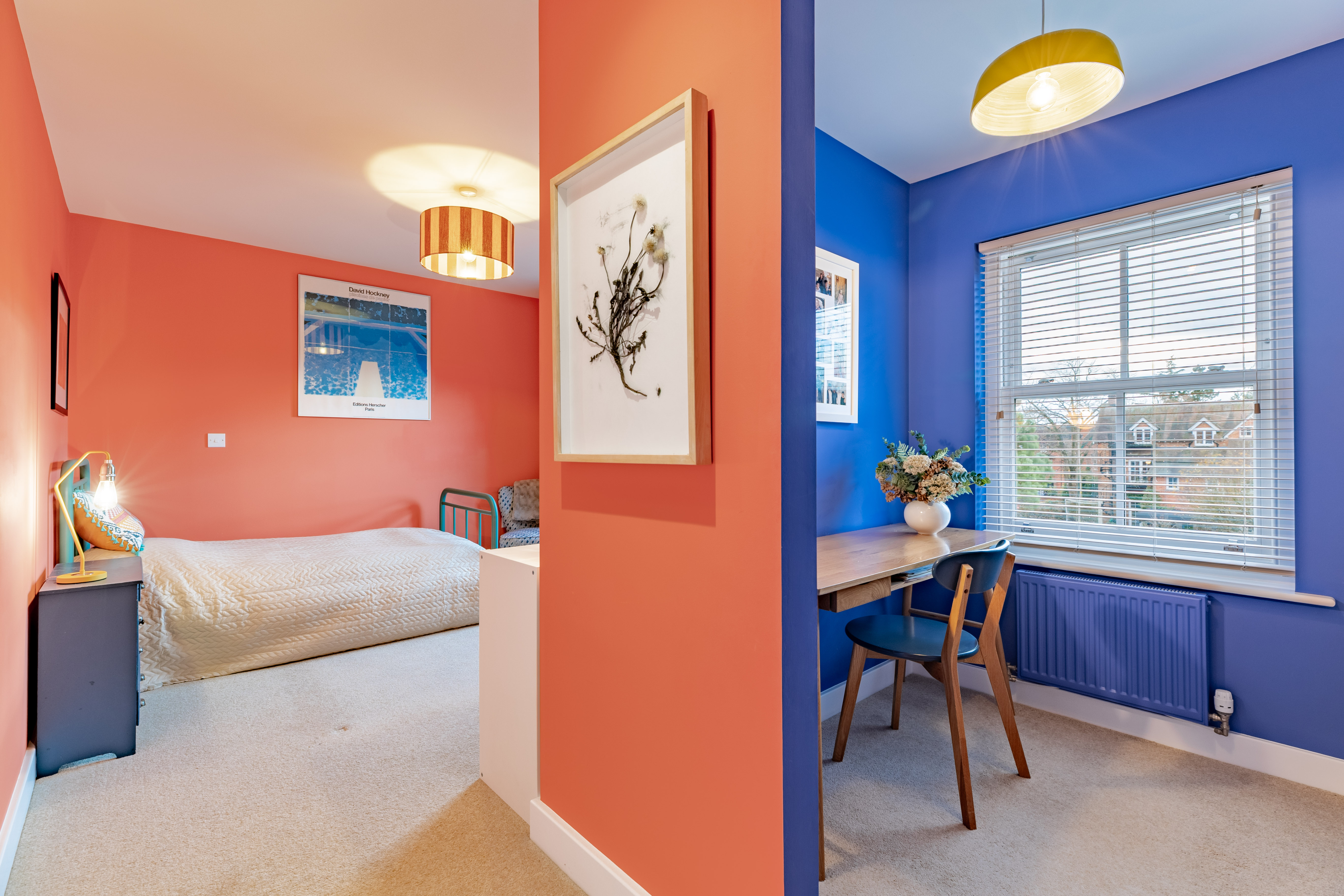 The top floor adds excellent versatility, featuring three additional bedrooms. Bedroom three is a large double with a separate area, currently used as an office space. Bedroom four is an ideal guest bedroom, comfortably fitting a double bed. And finally, bedroom five is a flexible space that can be used as a bedroom, but currently functions as a spacious home office. This level is ideal for older children, guest accommodation or dedicated working from home spaces, supported by a further family bathroom.