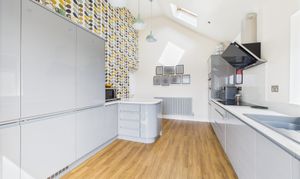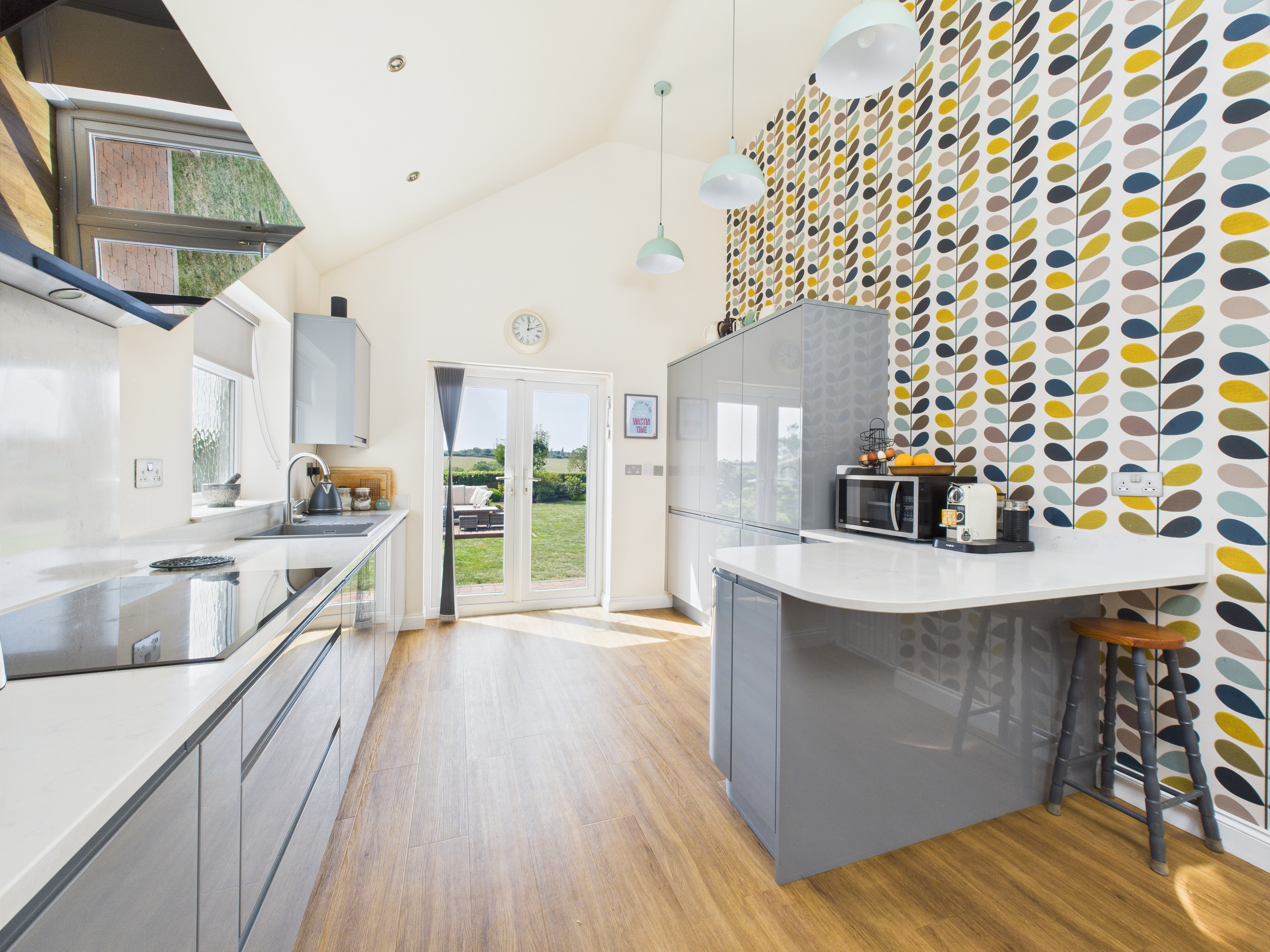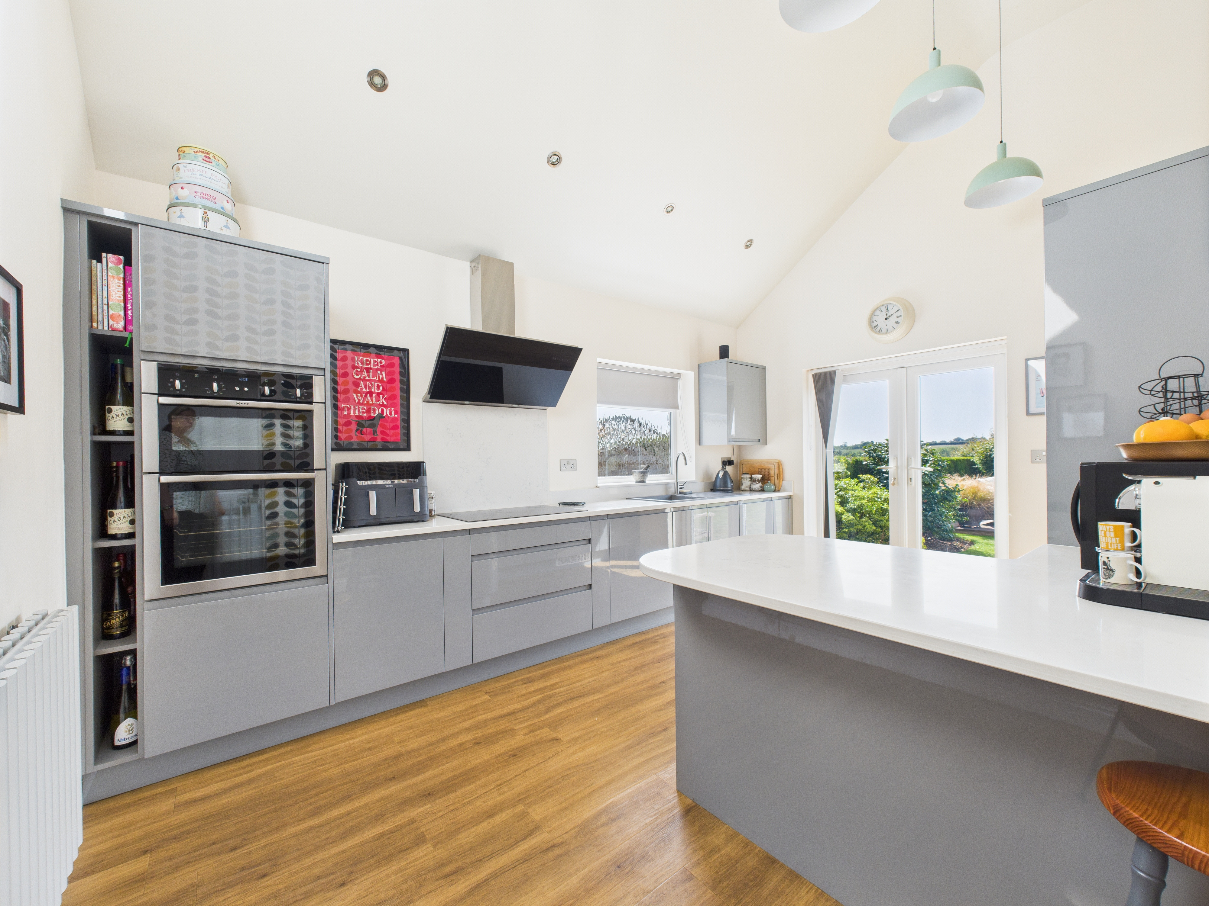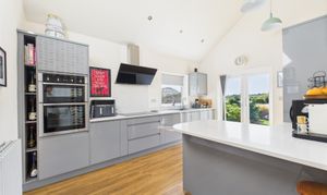 - Stylish breakfast kitchen with half-vaulted ceiling, breakfast bar and a range of integrated appliances