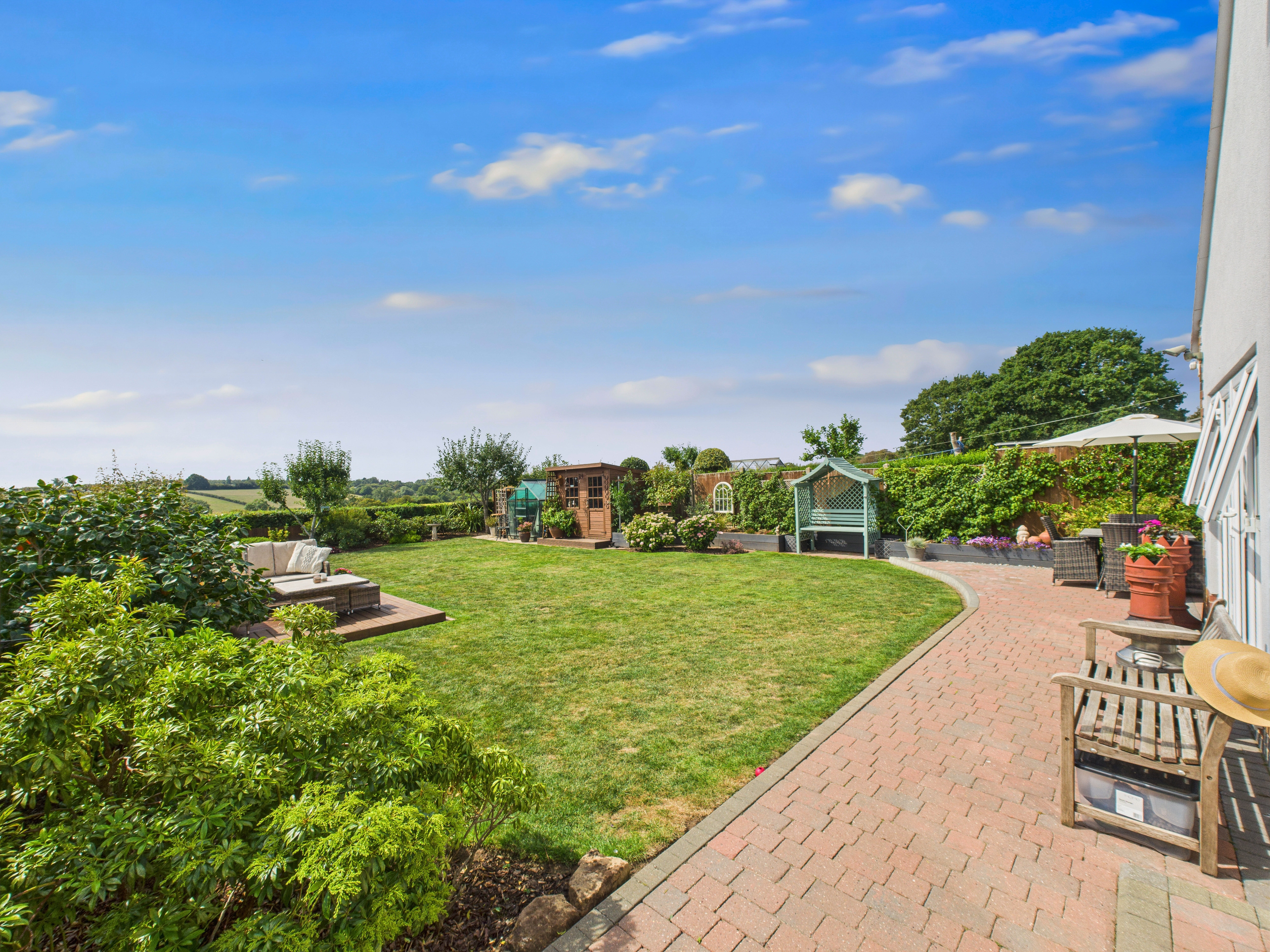 Outside, the south-west facing rear garden is a true standout feature. Generously sized, it offers outstanding countryside views along with a decked seating area, block-paved patio area, summerhouse, greenhouse and a rear gate opening onto the open fields. To the front, there is a large gated driveway providing multi-vehicle parking, a lawned area, an integrated garage/store, CCTV and alarm for peace of mind.