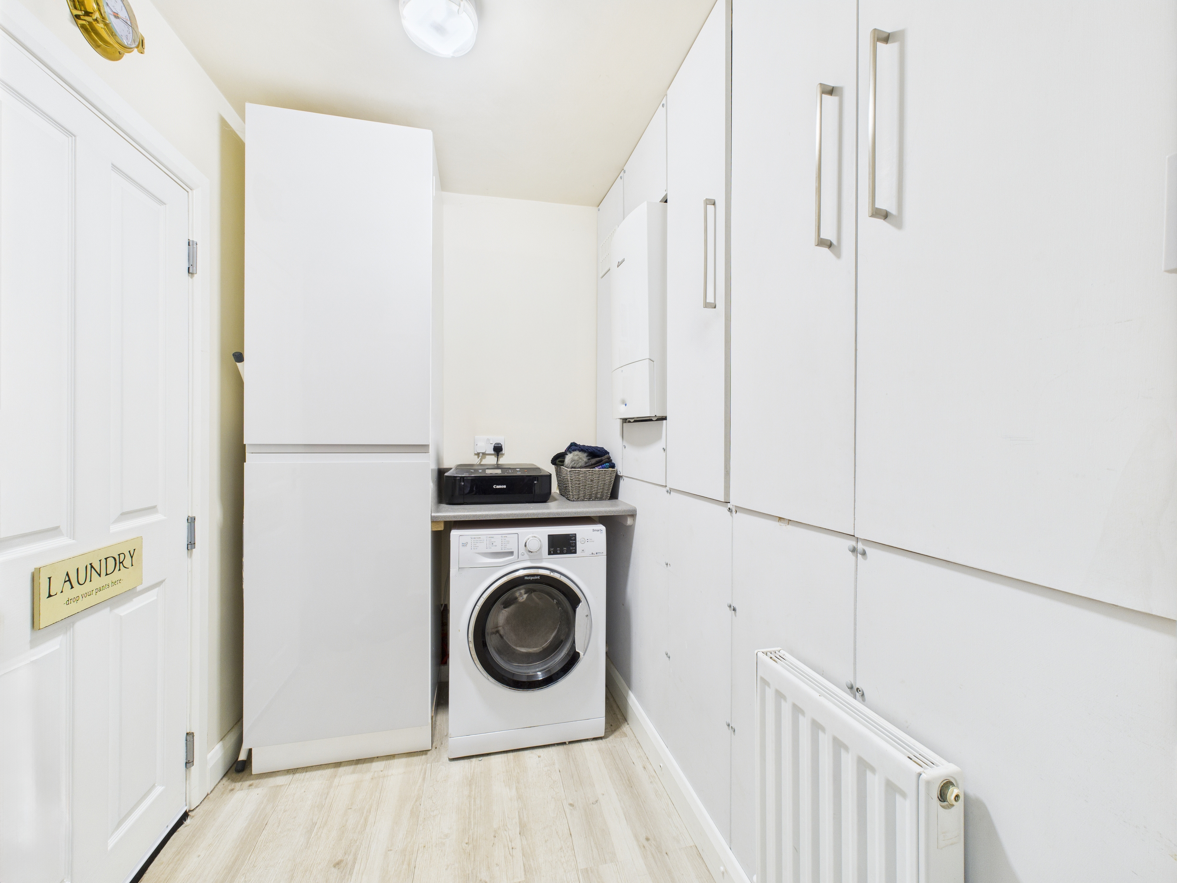 - Useful utility room with storage cupboards and space for freestanding appliances