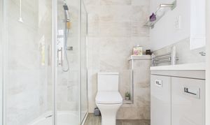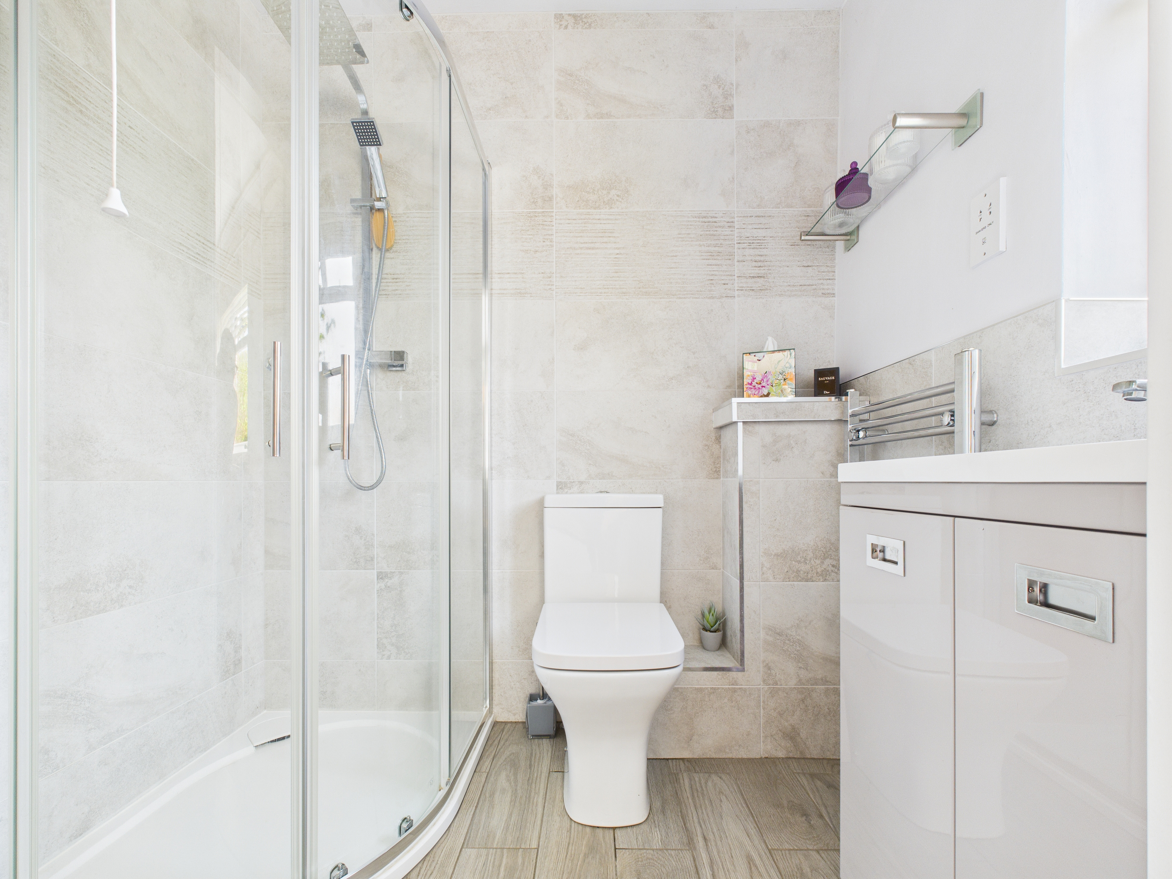 - Modern en-suite shower room with vanity basin and dual-head rainfall shower