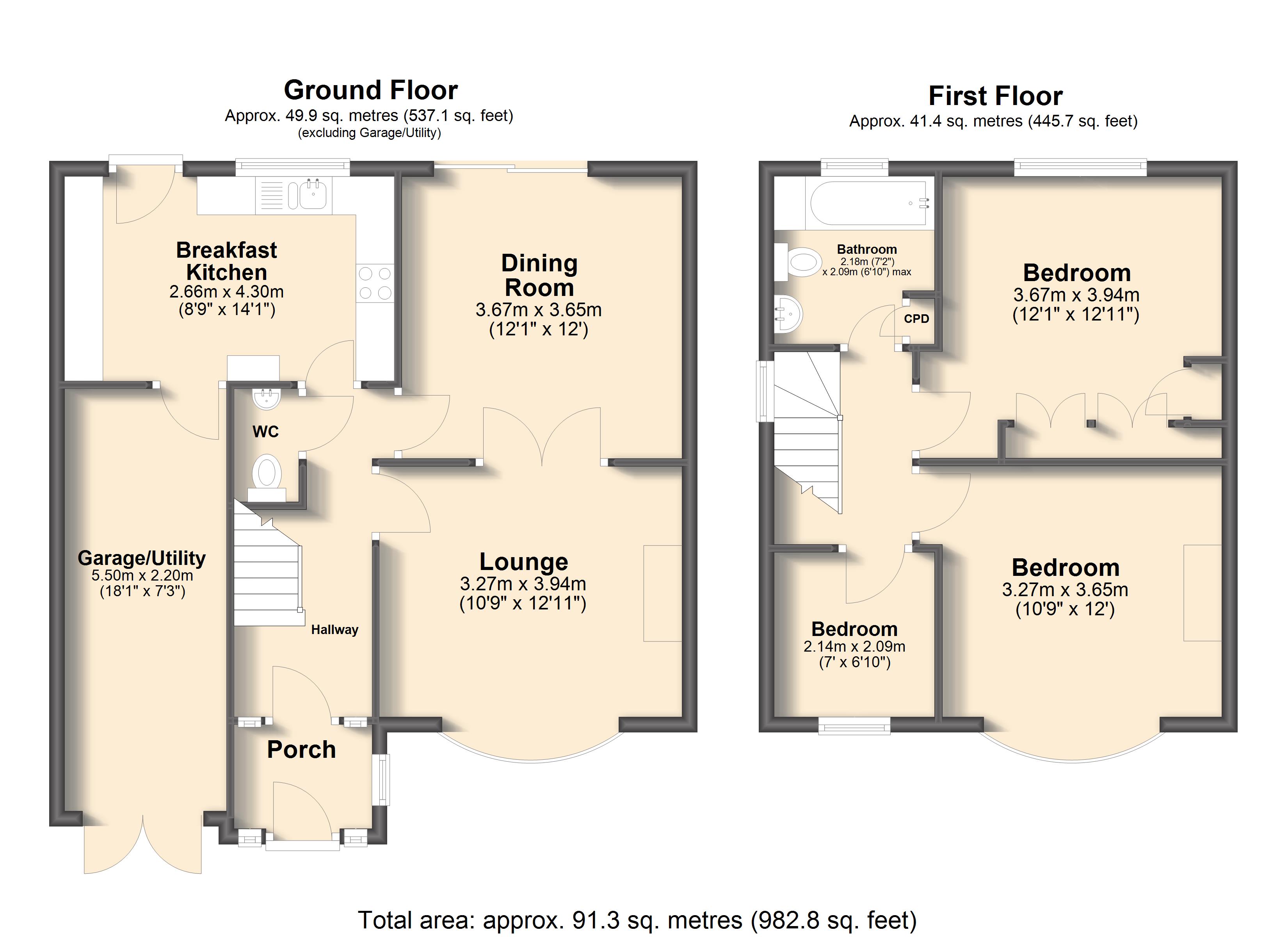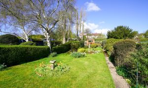 Upstairs, the property boasts two generously sized double bedrooms, each offering comfortable accommodation and flexibility for fitted or stand-alone furnishings, alongside a third single bedroom that could serve as a nursery, study, or guest room. The family bathroom is equipped with a three-piece suite, including a bath with shower over, wash basin, and WC. Additional practical features include a garage that doubles as a utility space, and a driveway with parking for two vehicles. To the rear is a beautiful landscaped garden with patio, lawn, colourful borders, and a shed for storage.