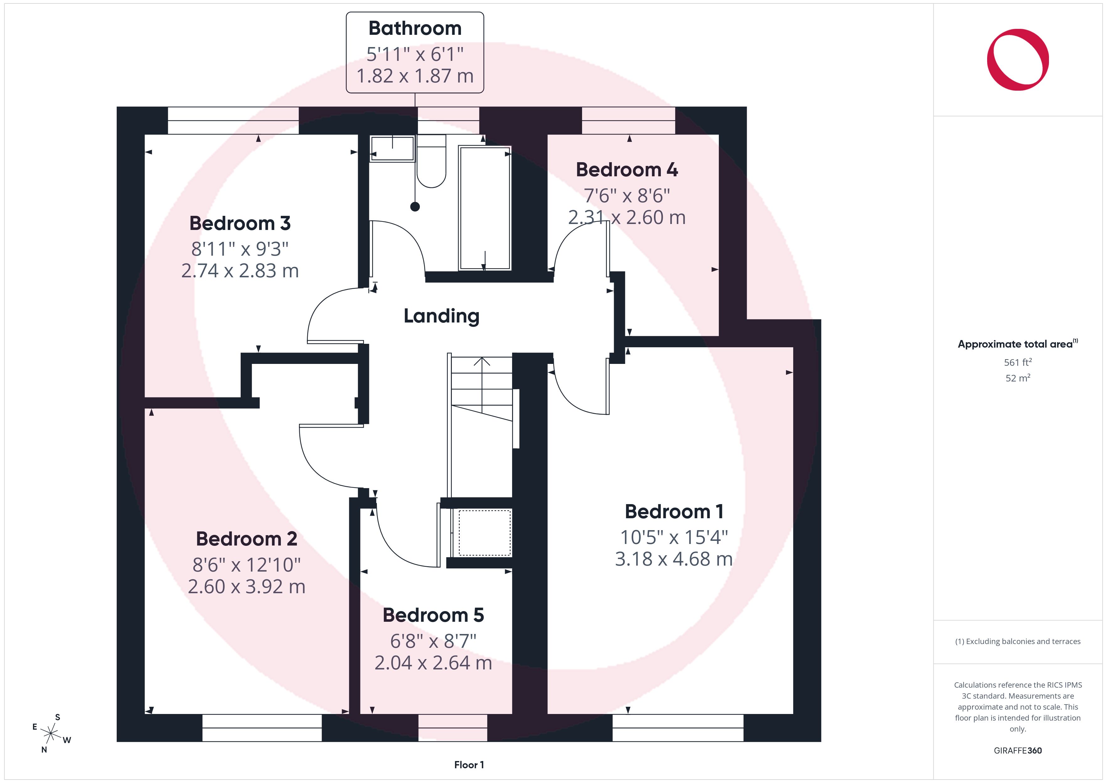 Upstairs there are five bedrooms (three doubles and two singles). The bathroom comprises a bath with separate shower over, wash basin and a W.C. The landing has access to the boarded loft space.