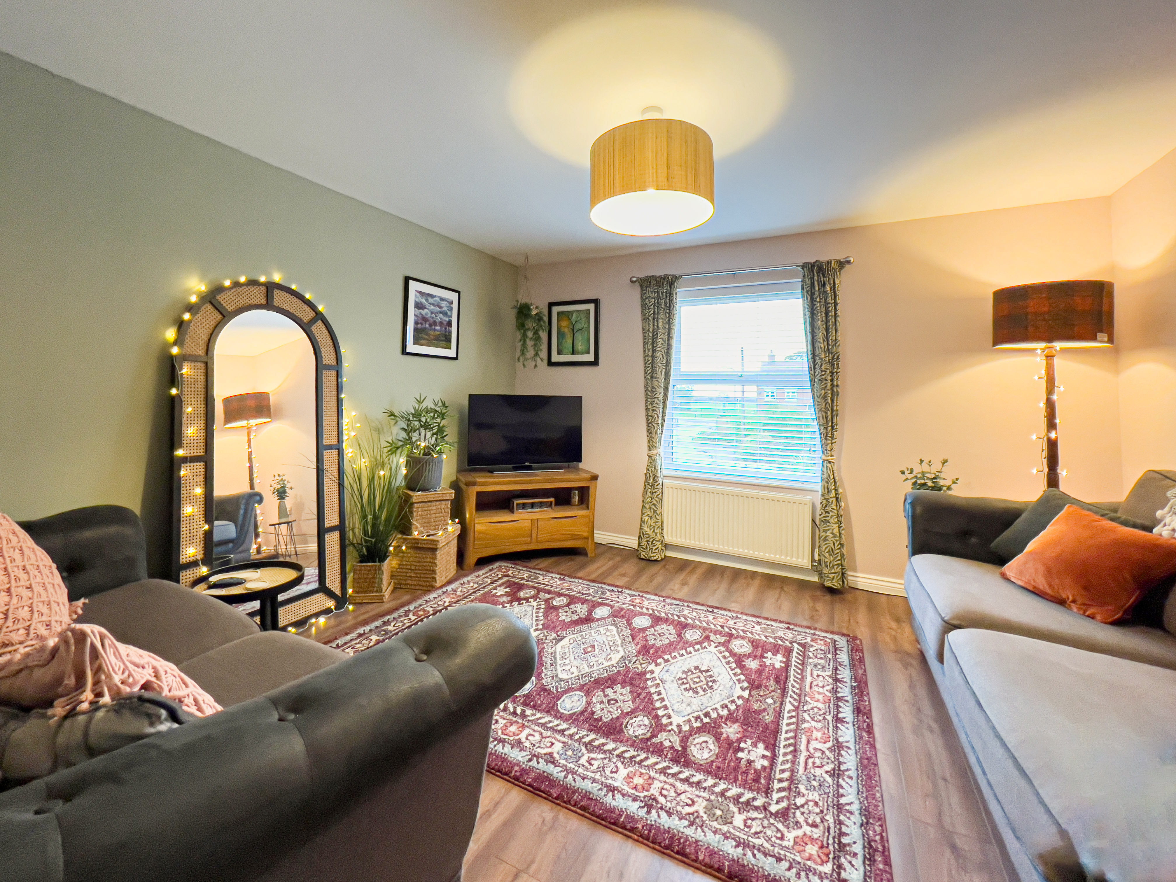 To the first floor the large sitting room has wood effect flooring and overlooks the rear of the property and racecourse beyond.