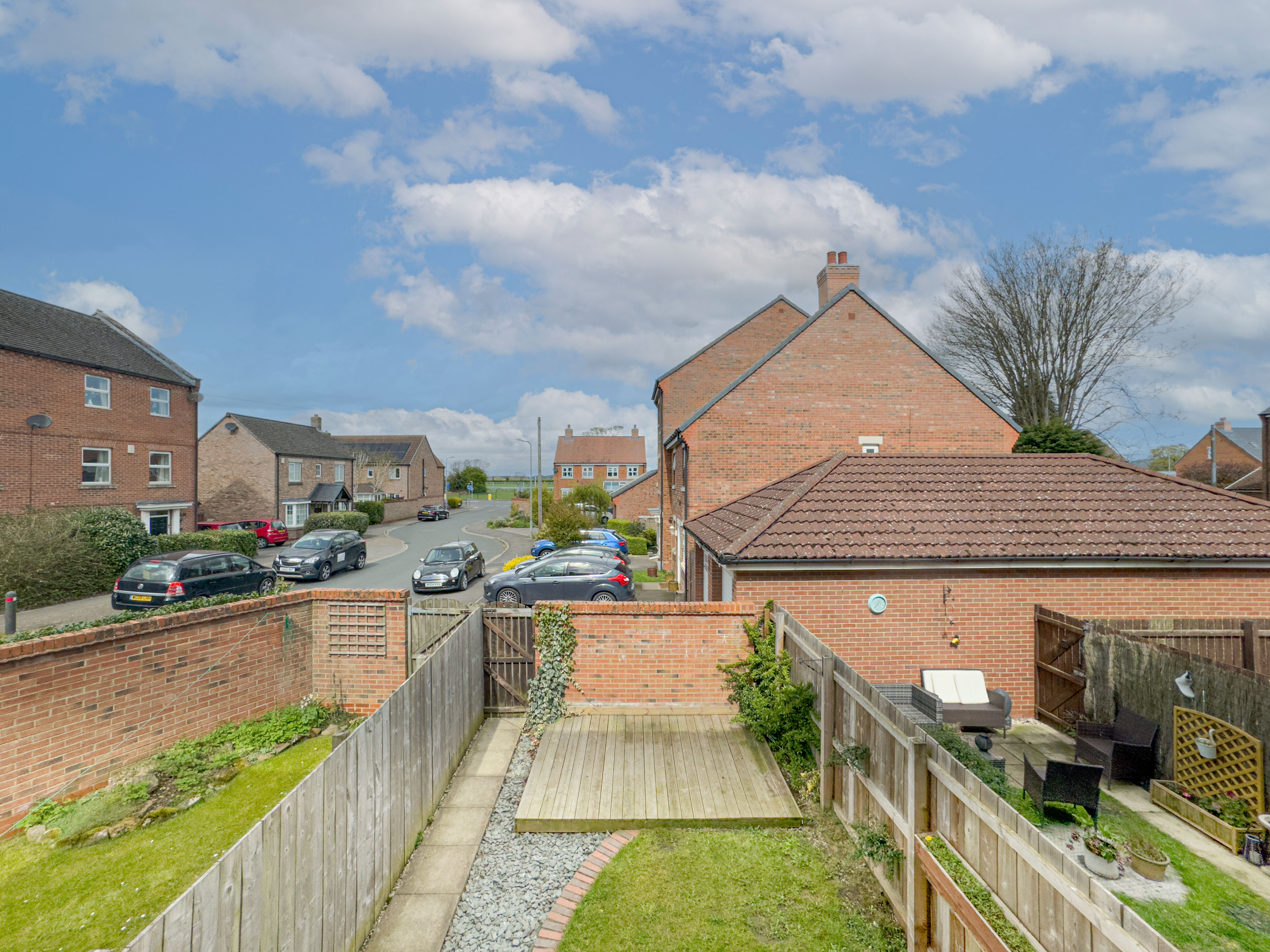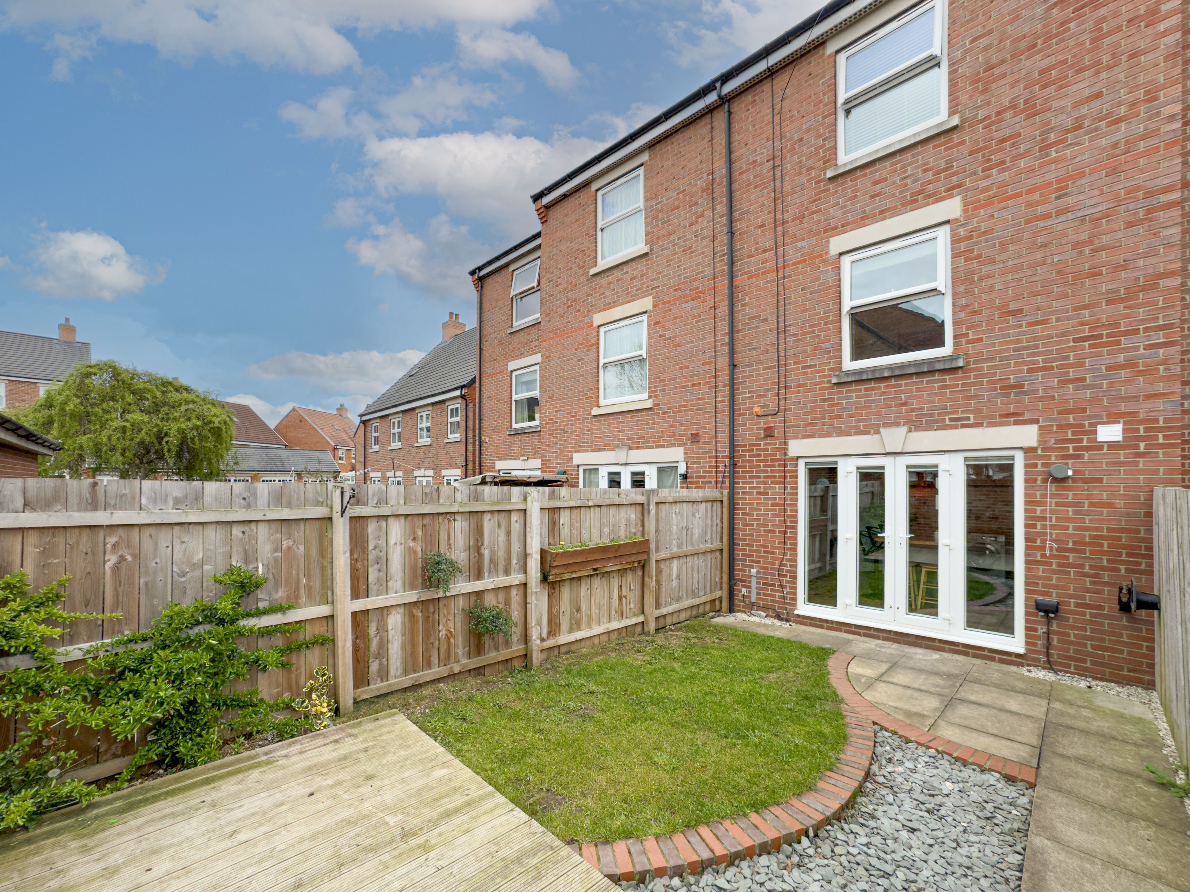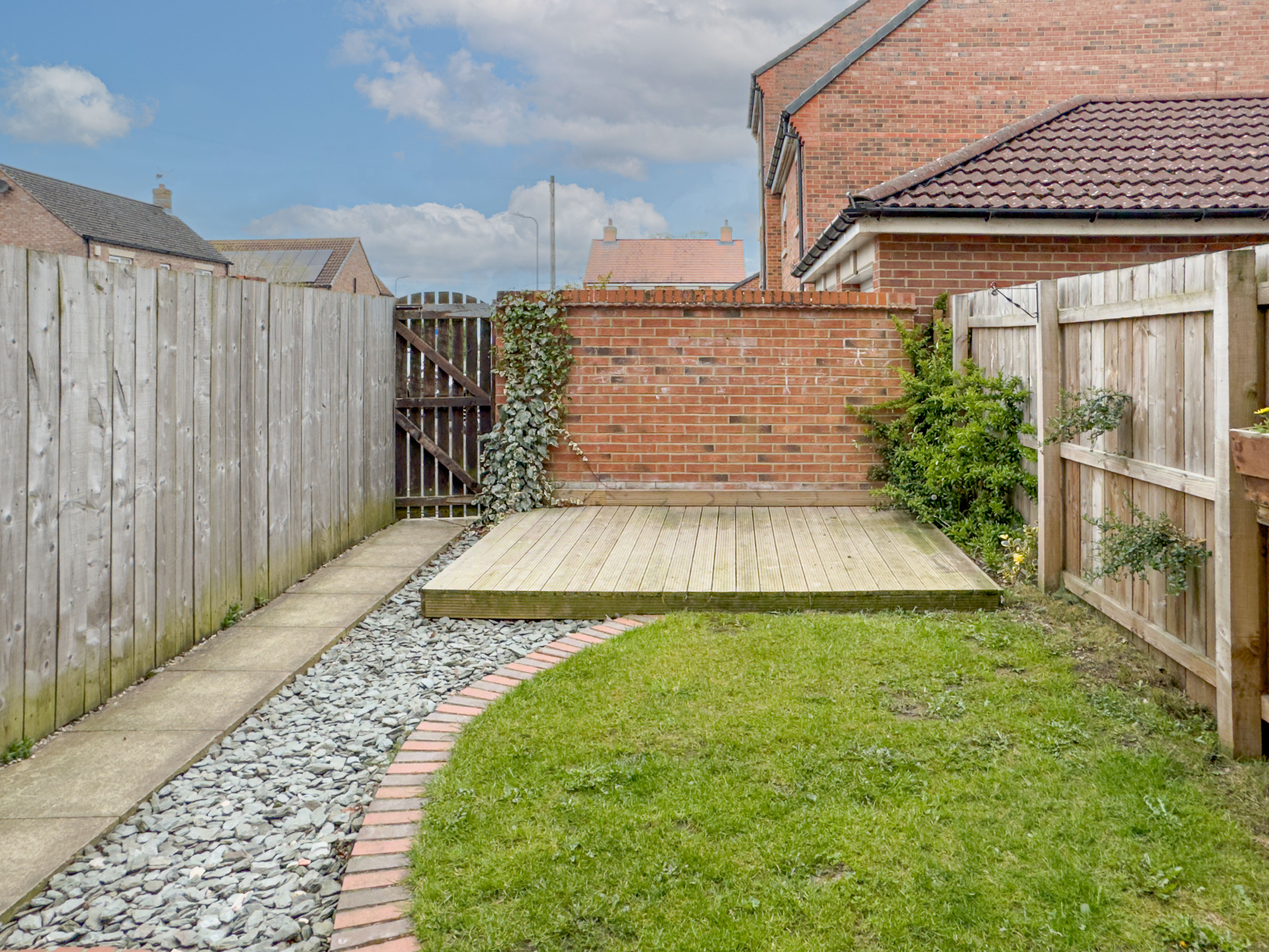 To the rear of the house, with gated access to the driveway is an enclosed garden, consisting of lawned area, raised decking and a small patio.