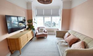 Into wide double glazed square bay window to front. Picture rail. Coved ceiling. Radiator.