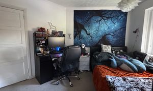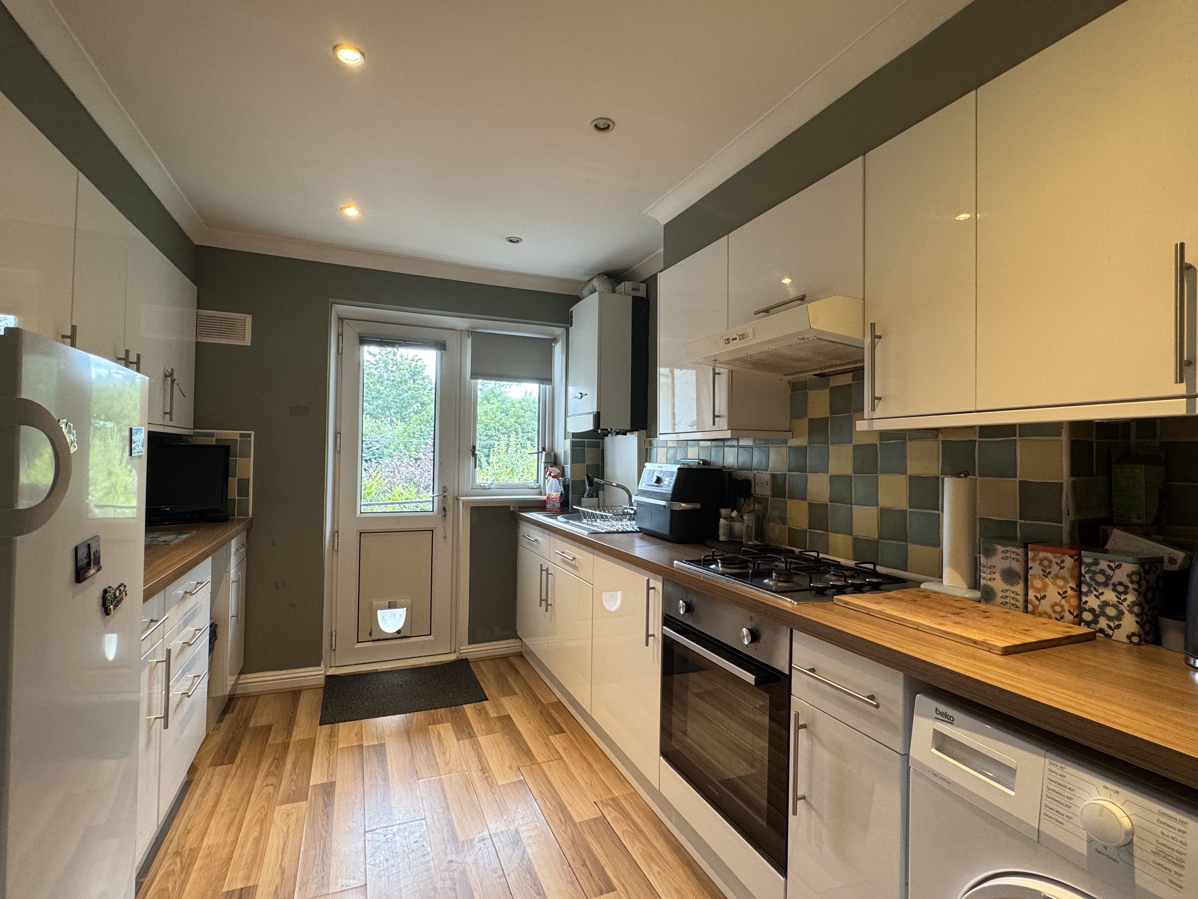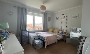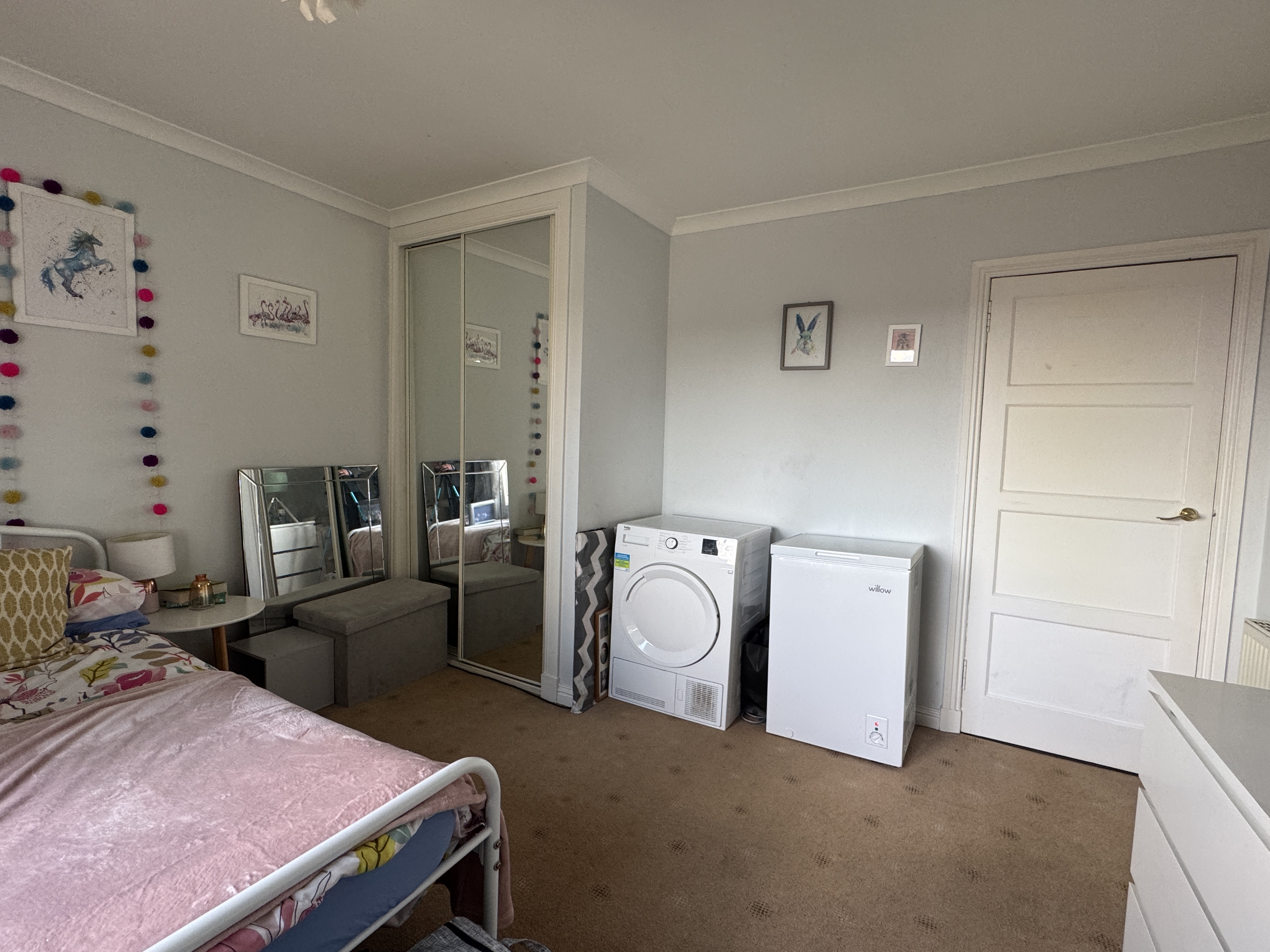 The property comprises three well-proportioned double bedrooms, each equipped with fitted wardrobes, maximising storage space and enhancing organisation. A contemporary bathroom awaits, featuring a modern design, a mains-powered shower over the bath, and a heated towel rail for added comfort and convenience.