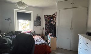 The generous lounge beckons with its ample size and a large window at the rear, filling the space with natural light. The modern kitchen, complete with essential white goods, offers functionality and style, complemented by a charming balcony that extends from the kitchen area.