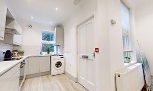 The ground floor features a separate living room, offering a bright and versatile communal space, ideal for relaxing or socialising. The modern fitted kitchen flows seamlessly into the dining area, creating a practical and sociable hub for tenants.