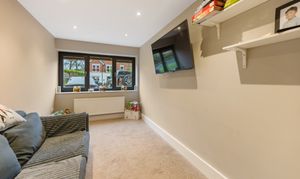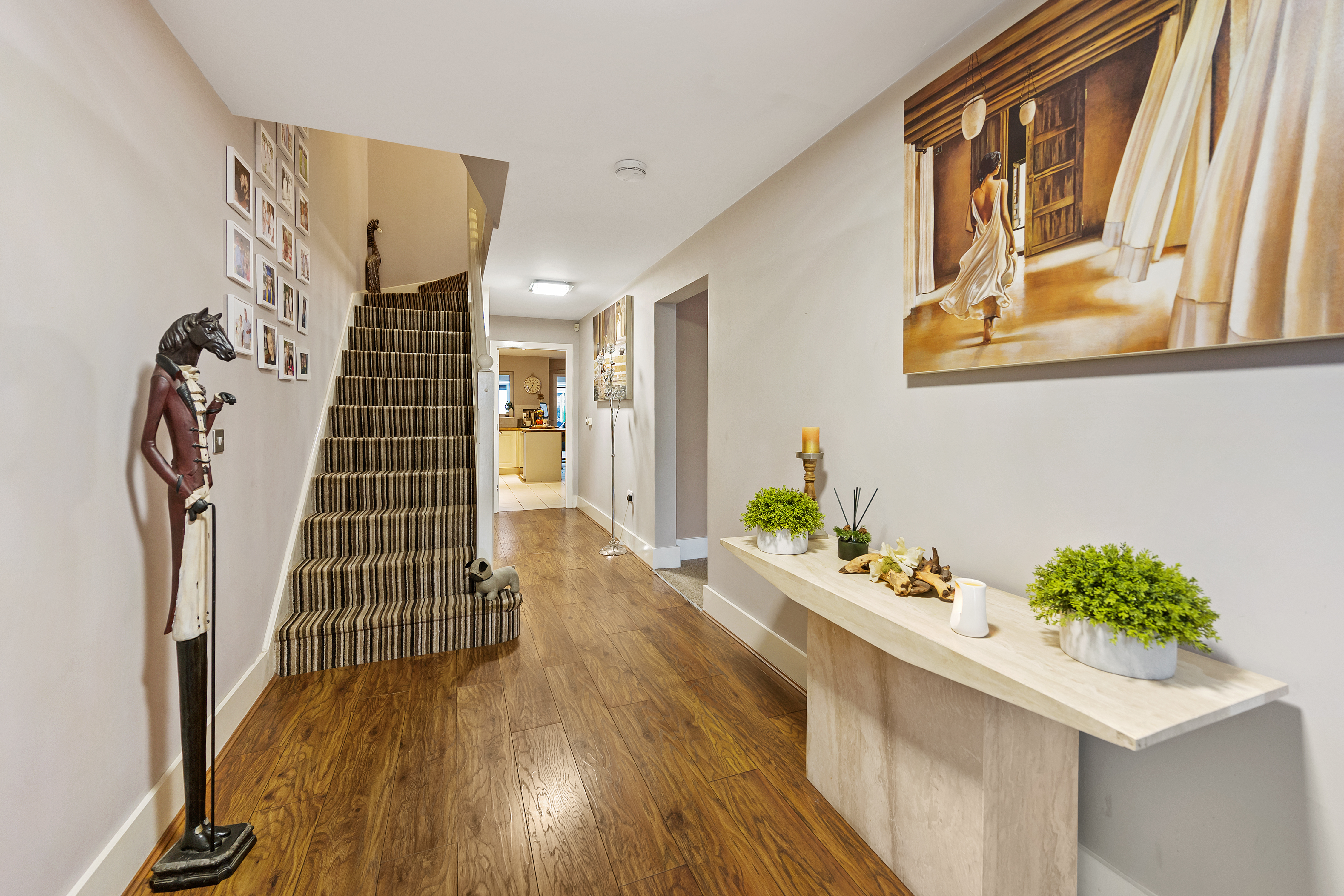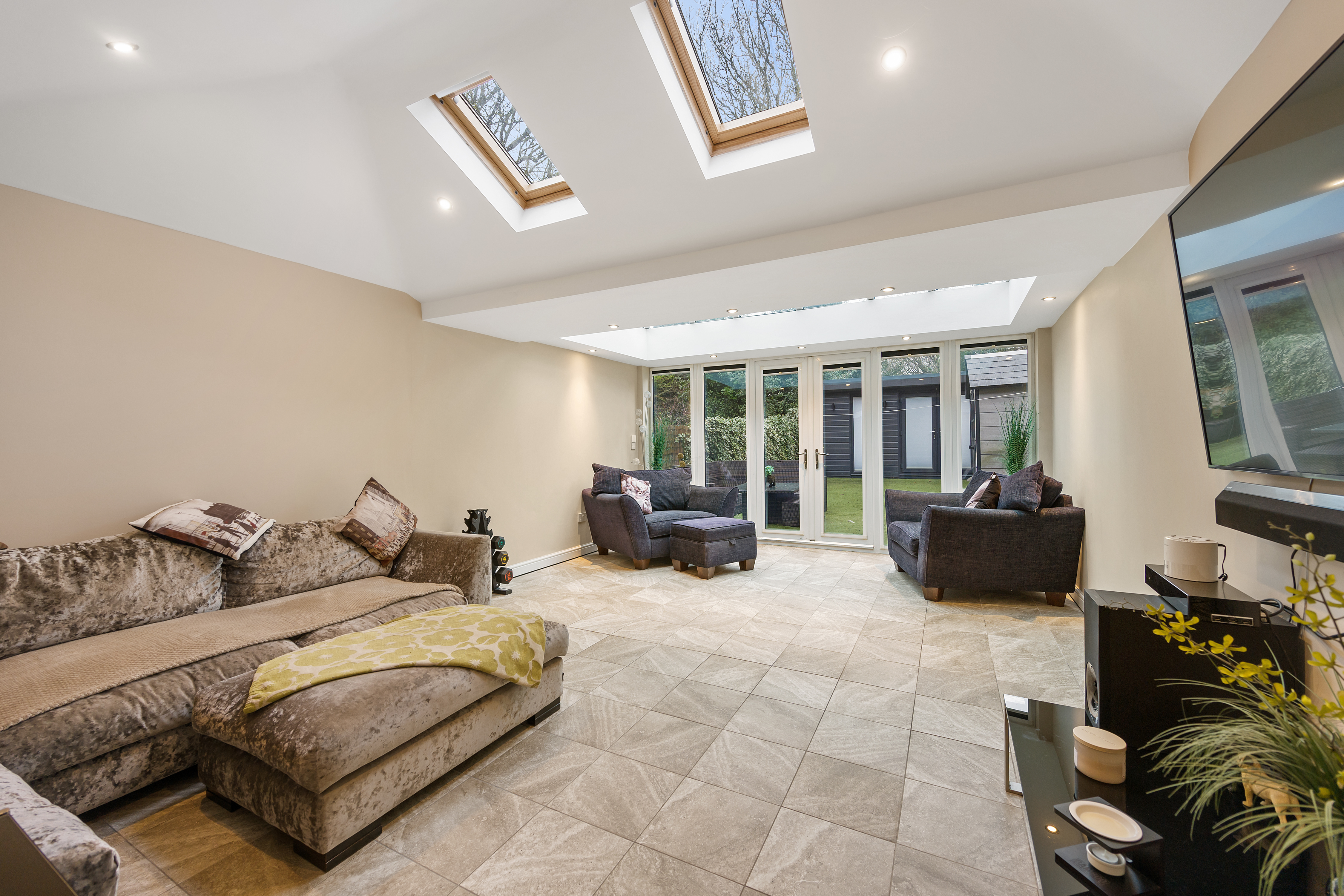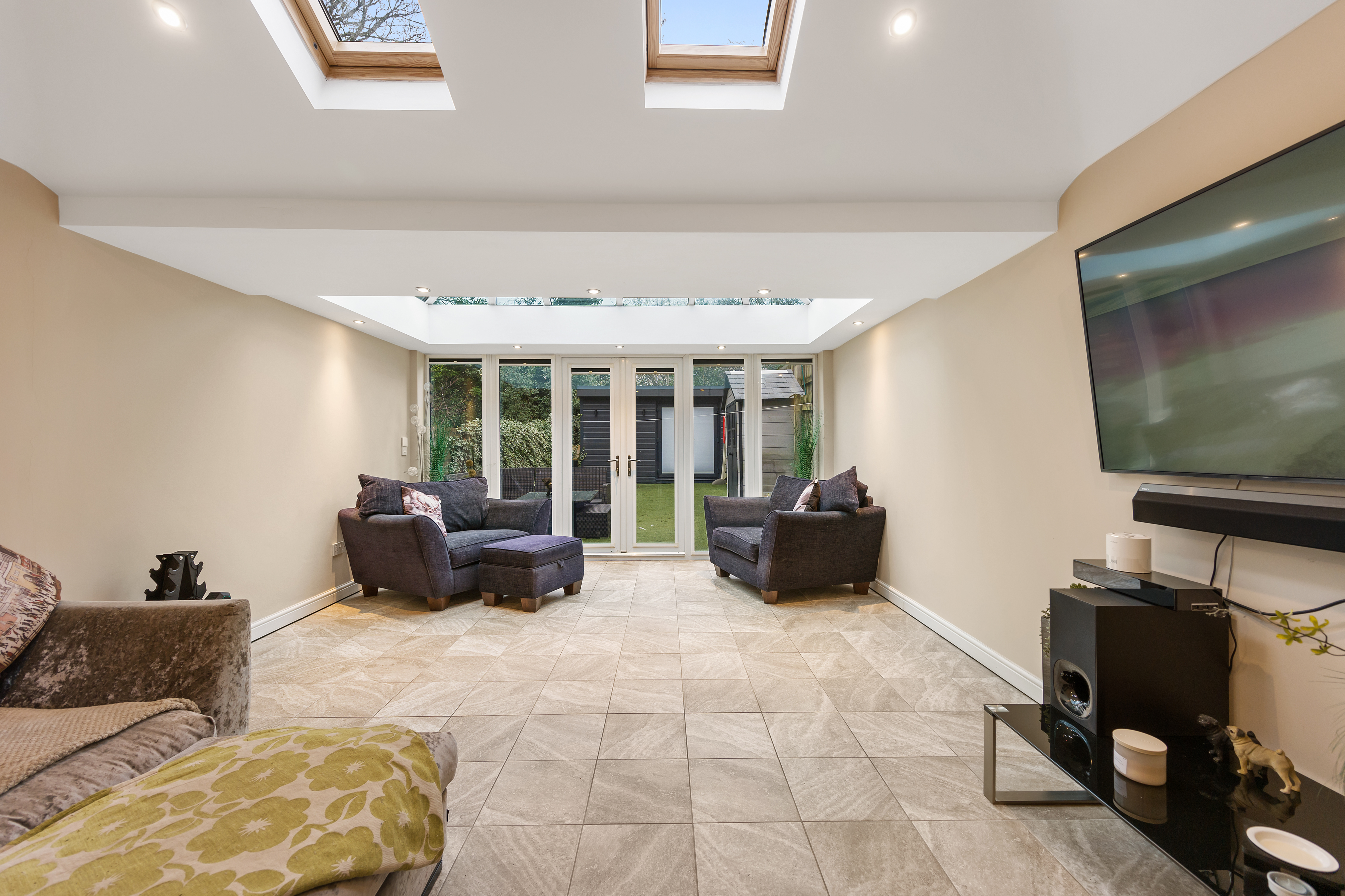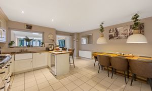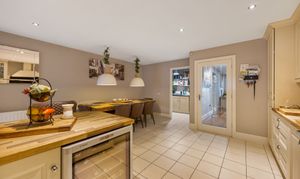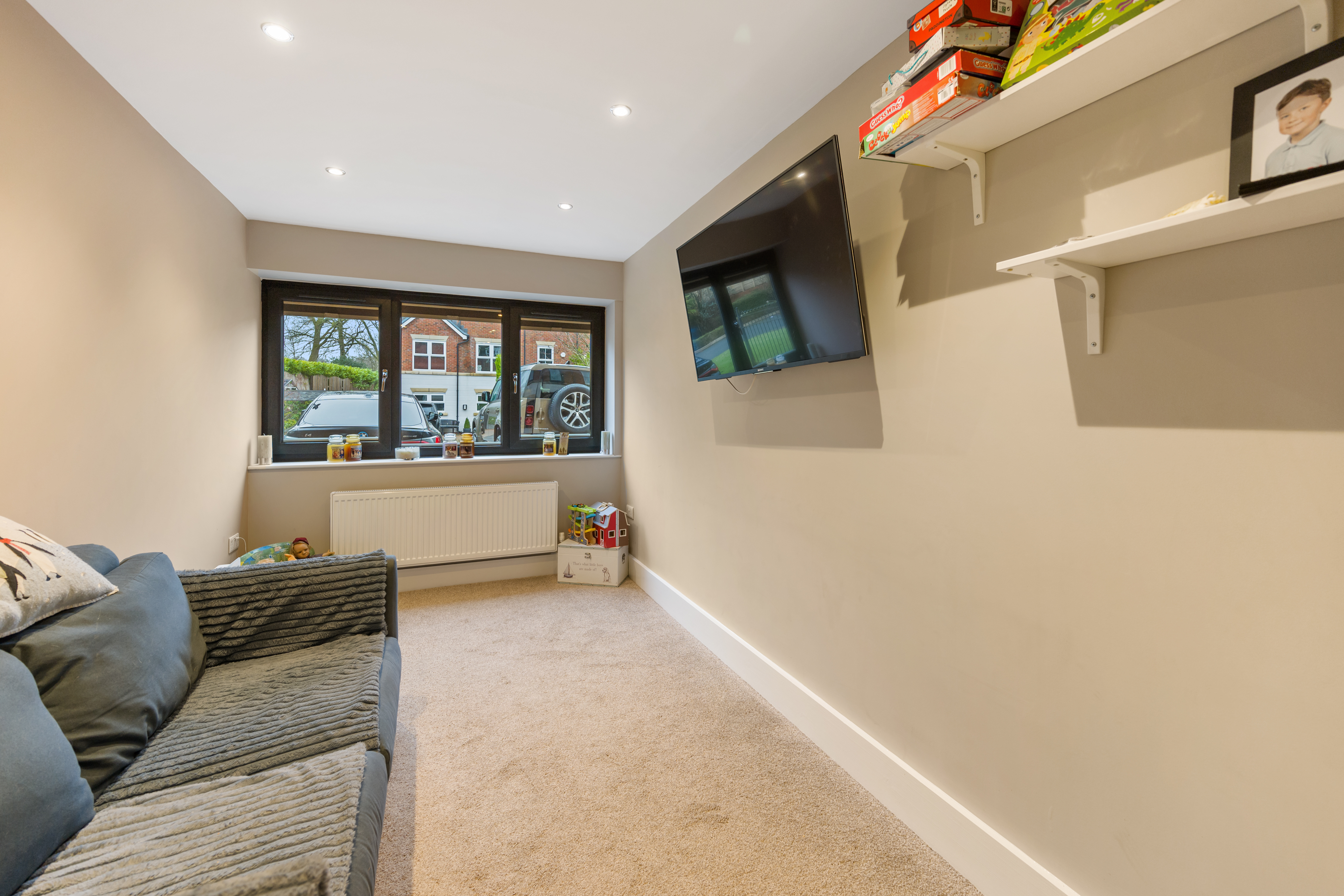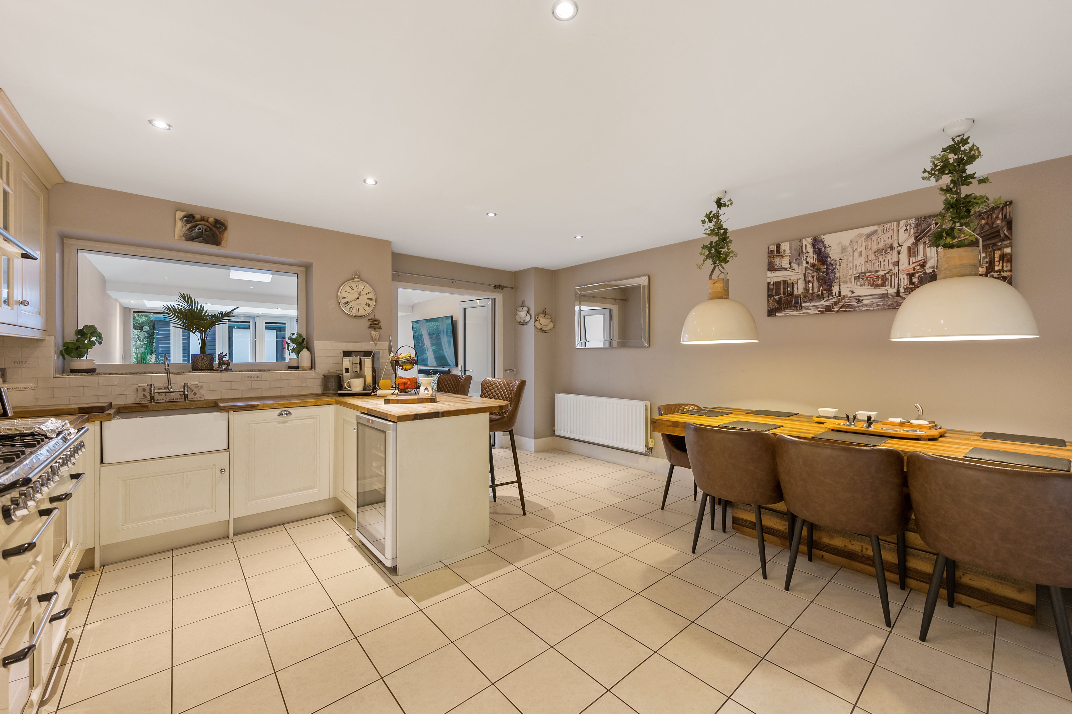 Upon entering the property you will find a welcoming and light filled entrance hallway, leading to a generous sized playroom to the front elevation. The spacious, open-plan kitchen / diner really is the heart of the home, offering integrated appliances and a beautifully crafted bespoke kitchen with double doors leading to the fabulous, extended sitting room. A handy utility room to the side elevation provides wall and base units with space for additional appliances. A guest w/c completes the extensive ground floor accommodation.