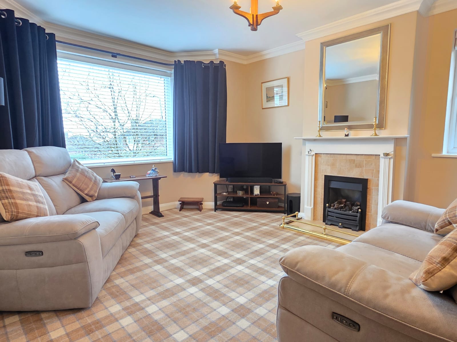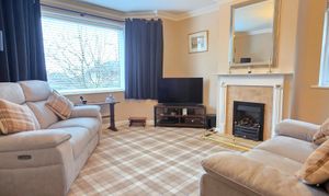 The private and cosy lounge offers carpet flooring, TV connectivity, coving to ceiling, gas fire-place with feature surround and hearth, radiator and UPVC double glazed bay window.
