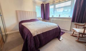The second double bedroom includes carpet flooring, radiator, coving to ceiling and two UPVC double glazed windows.