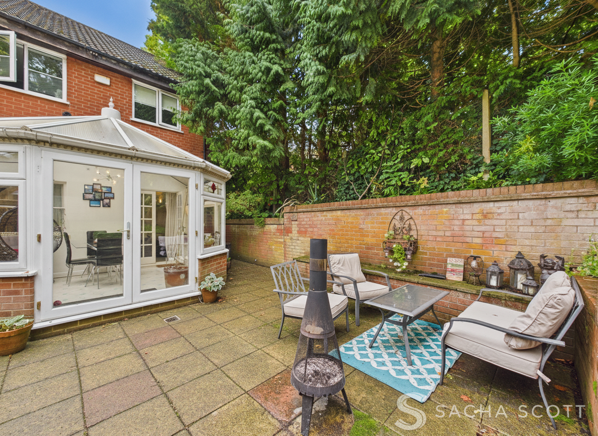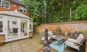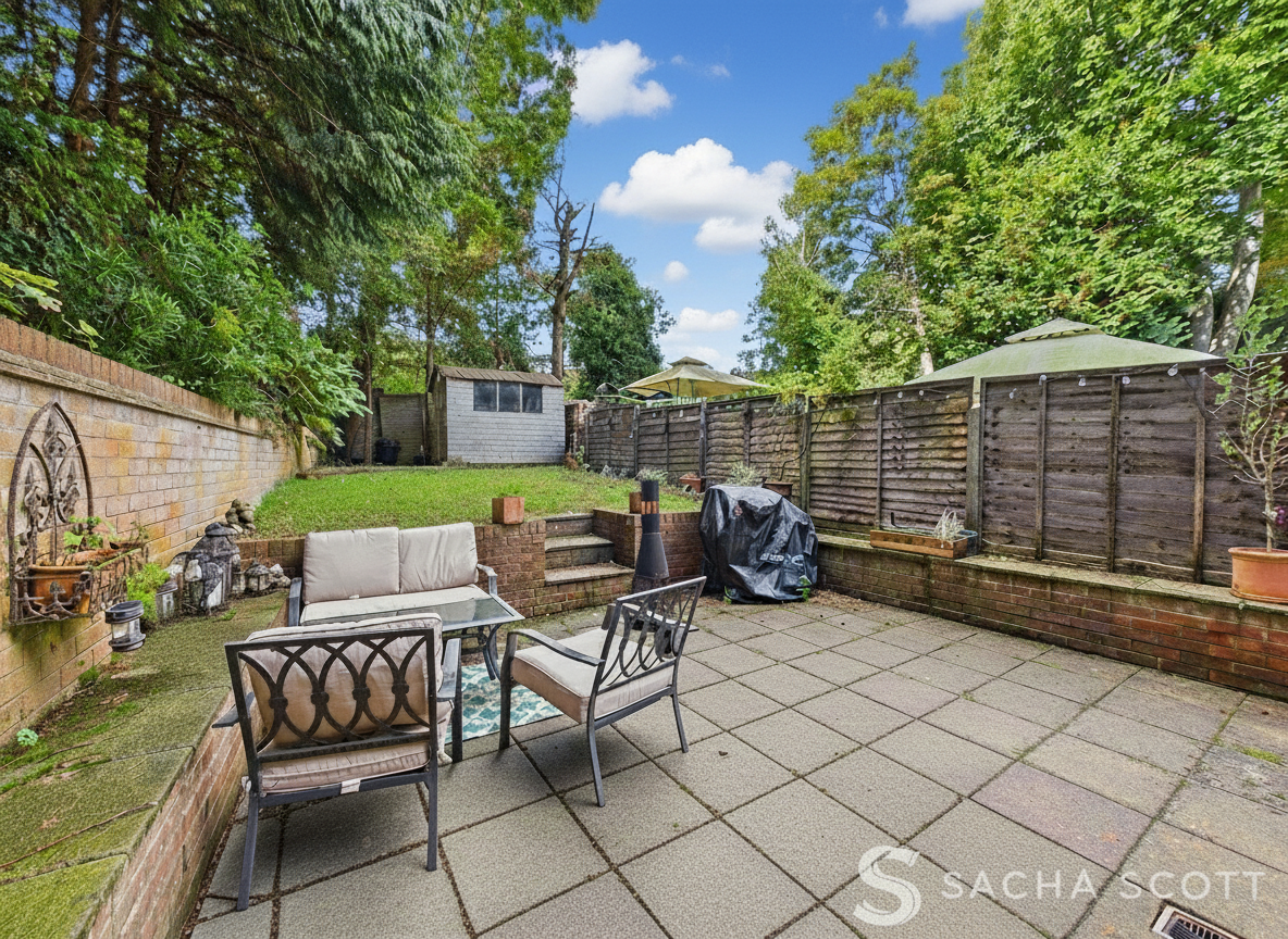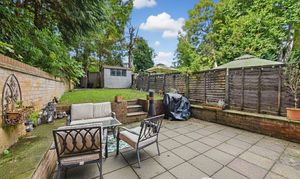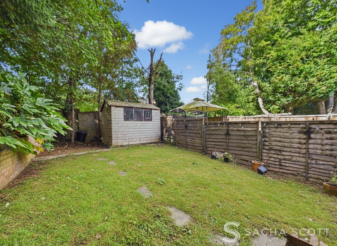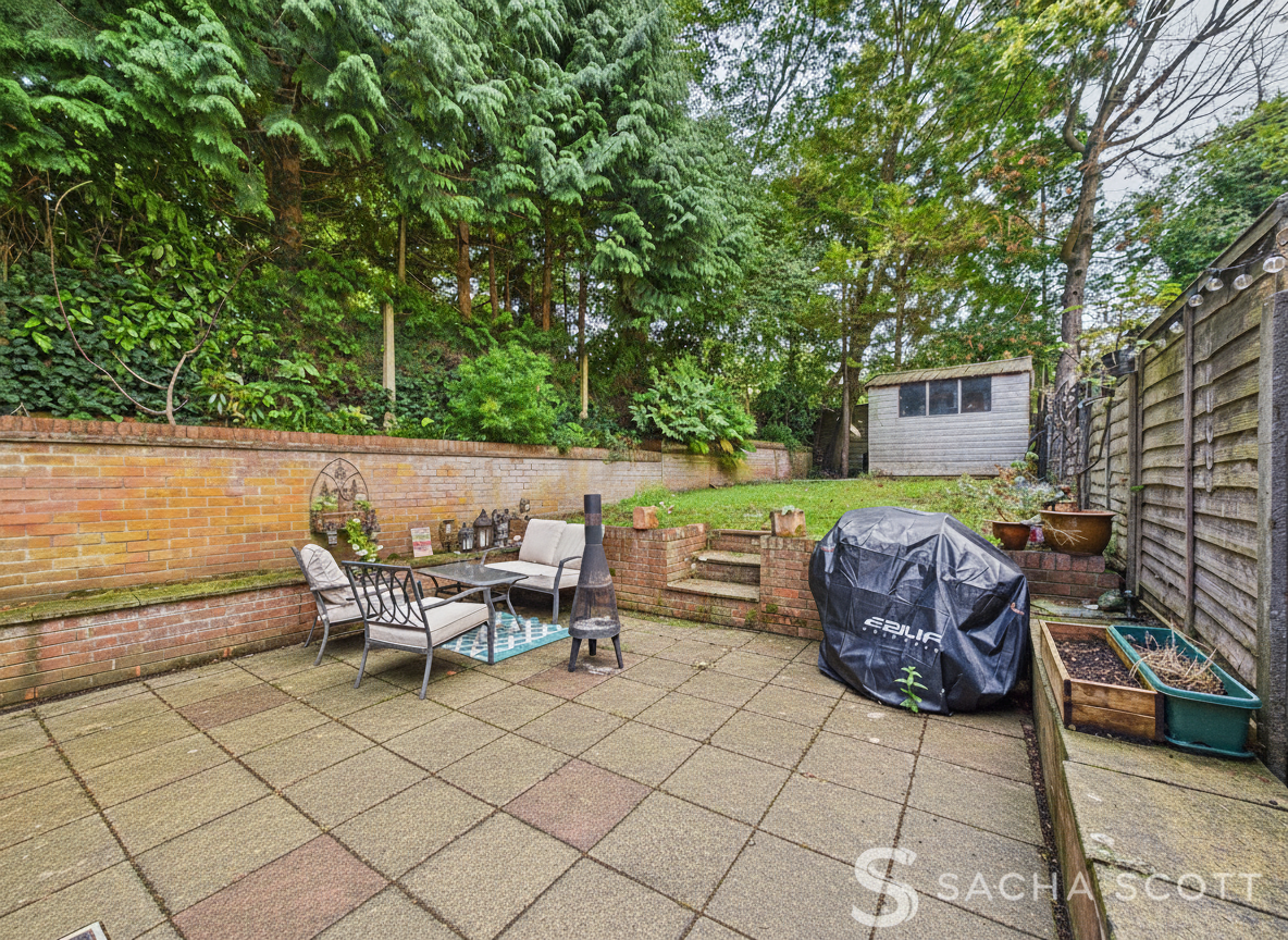 The westerly facing garden measures approximately 50ft x 15ft and comprises of a large patio area for entertaining, with a generous lawned area with shed.