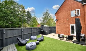 Upstairs, there are three well-proportioned bedrooms, with an ensuite to the master bedroom, and a three-piece family bathroom. Externally, there are two parking spaces to the side of the property, and a generous garden with artificial grass and decking that benefits from the sun.