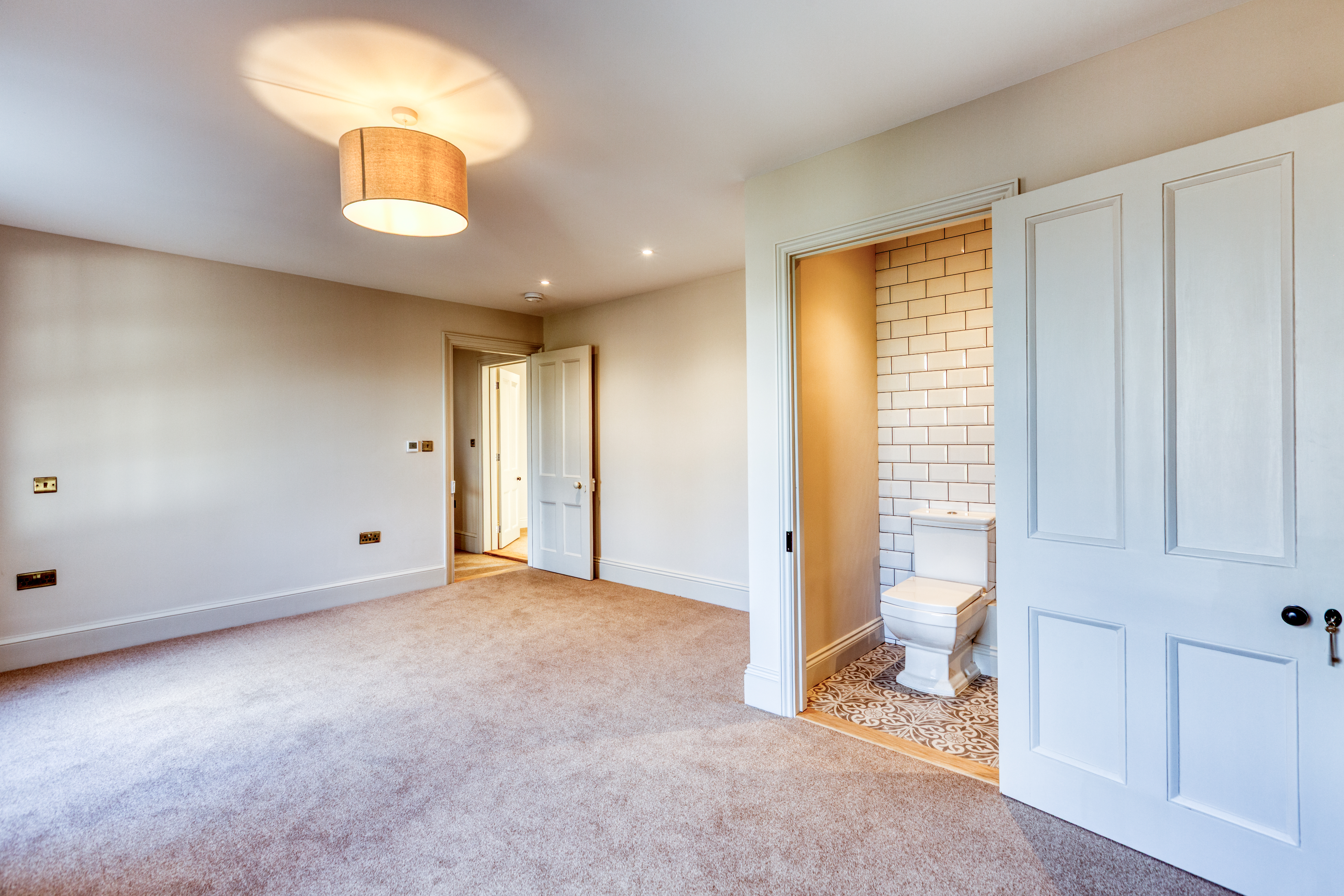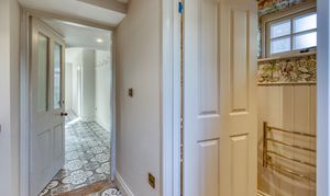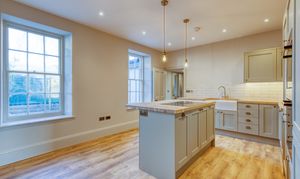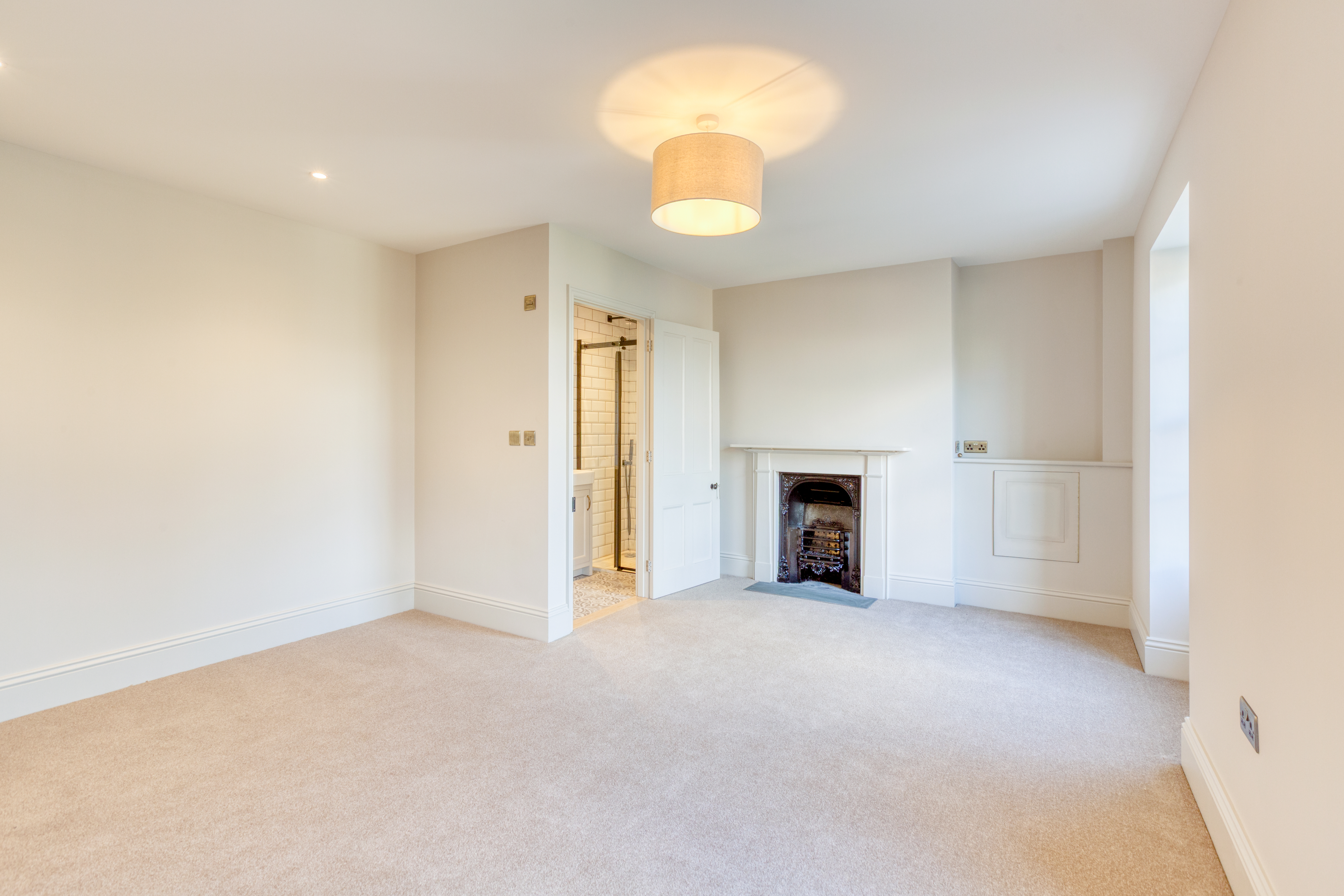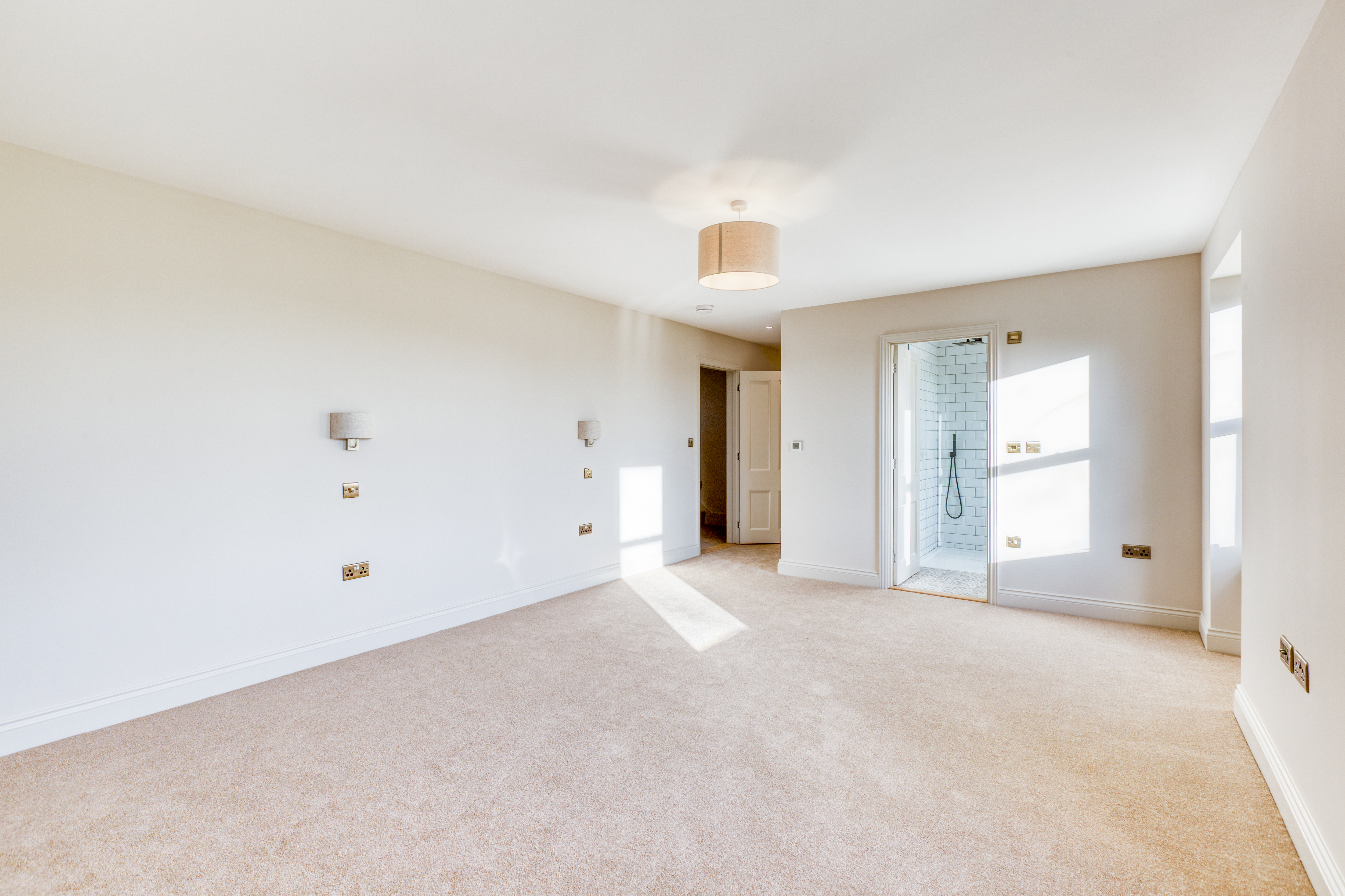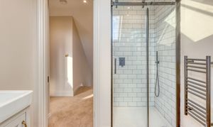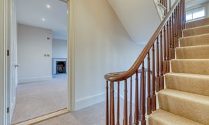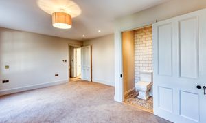 Upstairs, the impressive master suite enjoys far-reaching views over open fields dotted with grazing cows. It includes a generous dressing room and a luxurious bathroom with both bath and shower, designed to take full advantage of the countryside views. A very large second bedroom benefits from its own en-suite, while two further double bedrooms and a family bathroom with freestanding bath and separate shower complete the accommodation.