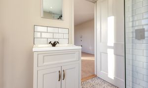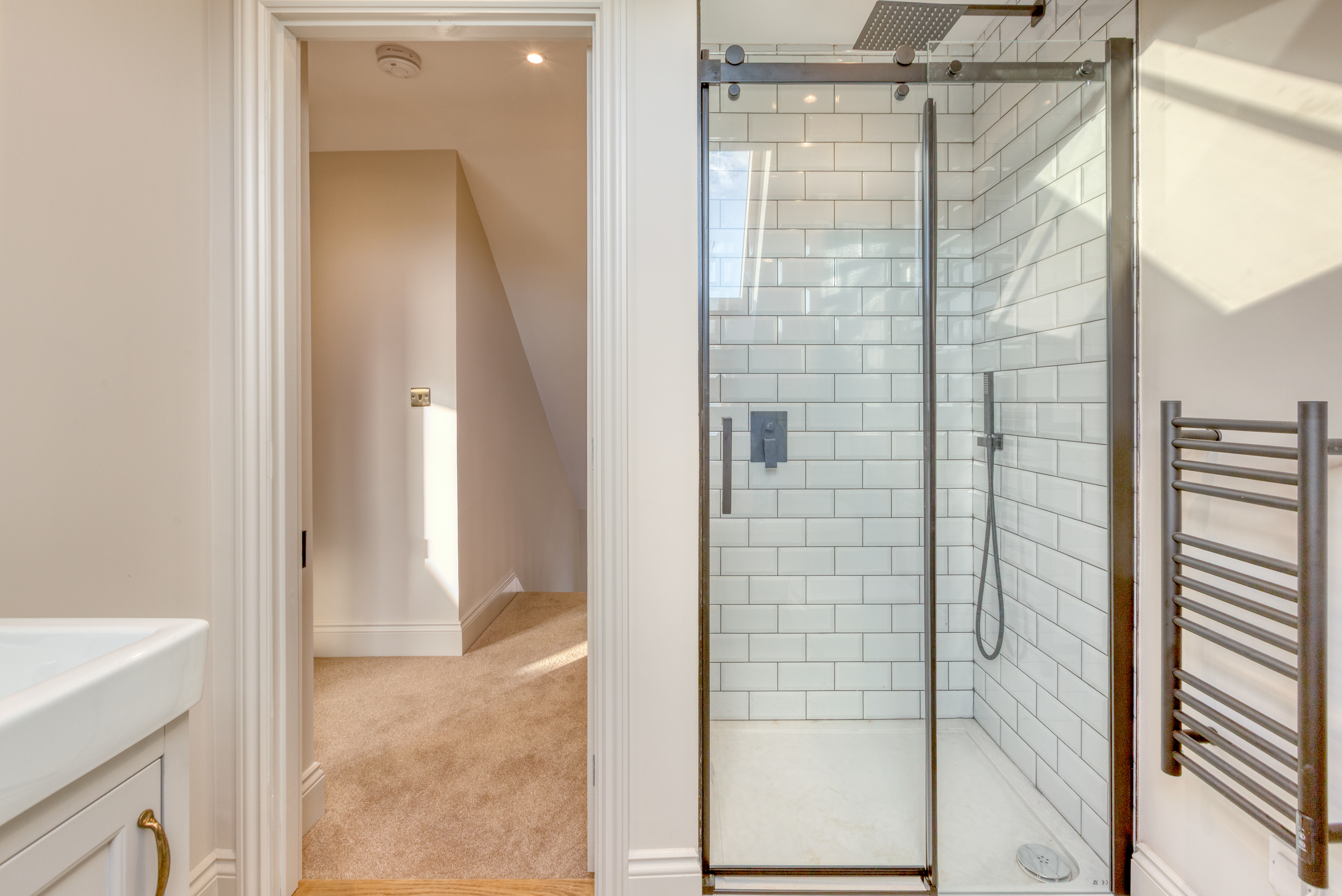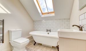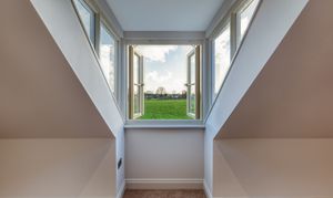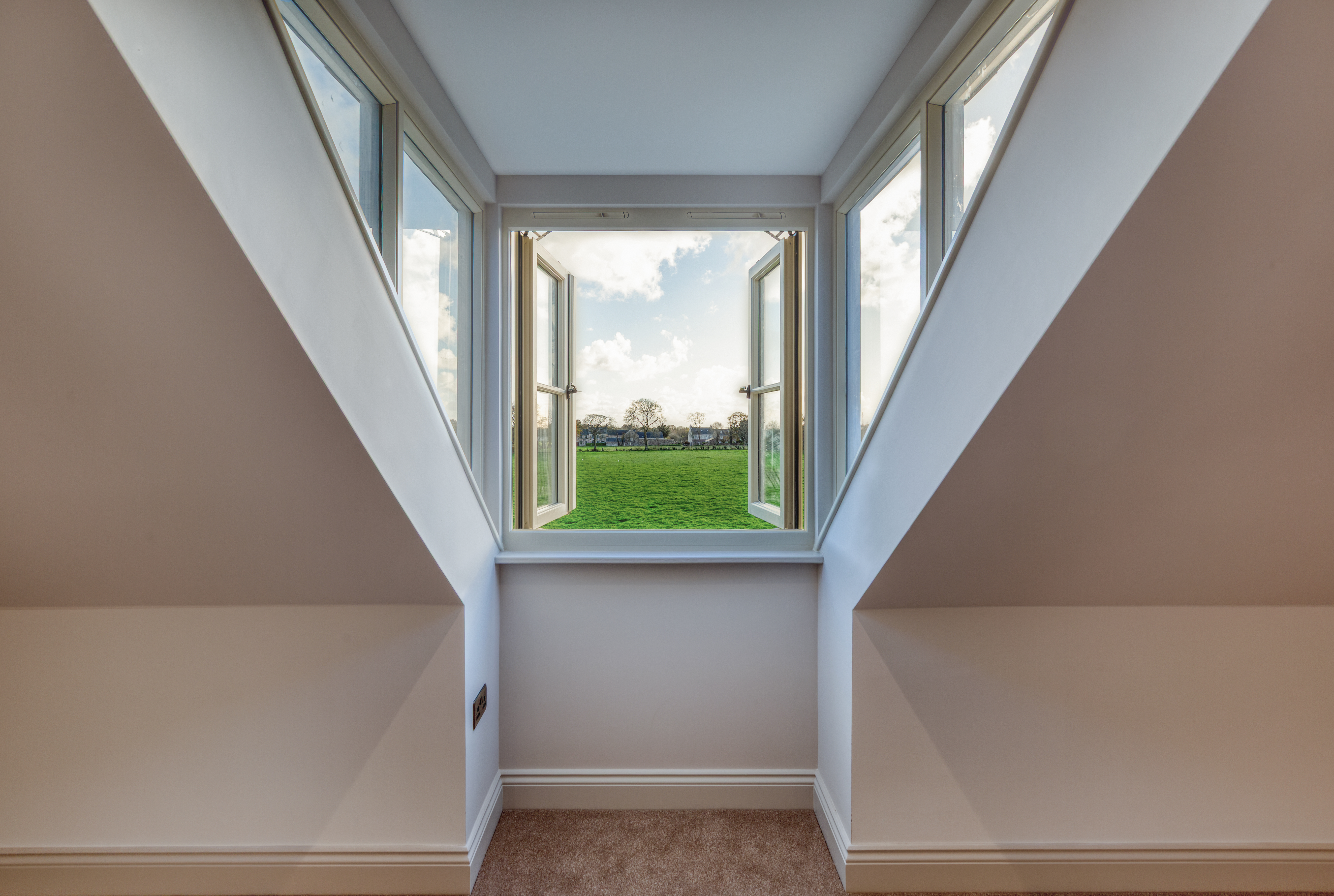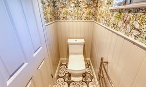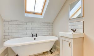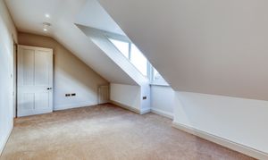 Upstairs, the impressive master suite enjoys far-reaching views over open fields dotted with grazing cows. It includes a generous dressing room and a luxurious bathroom with both bath and shower, designed to take full advantage of the countryside views. A very large second bedroom benefits from its own en-suite, while two further double bedrooms and a family bathroom with freestanding bath and separate shower complete the accommodation.