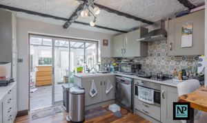 The property welcomes you through an inner porch into a central hallway, leading to a bright and inviting living room with a charming bay window that fills the space with natural light. To the rear, you’ll find a newly fitted kitchen, finished to a high standard with contemporary units and ample workspace—perfect for everyday living and entertaining. Adjacent to the kitchen is a useful utility room, providing additional storage and laundry space. The conservatory offers a versatile extra reception area, ideal as a dining space, home office, or a relaxing spot overlooking the garden.