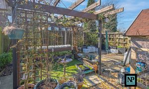 Externally, the property boasts a generously sized rear garden, ideal for outdoor enjoyment, featuring a combination of paved patio areas, a pond, and a gravelled section for low-maintenance use. A detached garage provides additional storage space. To the front, the property offers off-road parking via a gravelled driveway, complemented by attractive shrub borders.