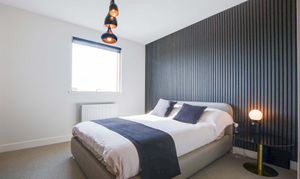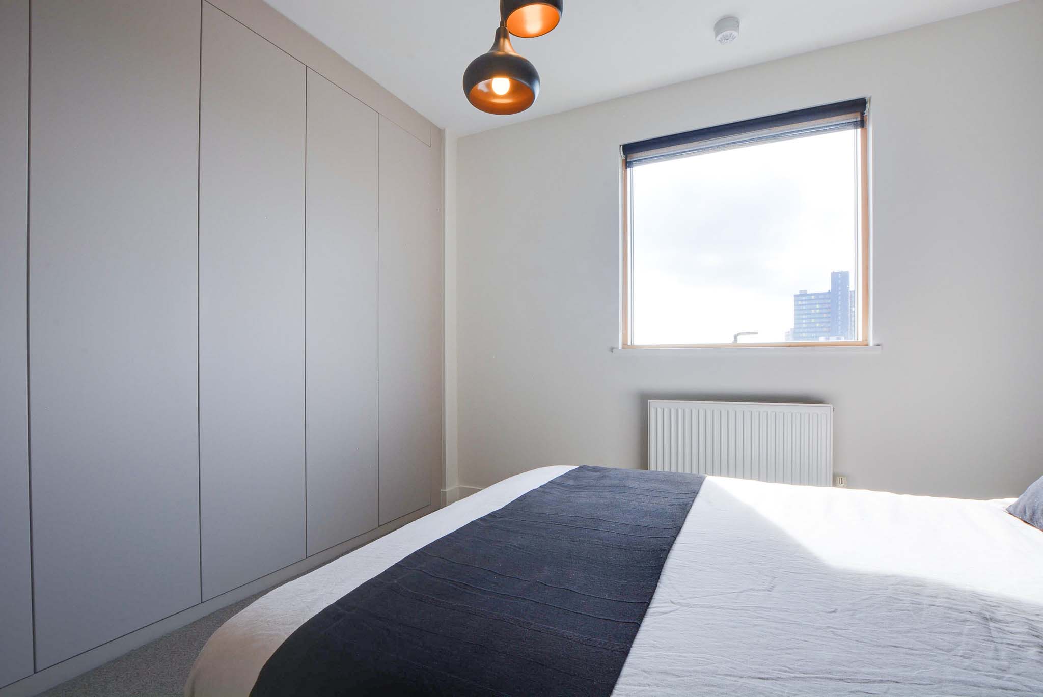 With Velfac double glazed window, bespoke Sharps built in wardrobes, Acupanel feature walls, TV point, radiator.