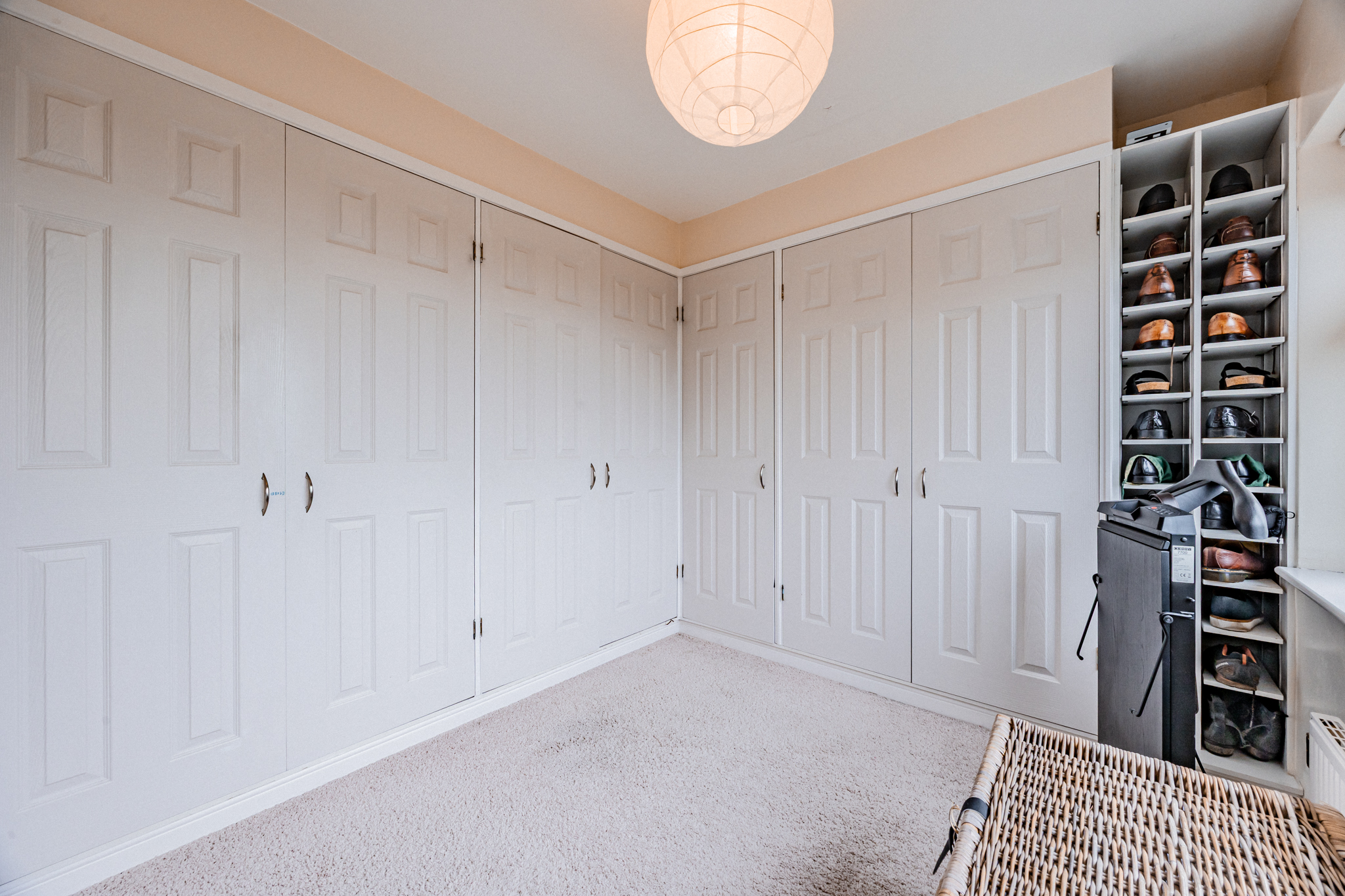The property is set within extensive and beautifully maintained gardens, which are undoubtedly one of its most captivating features. To the front, a sweeping driveway provides ample parking and turning space for several vehicles, complemented by an electric vehicle charging point. The lawn is framed by mature, well-tended flower beds and illuminated pathways, creating a picturesque setting that is particularly enchanting in the evening light. In autumn, the garden is transformed by the rich hues of silver birch and acer trees. Previously, planning permission was granted for a double garage at the foot of the garden, although this was not required by the current owners. A useful shed sits to the side of the property, alongside access to the rear gardens, where an abundance of seasonal blackberries can be enjoyed.