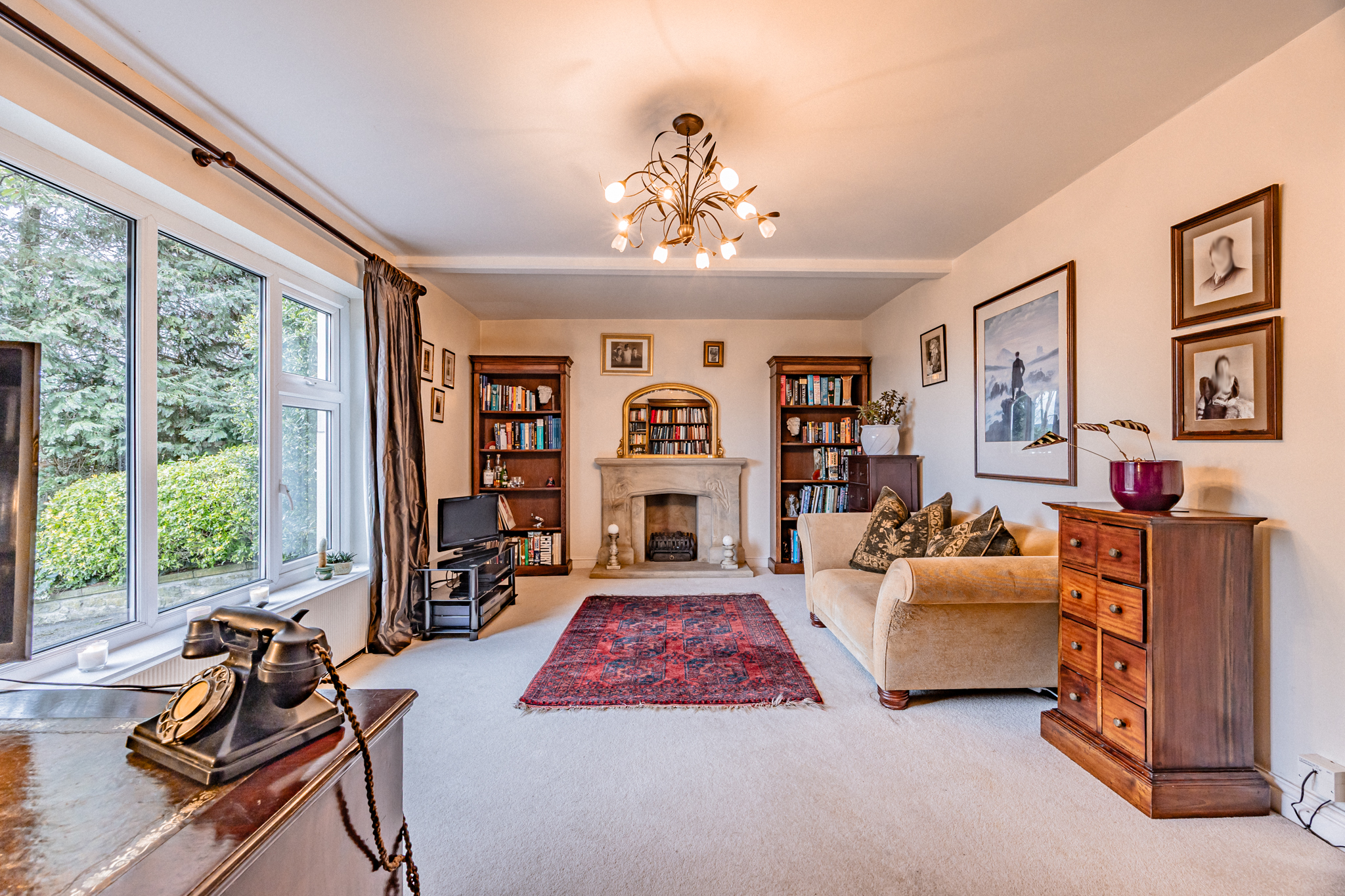 Originally built in the 1920s as a gamekeeper’s lodge for Lyme Park, the house has been significantly extended to create a substantial and versatile modern home. The exterior combines attractive brickwork with elegant limestone quoins, enhancing both the front and rear elevations. An impressive entrance with limestone colonnades leads into a welcoming porch and through to a spacious central hallway, where rear-facing windows immediately frame views of the surrounding woodland. From here, access is provided to multiple reception rooms, as well as the kitchen and dining areas, creating a well-balanced and highly functional layout.