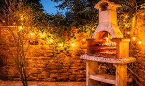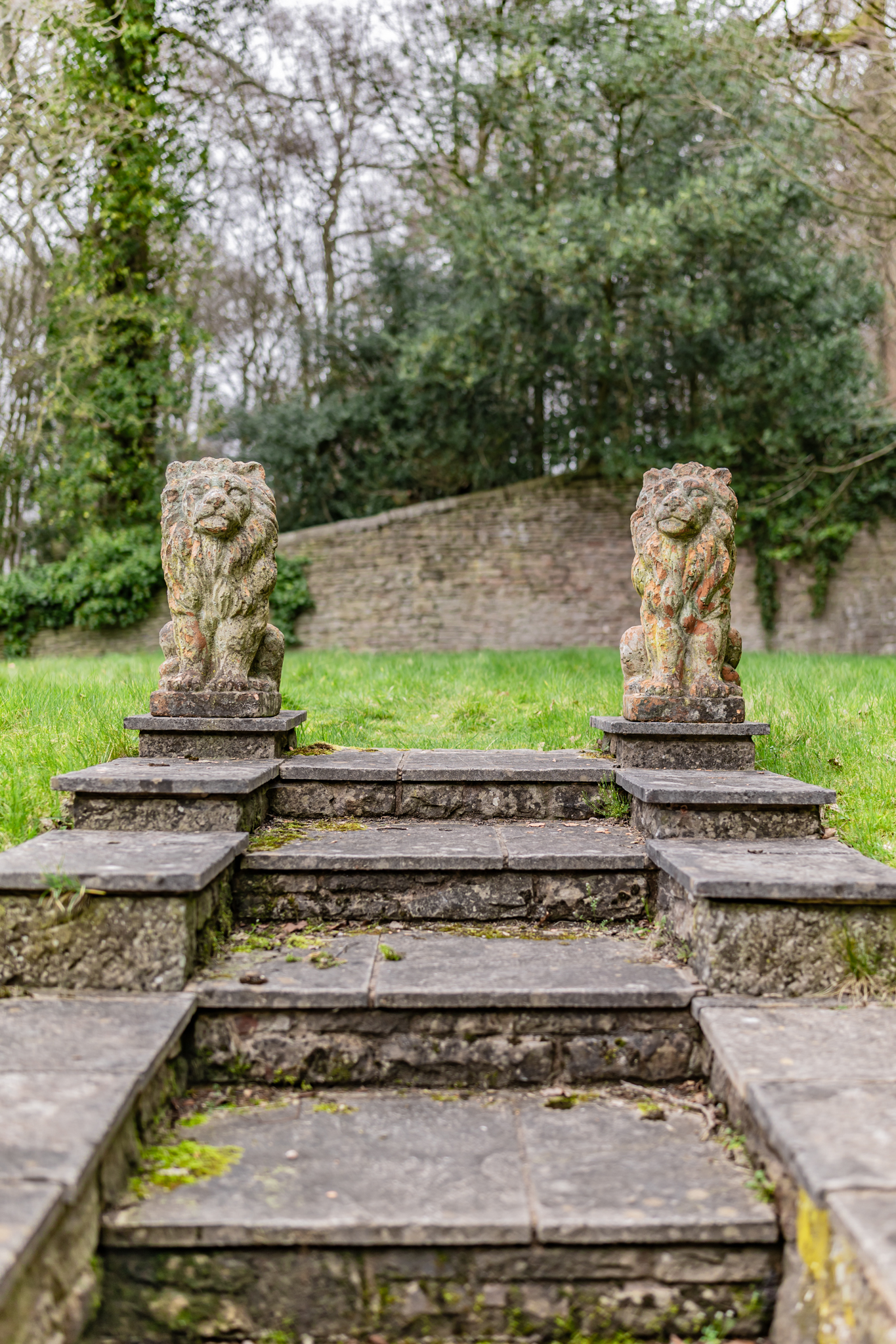 The rear gardens are equally impressive, arranged across two levels with expansive lawns at both the house level and an elevated position beyond the terrace. Enclosed by a high limestone wall and bordered by deciduous woodland, the setting is wonderfully private and not overlooked, save for the rich variety of wildlife that frequents the grounds. Birdlife is abundant, with regular sightings of long-tailed and coal tits, goldcrests, nuthatches, jays and tawny owls, while the ponds come alive each spring with frogspawn and newts. The gardens provide a true sense of seclusion, occasionally enhanced by visits from red deer or sparrowhawks from the surrounding woodland. A particular highlight is the beautifully enclosed walled terrace, a superb suntrap enjoying sunshine throughout the day. Overlooked by an elegant granite water feature, this space is perfectly designed for outdoor living and entertaining, complete with three conveniently placed electric points.