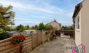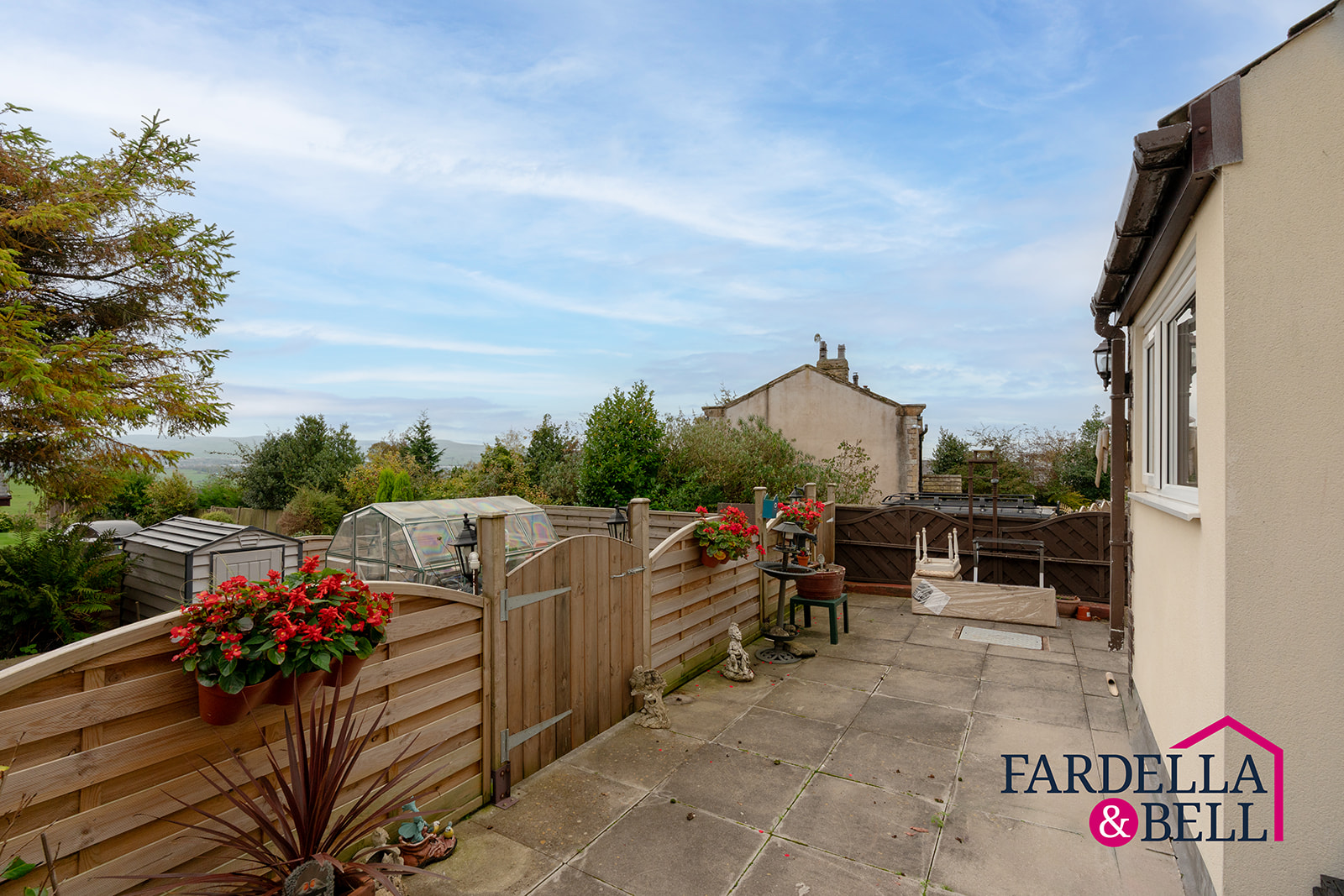 Two level garden - Stepping out of the patio doors to the rear you have a paved area with space for seating, which has views over the countryside in the distance. This srea is sectioned off by a fence. Lower level - Accessed via stone steps down, Large pond, space for a greenhouse and shed, patio area and mature bushes and shrubs.