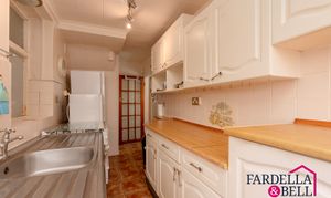 This attractive three-bedroom semi-detached house offers spacious and versatile living, ideal for those seeking comfort and practicality. It would be ideal for someone looking to put their own stamp on something. The welcoming entrance, highlighted by a charming stained glass front door and wooden flooring, leads into a bright open-plan reception area. Wooden flooring flows throughout the living rooms and large windows and French doors allow natural light to fill the living spaces, seamlessly connecting the indoors to a generous patio and private garden. The kitchen although requiring some renovations, features ample countertop space, built-in cabinetry, and a gas stove, making it functional for every-day living and entertaining.