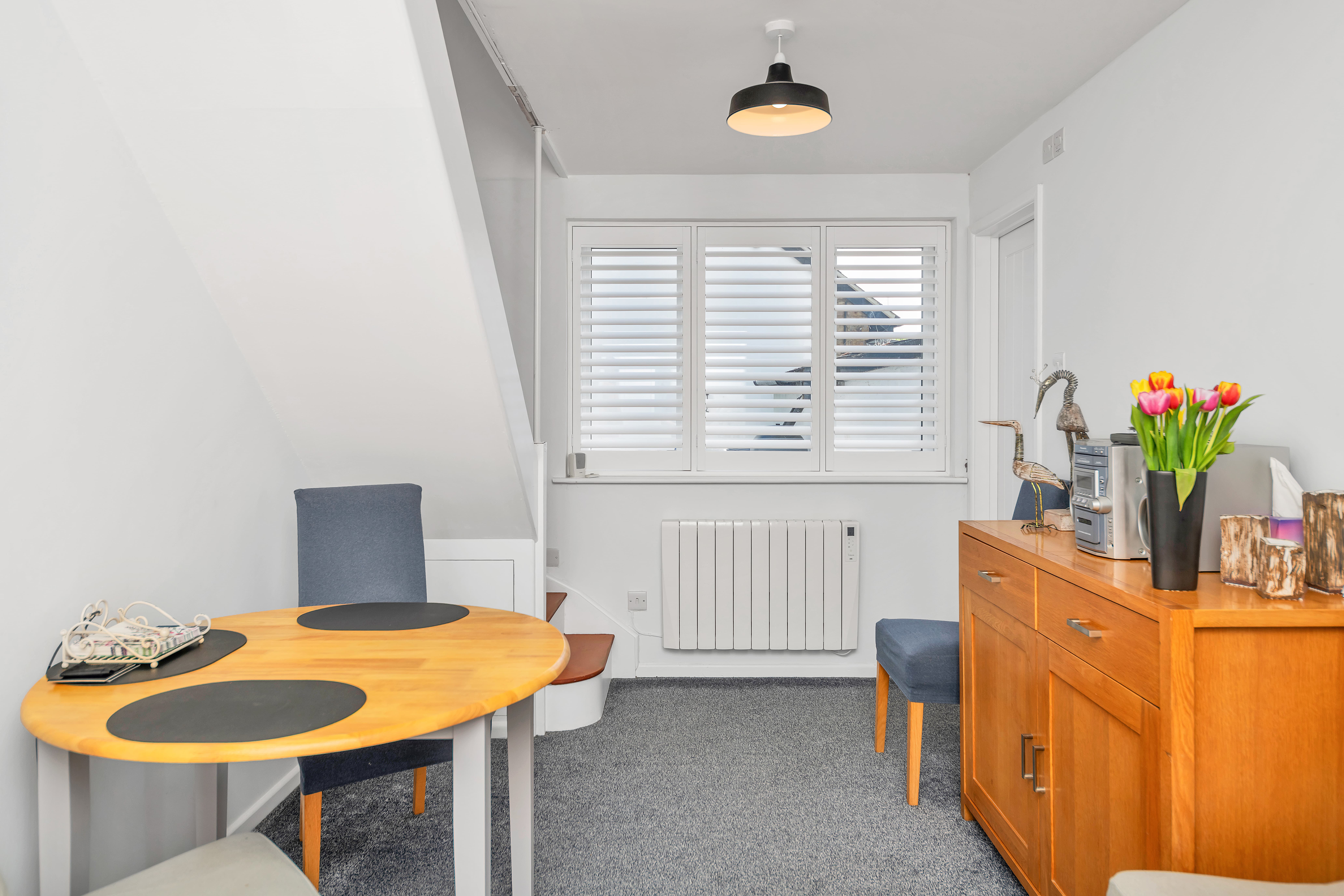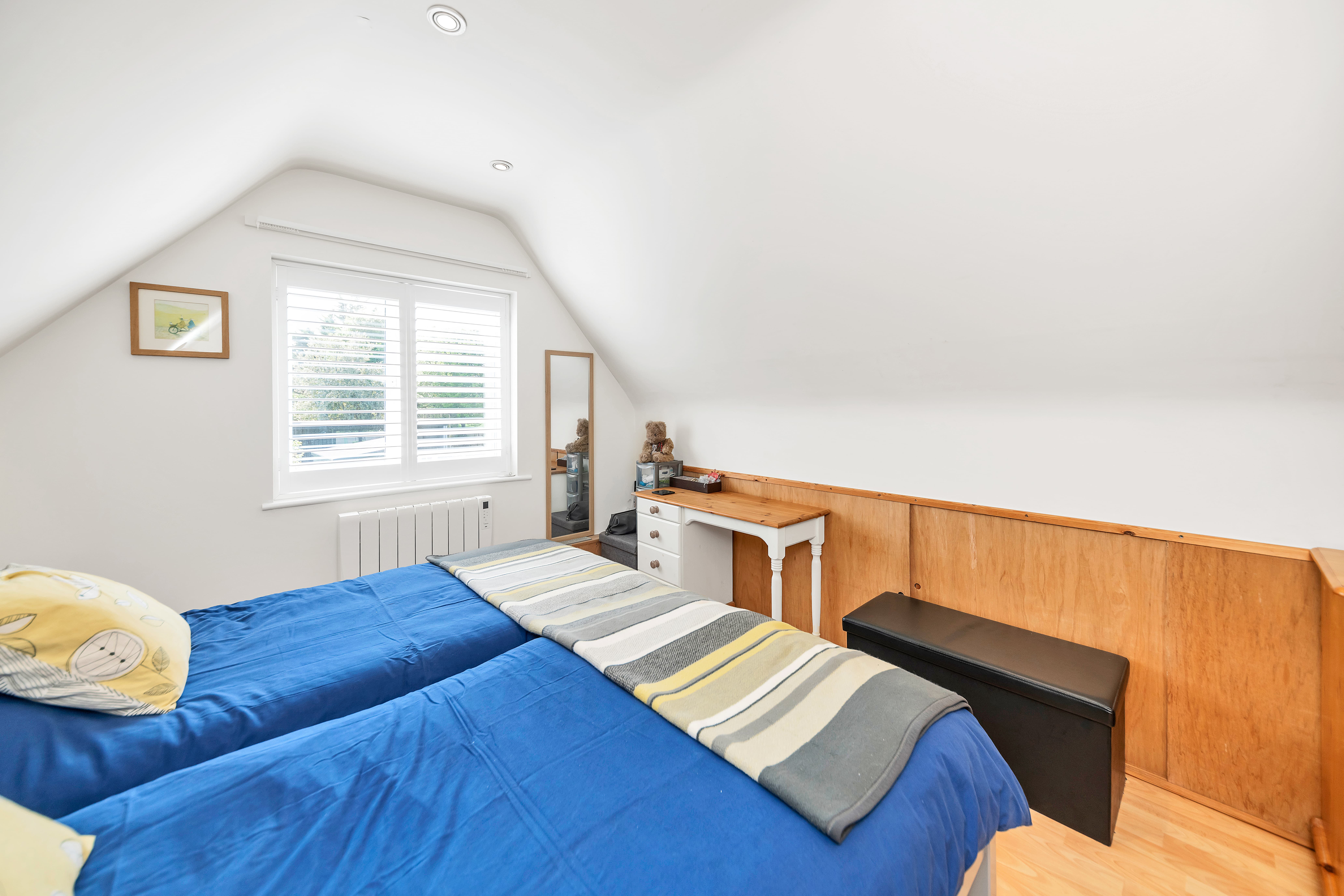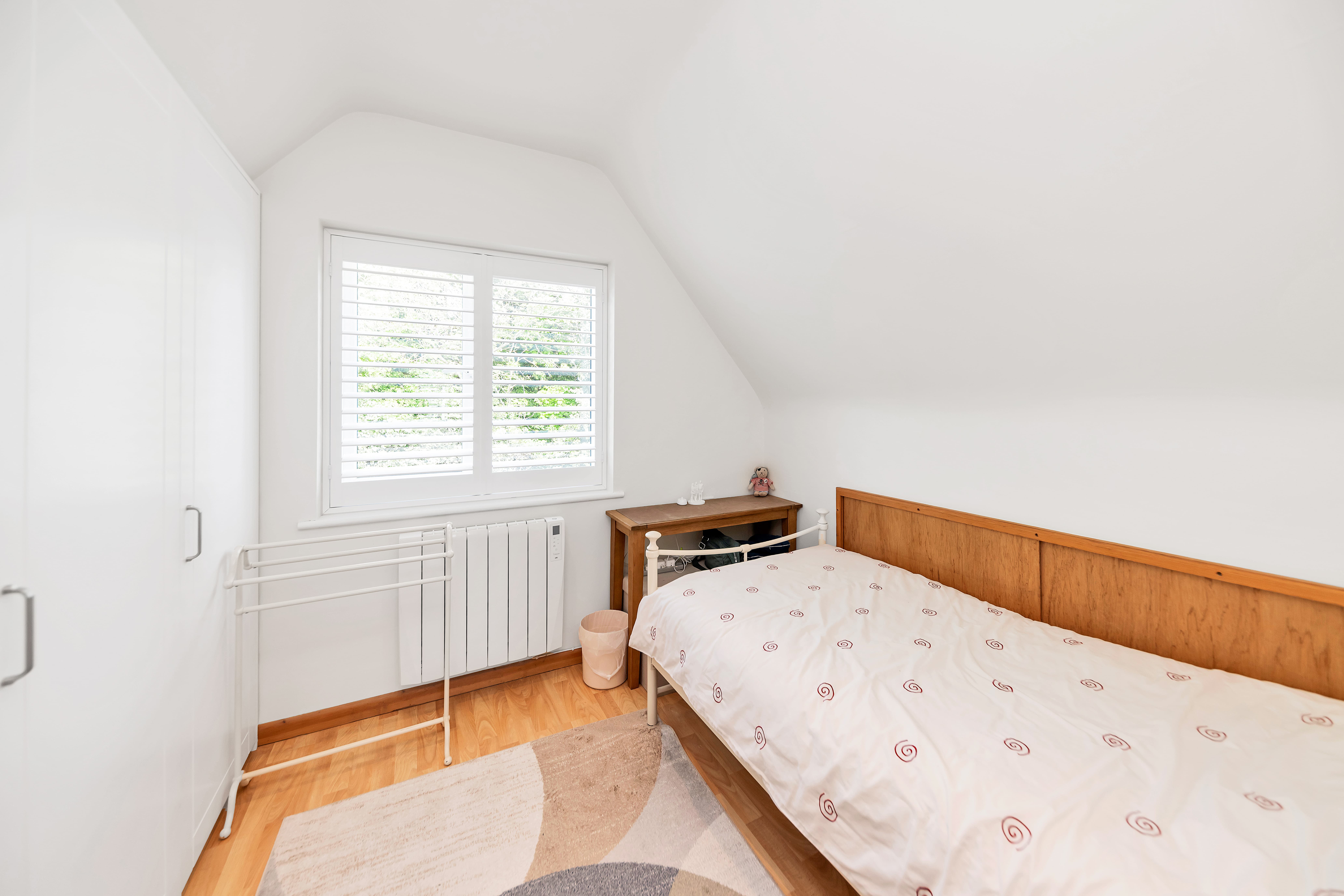 Upstairs to the first floor, this lovely home continues to impress, with 2 well-proportioned bedrooms and excellent eaves and integrated storage.