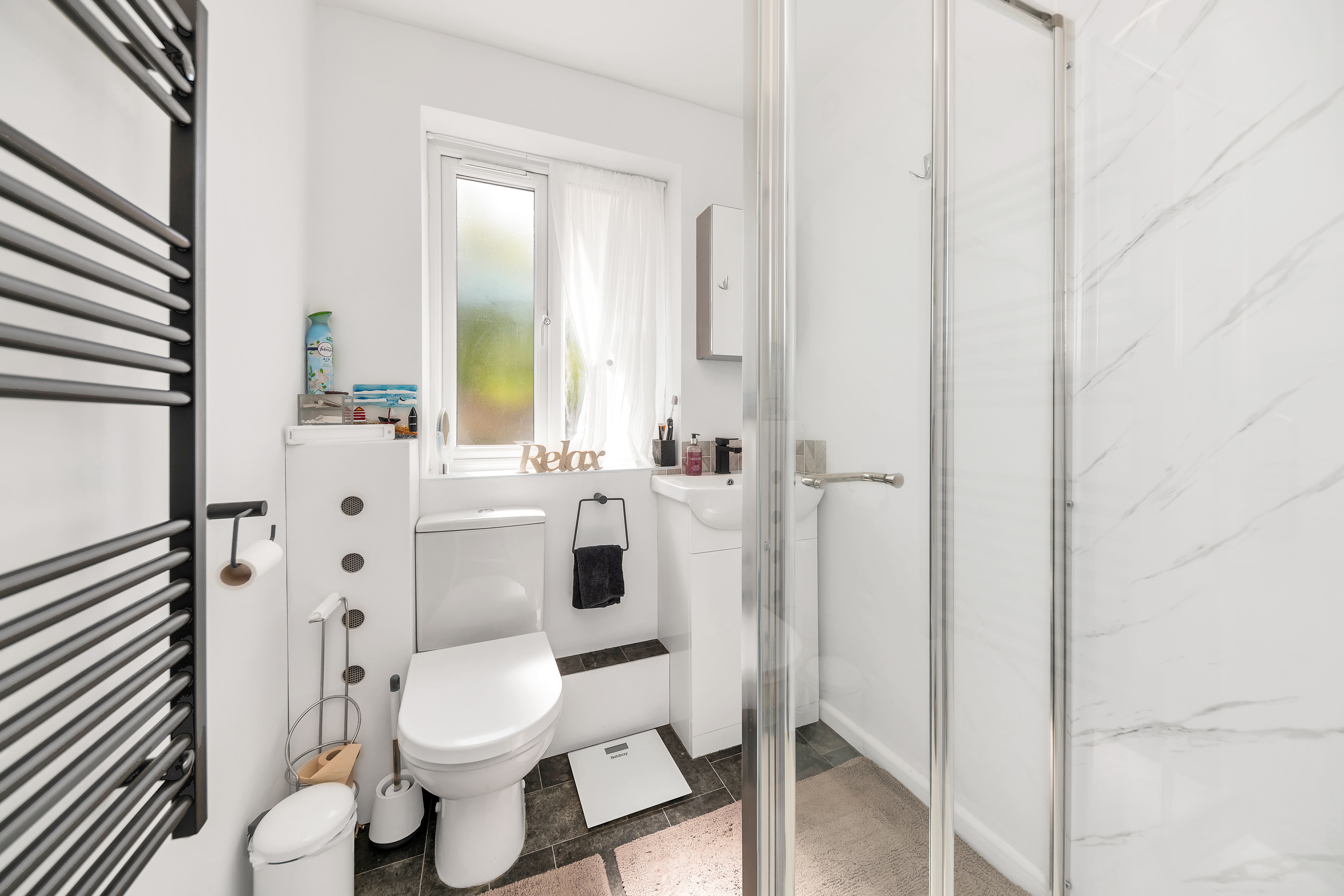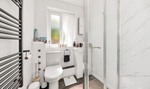The family bathroom can also be found on the ground floor and benefits from a shower, a WC, a heated towel rail and a hand wash basin.