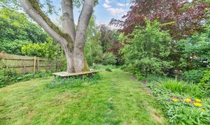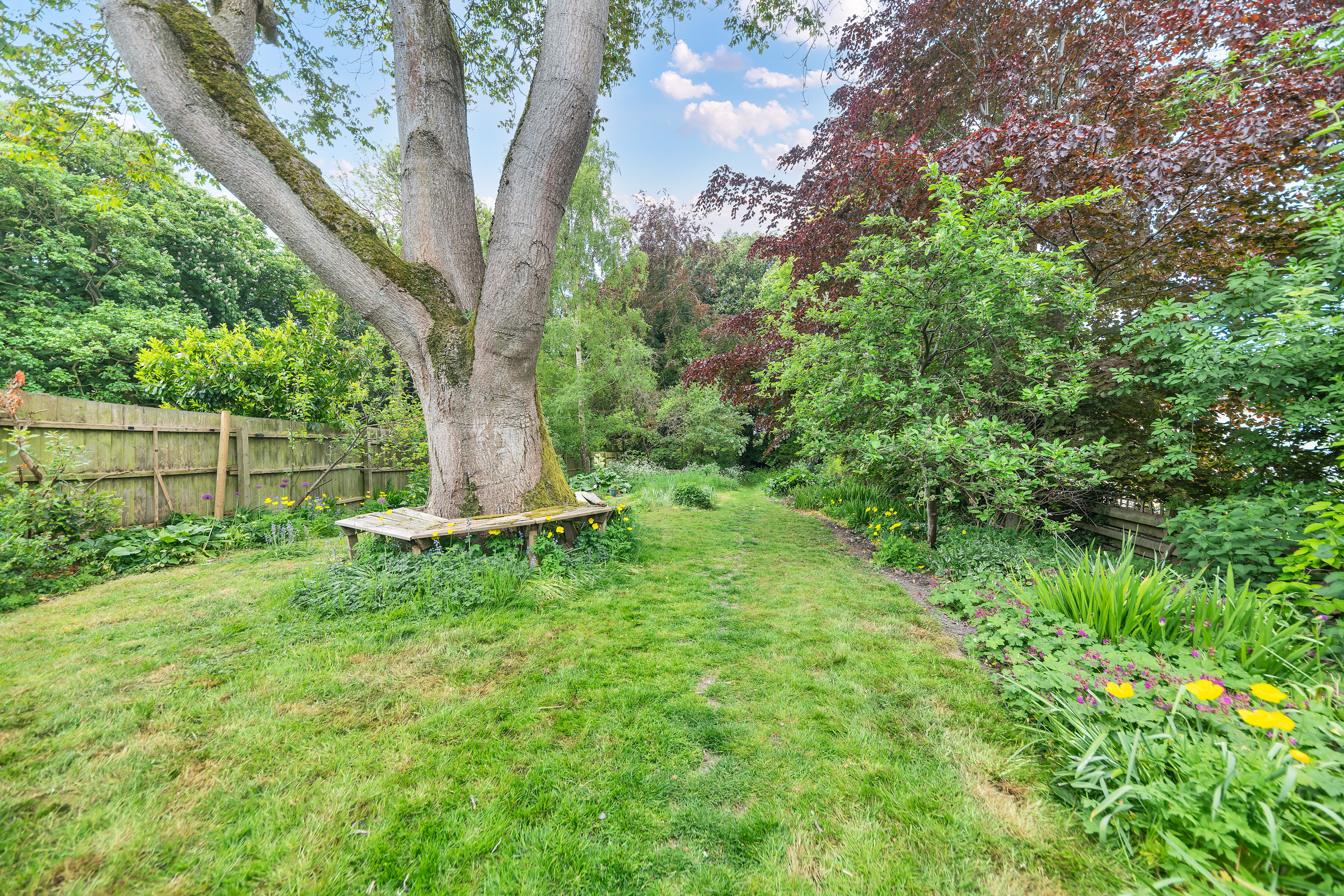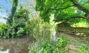 Outside, to the rear, the extensive gardens are incredibly beautiful and versatile, fully enclosed by fencing, backing onto a pretty mill stream, and offering multiple areas of interest or places to sit and nature. The main garden is laid mainly to lawn, with a large patio space providing room for garden furniture, cooking meals al fresco and entertaining guests. There are stunning borders of established plants, trees, flowers and shrubs, including fruit trees and shrubs, access to various sheds and a greenhouse, and plenty of scope for new owners to put their own stamp on things.