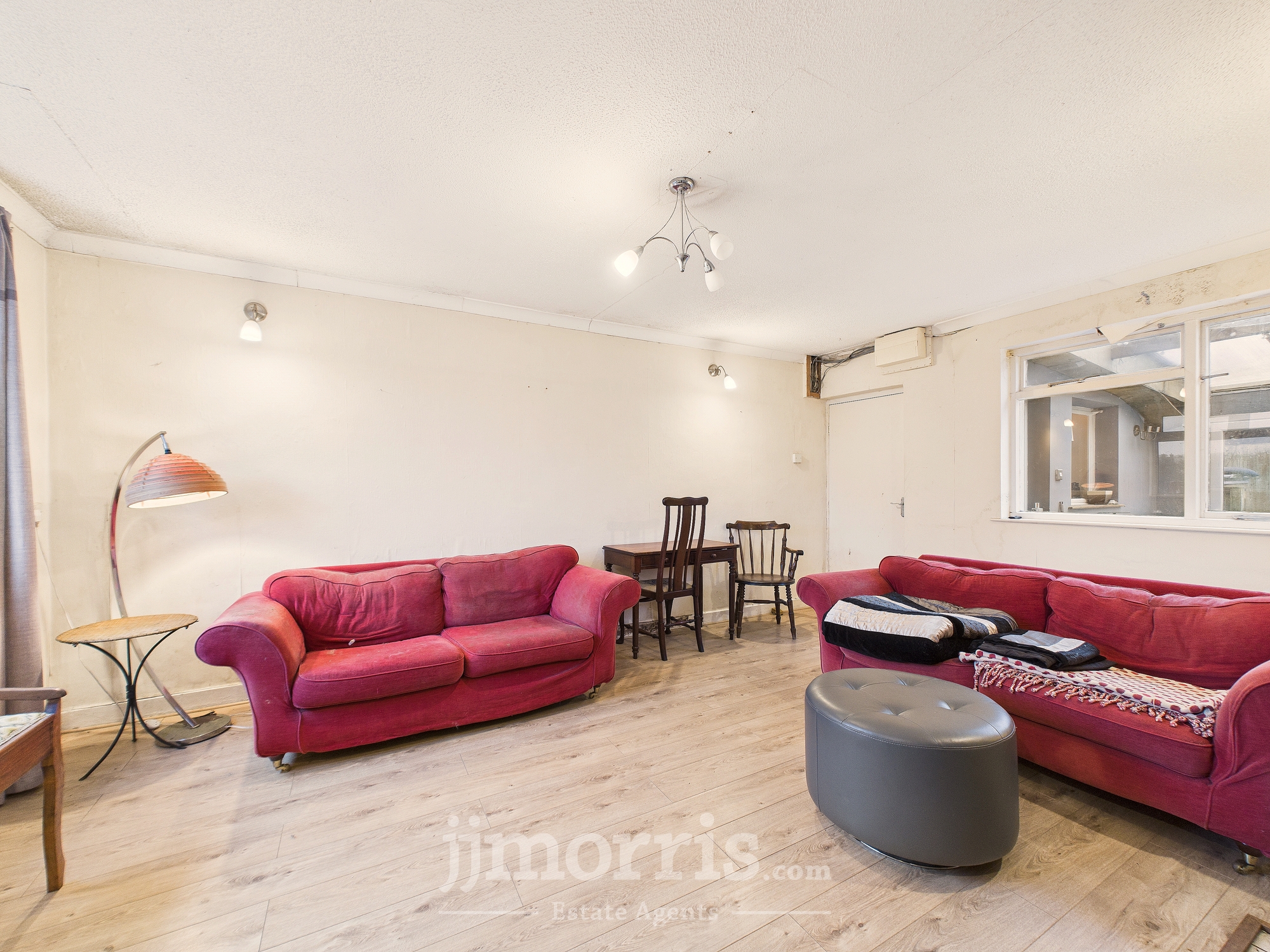 With a laminate wood floor, single glazed window to Utility Room, radiator, cove and artex ceiling, ceiling light and 2 power points.