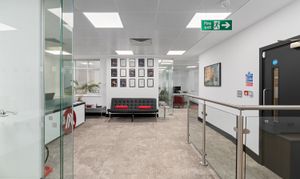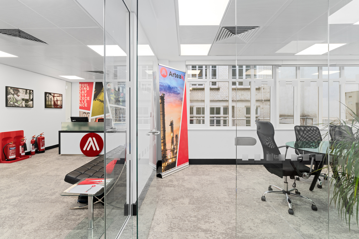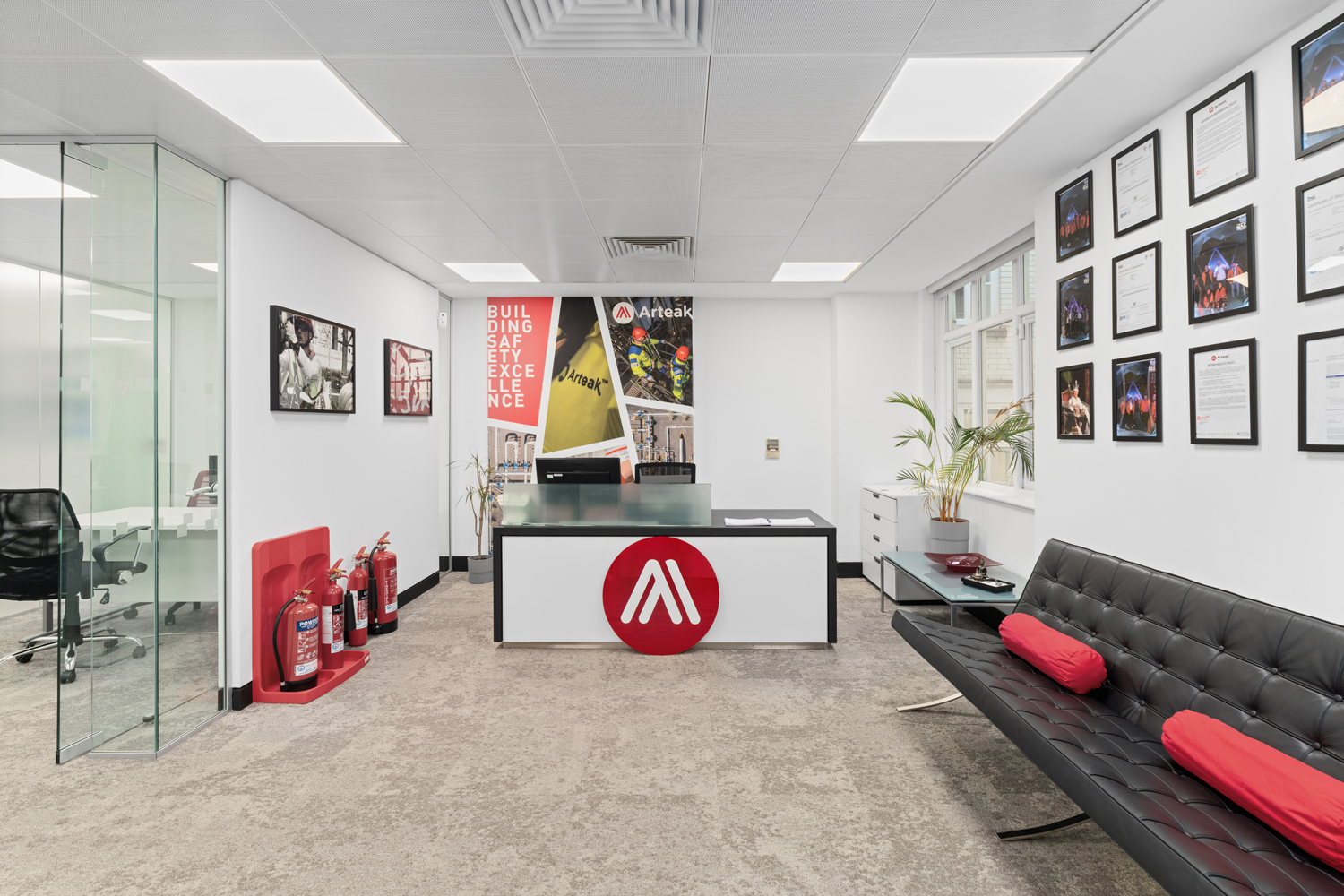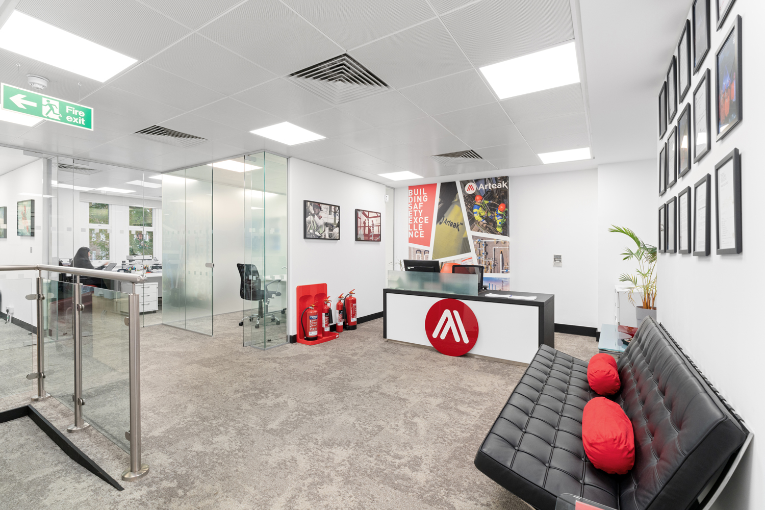 The building benefits from a professional reception area and secure access, creating an impressive arrival experience for both staff and clients.