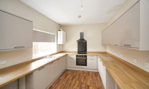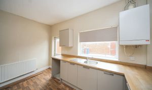 The property briefly comprises a small entrance vestibule leading into a good-sized lounge, followed by a large kitchen with plenty of space for dining and potential for updating. Upstairs, there are two generously sized bedrooms and a family bathroom, which also requires modernisation.