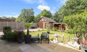 Upstairs are three true double bedrooms. The superb, dual-aspect principal suite runs the full depth of the house and includes extensive fitted wardrobes with an integrated dressing area plus a sleek en-suite. Bedroom two is a generous double with fitted wardrobes; bedroom three is also a double, currently used as a home office, served by a modern family bathroom. Sitting on a large plot, the home offers scope to extend or add an orangery/conservatory (subject to planning).