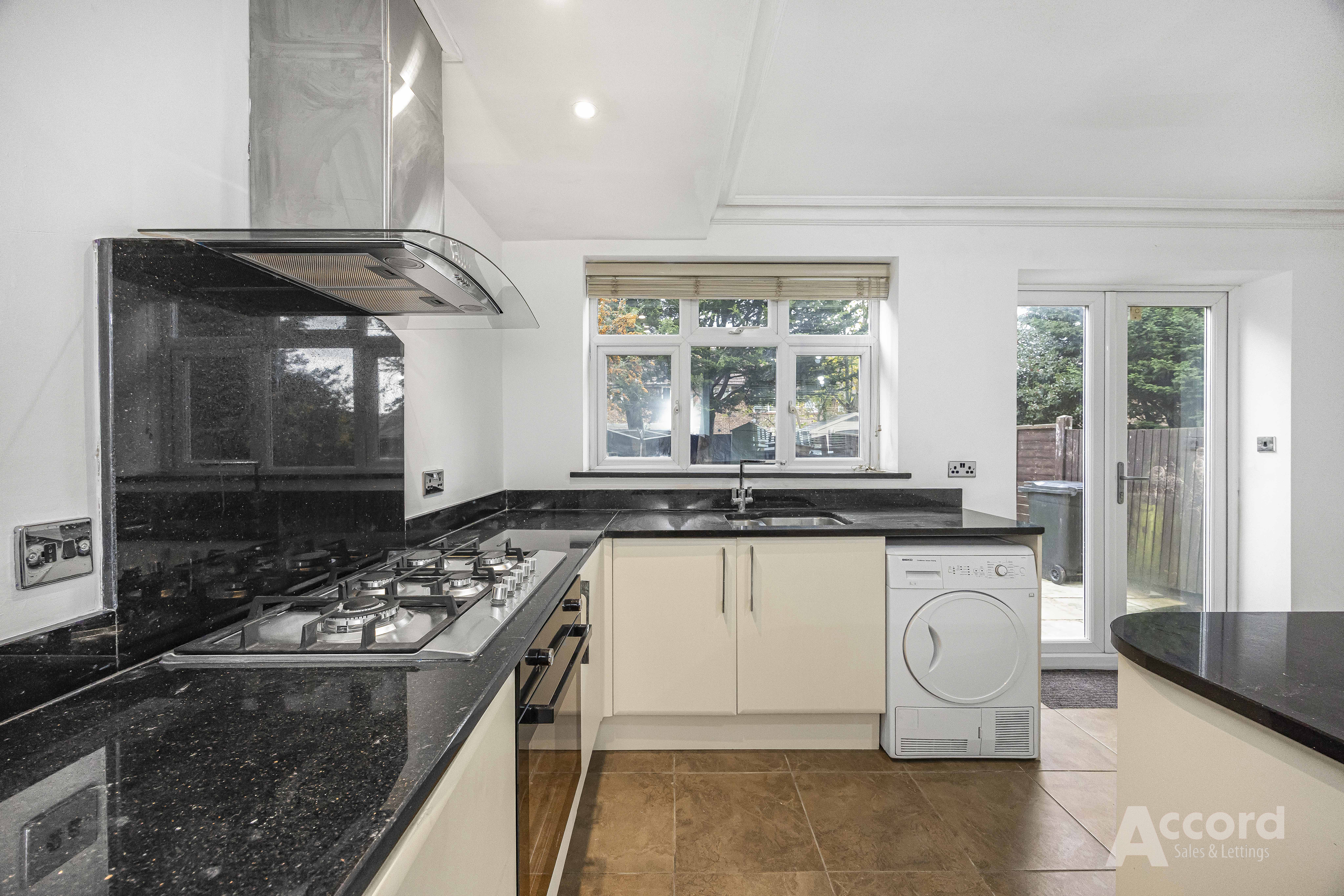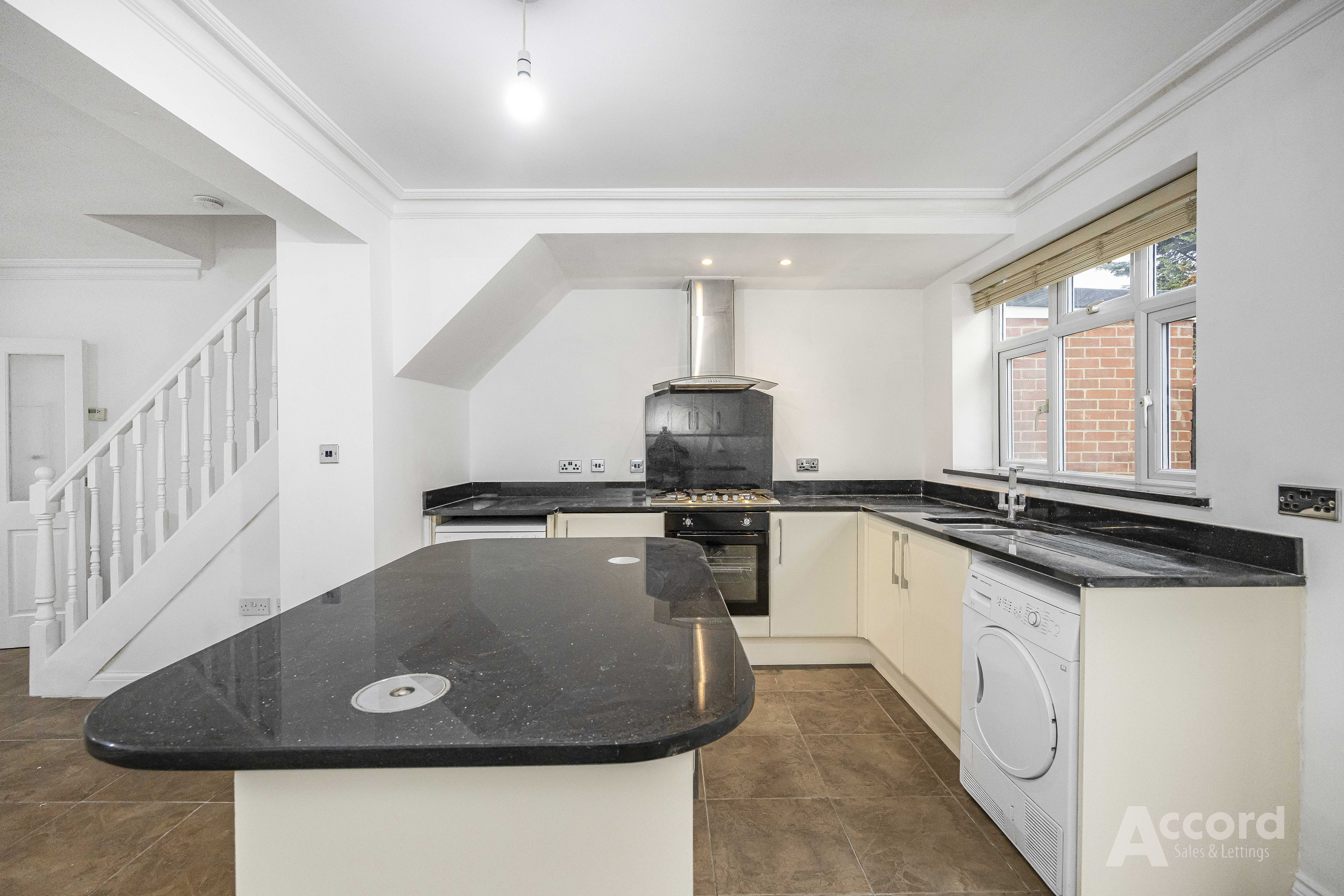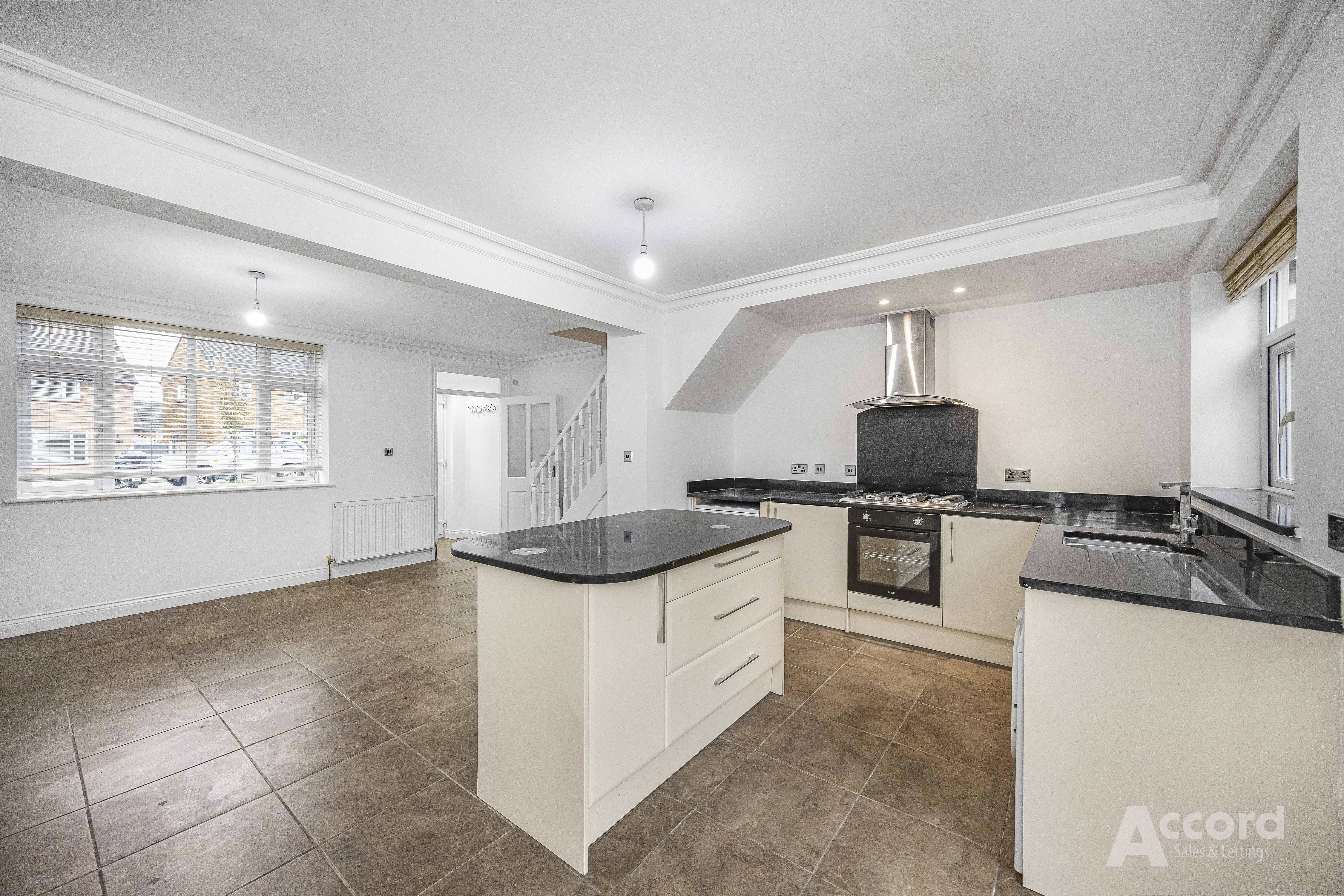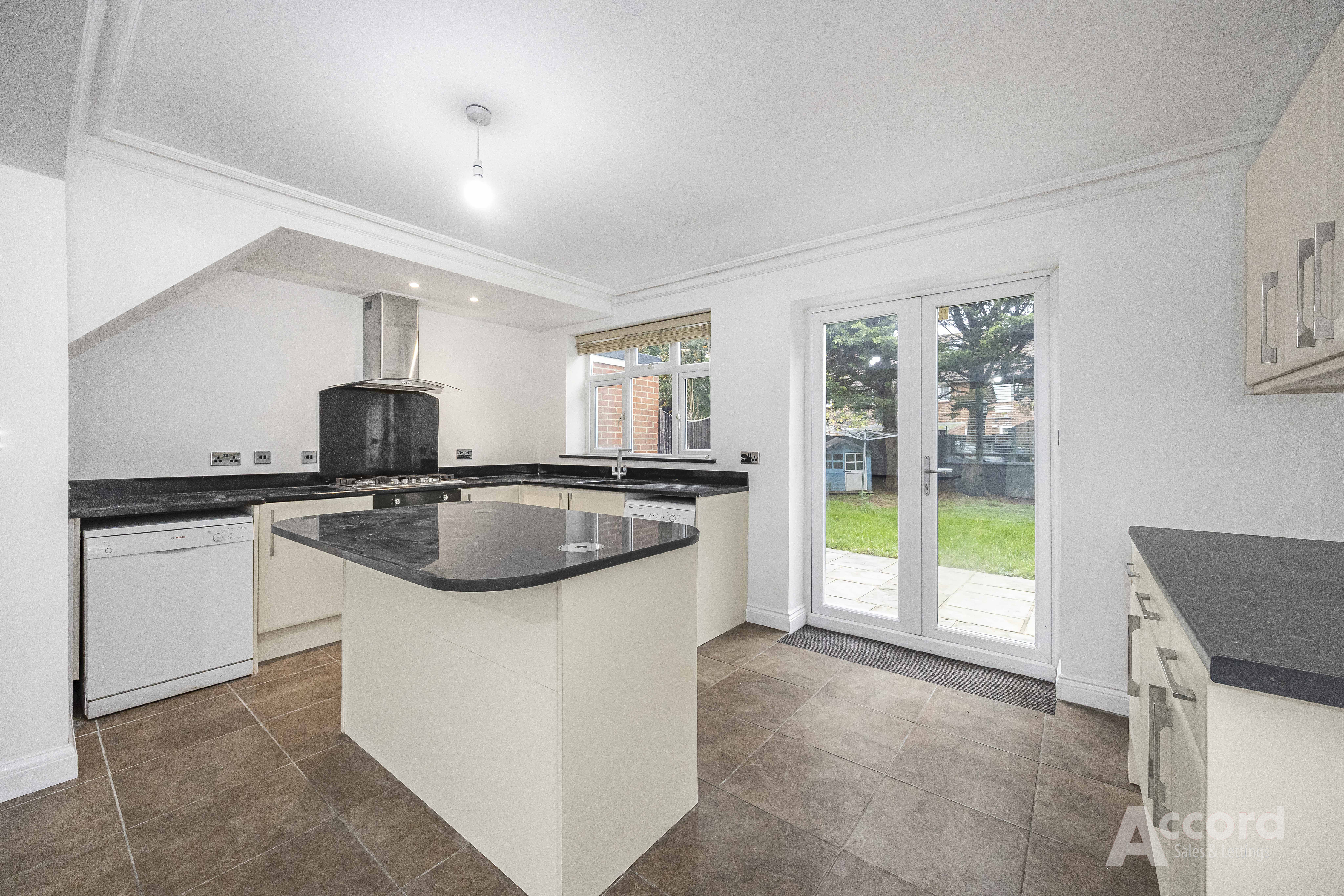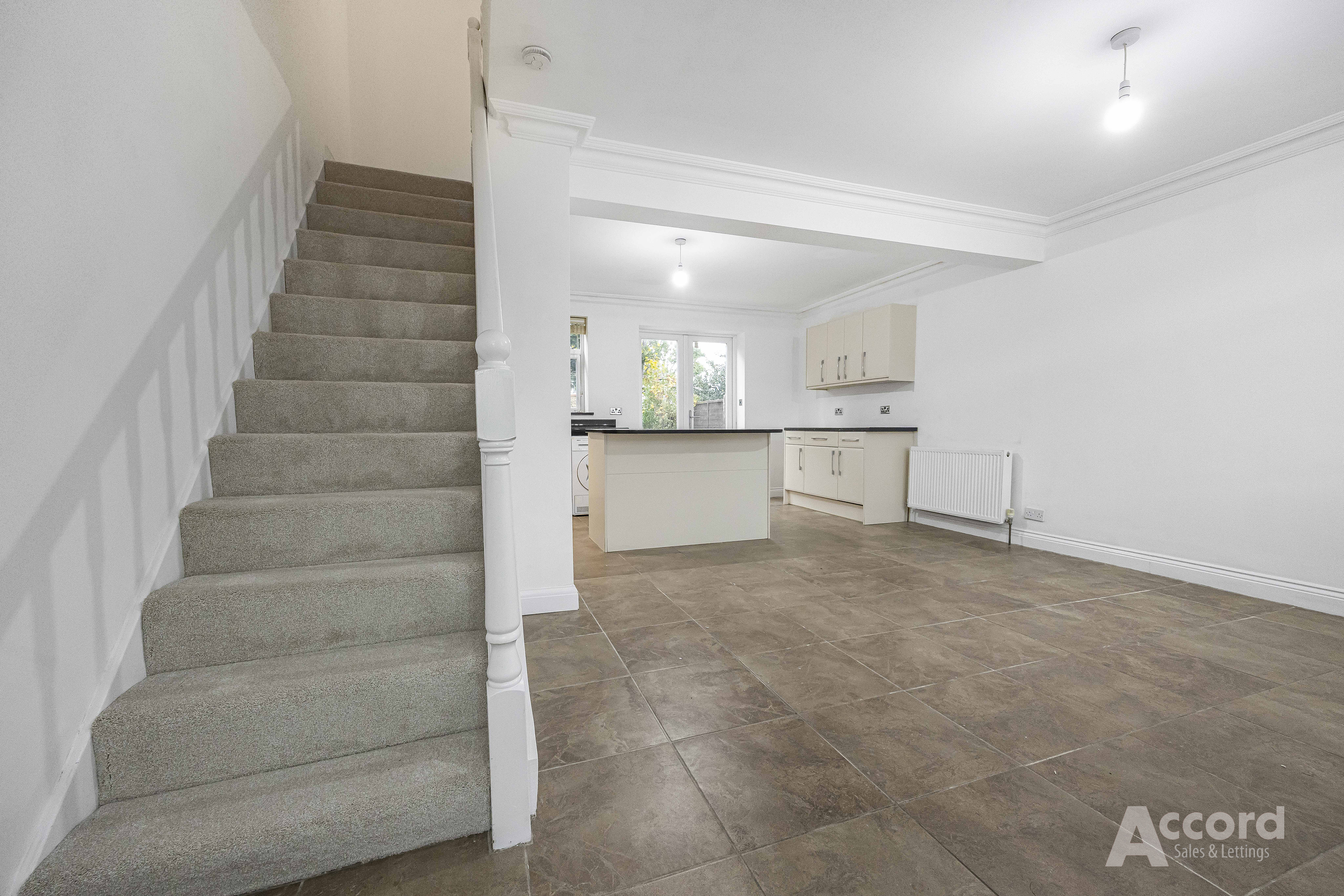 The ground floor offers a bright, open-plan reception space leading into a well-fitted kitchen with generous storage, integrated oven and hob, and French doors opening onto the garden. Upstairs, you’ll find three proper bedrooms and a spacious, modern family bathroom.
