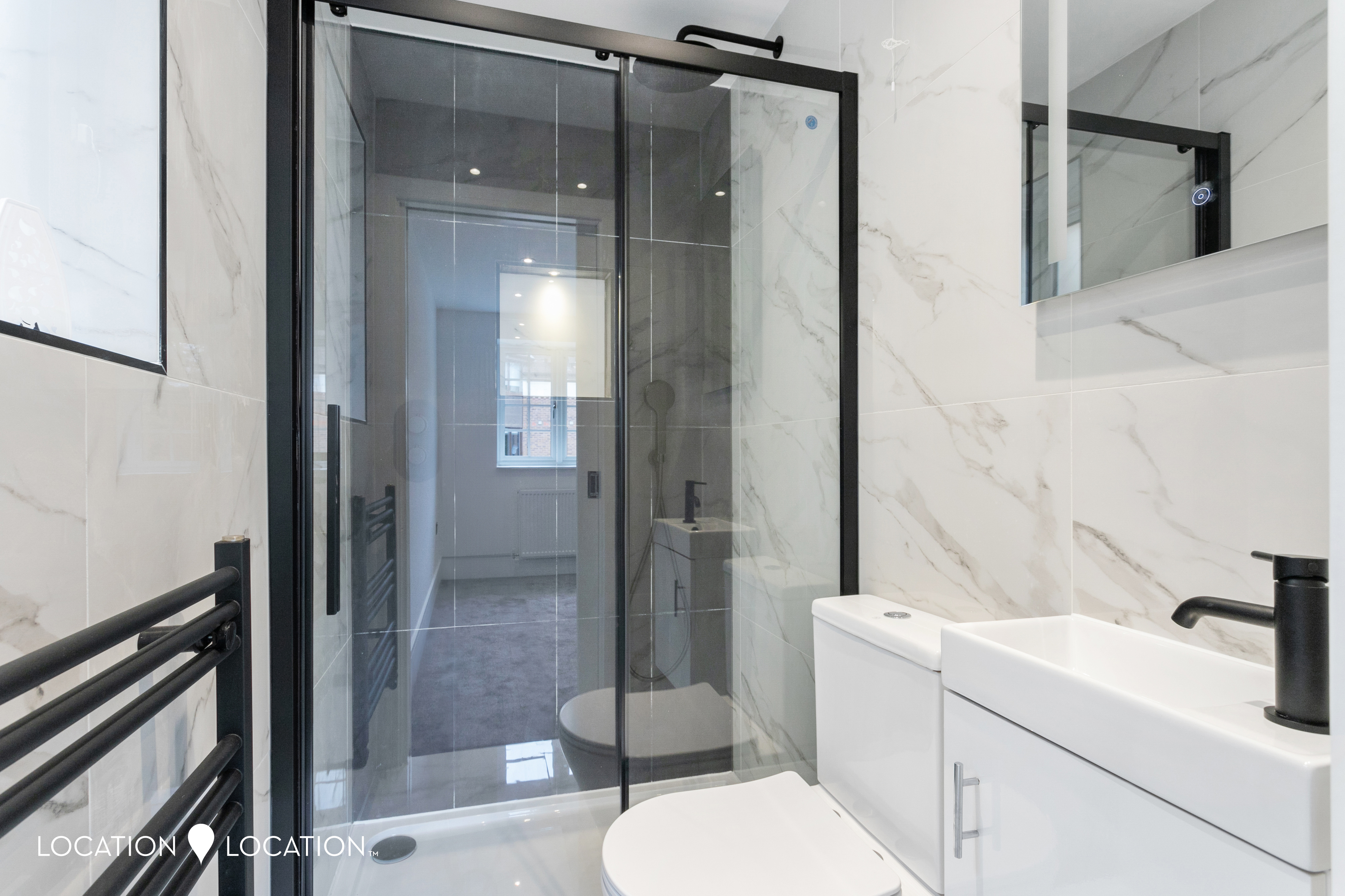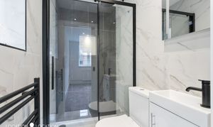 The main bedroom is a true sanctuary, featuring a modern en suite bathroom with striking matte black finishes. The family bathroom is equally impressive, boasting a very modern design with a crittal style shower door.There is a further well sized double bedroom with views of the rear garden and two further bedrooms- ideal as childrens rooms or home offices.