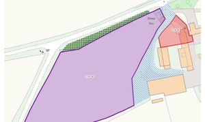 For clarity, the boundary plan distinguishes the following: the green cross-hatched area identifies a section of trees on the outline of the boundary which has been maintained by the current owner and the blue cross-hatched area marks the right of way.