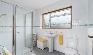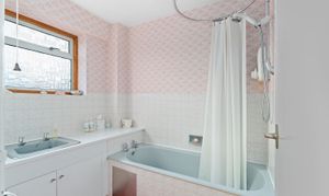 Heading upstairs you're blessed with four spacious double bedrooms - the primary of which has a very roomy ensuite shower room. And not forgetting the family bathroom - or the pink powder room as we like to call it! Completely of its time, again there’s so much potential here. In fact, we think a roll top tub would look fab!