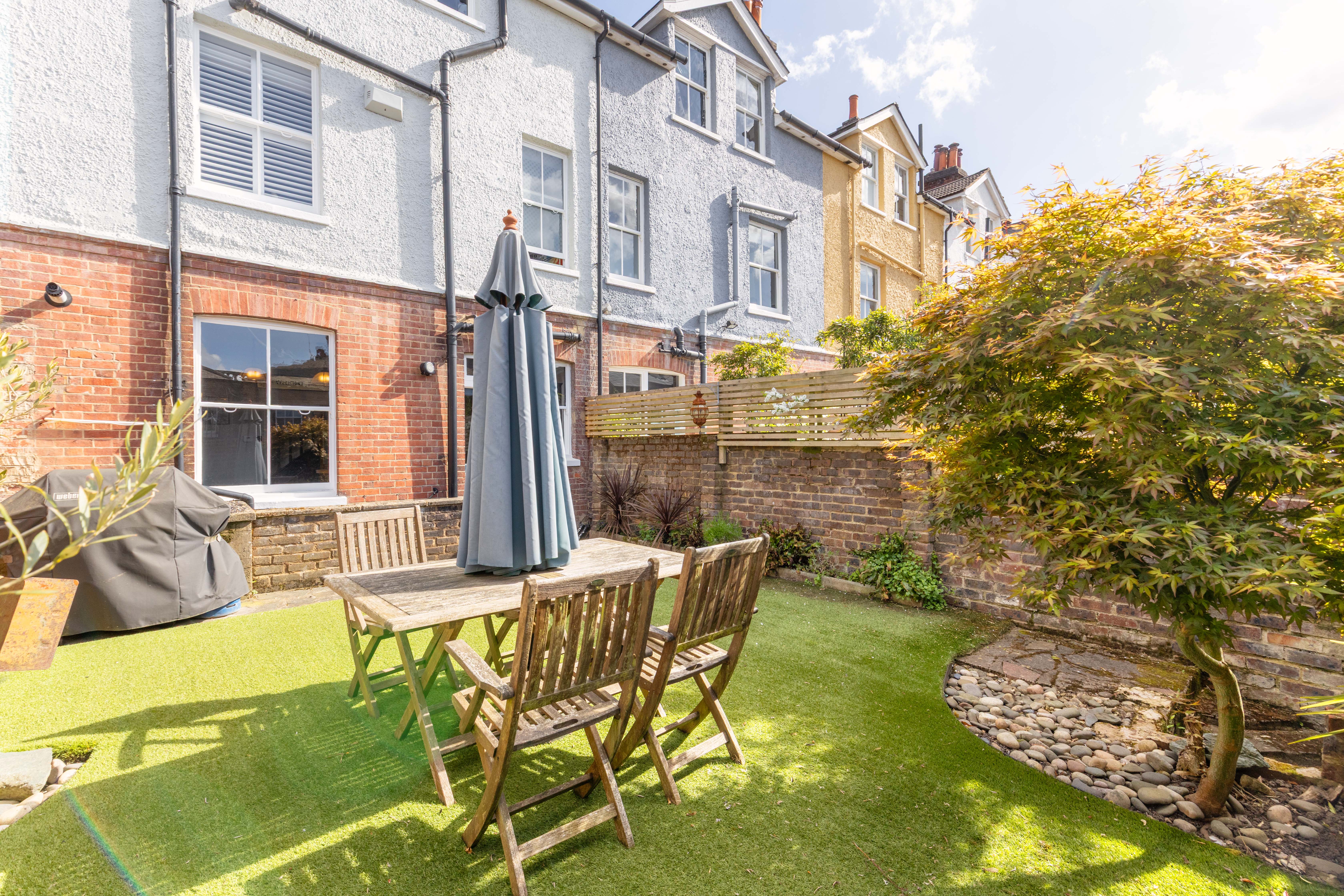 3 Christchurch Avenue is a beautifully appointed four/five bedroom Edwardian terraced residence, enviably positioned within the highly sought-after Village area of Tunbridge Wells. Tucked away on a private road just off the High Street, this exceptional home has been thoughtfully refurbished throughout, offering stylish and versatile accommodation arranged over three floors.The ground floor welcomes you with an elegant living room/snug, complete with original floorboards and a Scandinavian-style log burner, creating a warm yet contemporary ambience. The hallway leads through to a stunning kitchen, exquisitely designed with bespoke shaker-style cabinetry in a striking dark finish. A statement island provides a sociable focal point, perfect for informal dining and entertaining, with direct access to the charming rear garden. A convenient downstairs WC completes this level. An attractive staircase rises to the first floor, where a beautifully proportioned front reception room with feature fireplace offers flexibility as either a formal sitting room or principal bedroom, depending on lifestyle needs. There is also a generous double bedroom complemented by a well-appointed family shower room. The top floor hosts a spacious principal bedroom with a stylish en suite shower room, alongside two further bedrooms, one of which lends itself perfectly to a study or home office. Externally, the garden has been designed for ease of maintenance with astro turf, creating an inviting space for outdoor relaxation and entertaining. There is also a small internal shed ideal for storing bikes or gardening tools. The property further benefits from one allocated parking space, with a permit for the private road. Available from 6th June.