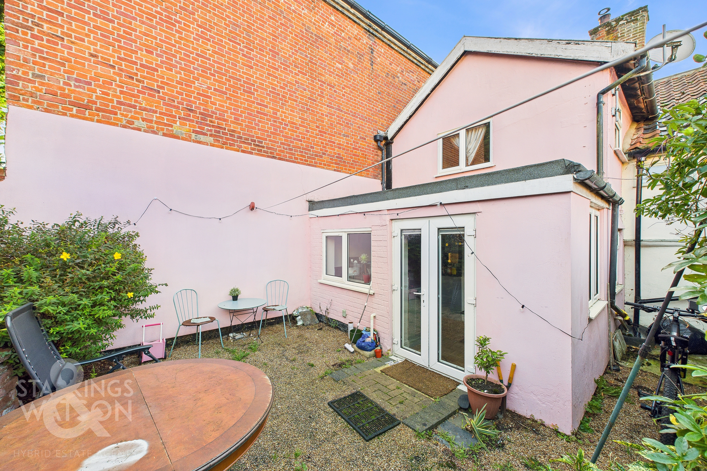 THE GREAT OUTDOORS The rear offers an attractive courtyard style garden which is mainly laid to shingle with space for a table and chairs. There is a timber shed for storage as well as brick walls enclosing providing plenty of privacy. The bisected access also allows for front to rear access when needed.
